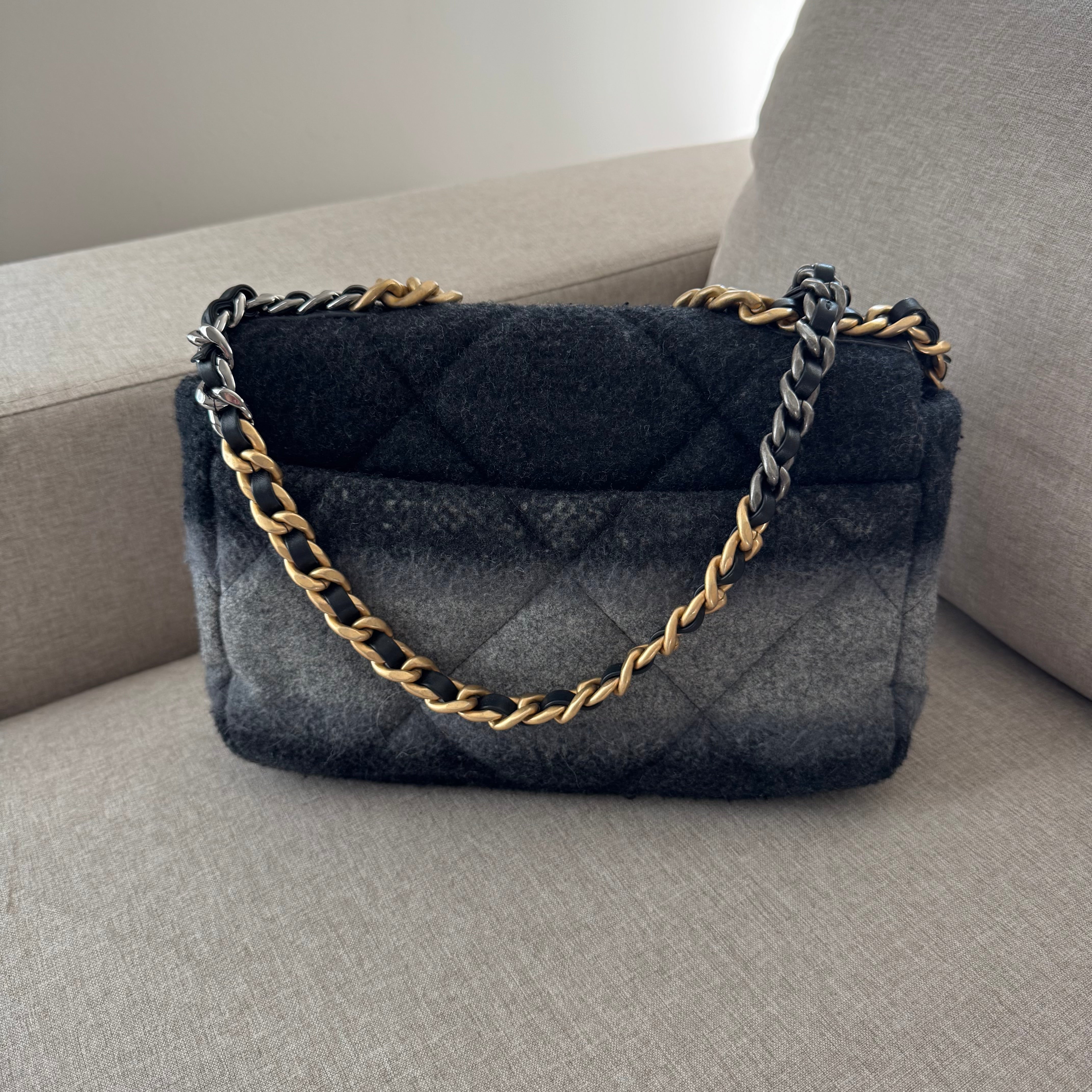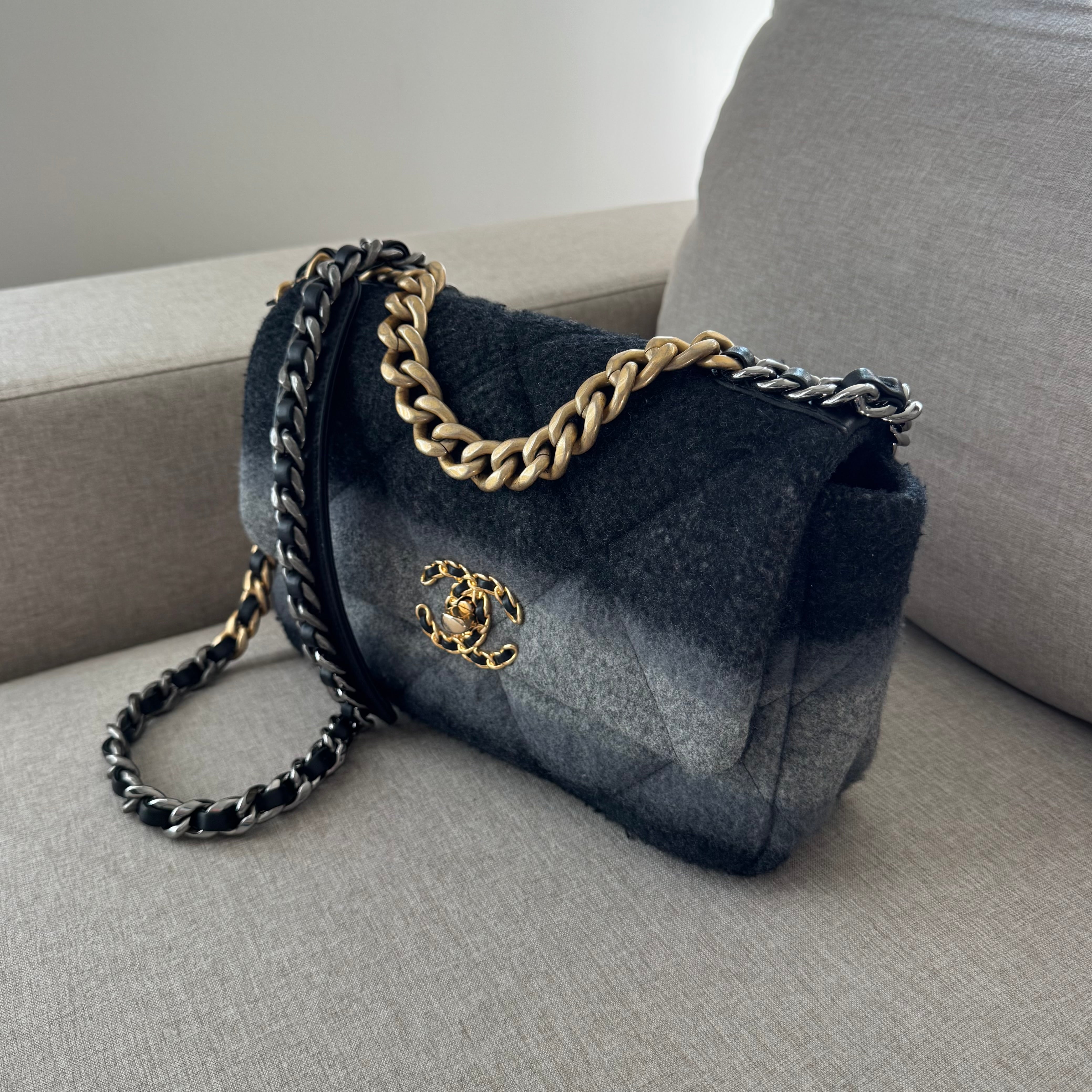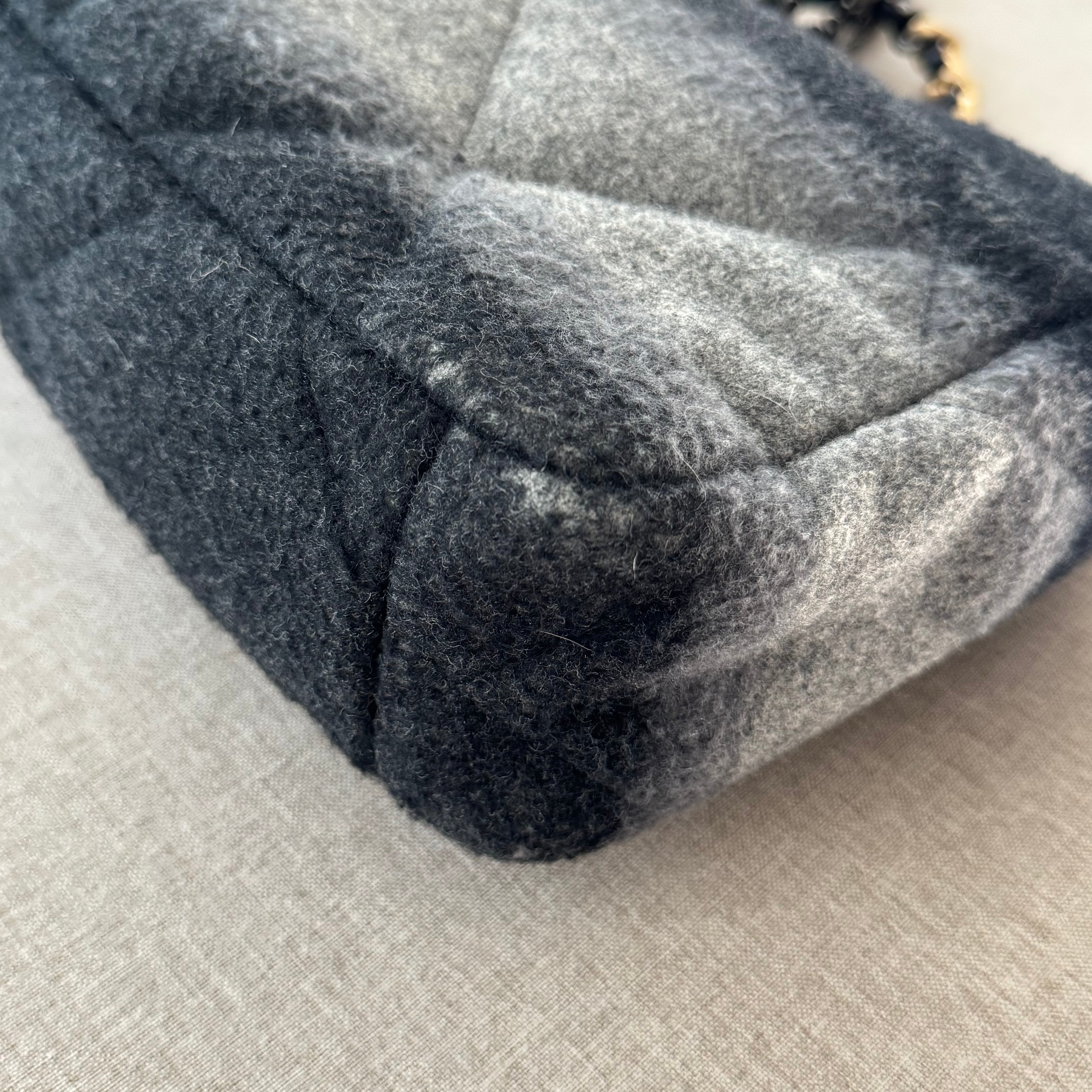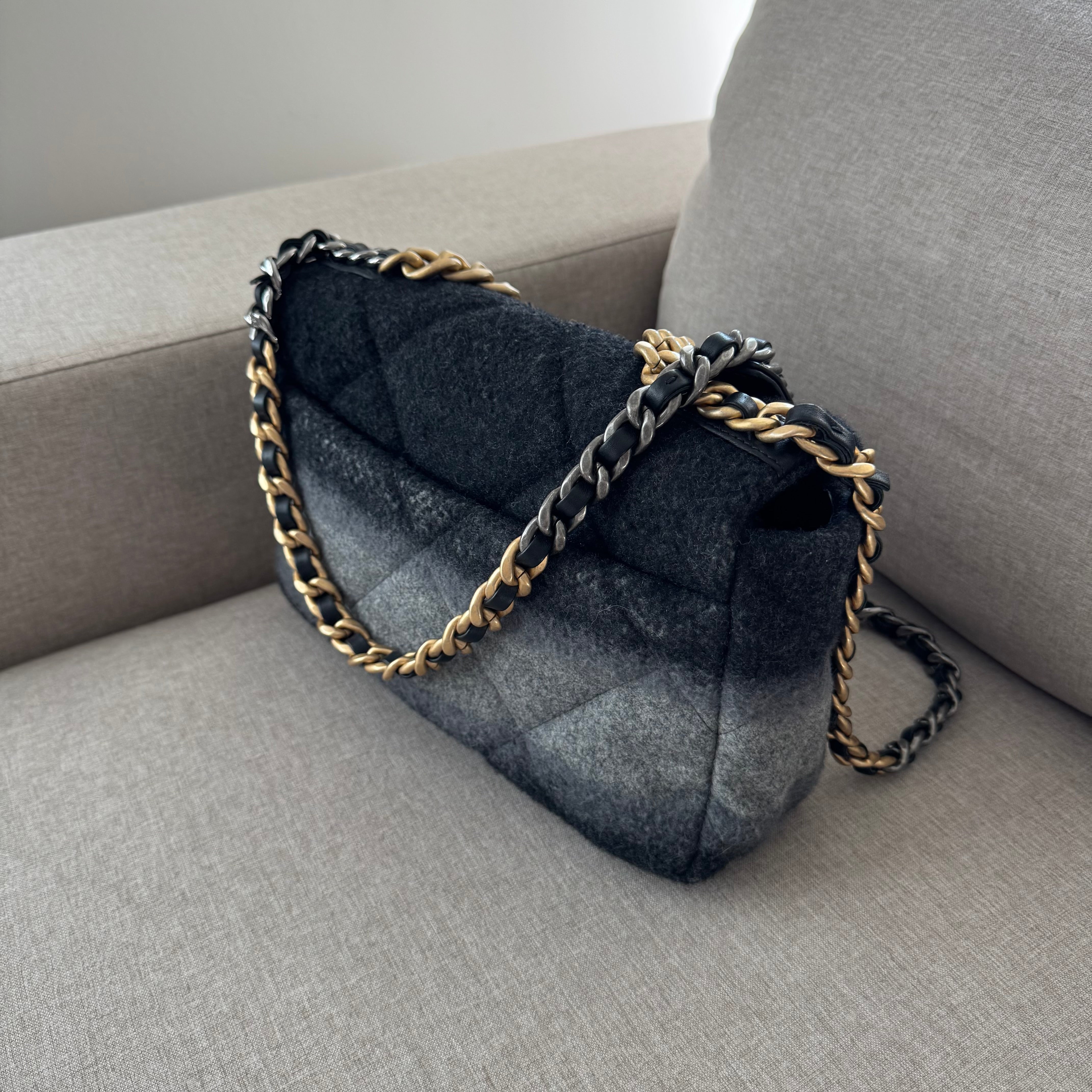 Chanel 19 Wool Quilted Medium Black Gray Tweed Chain Flap Bag