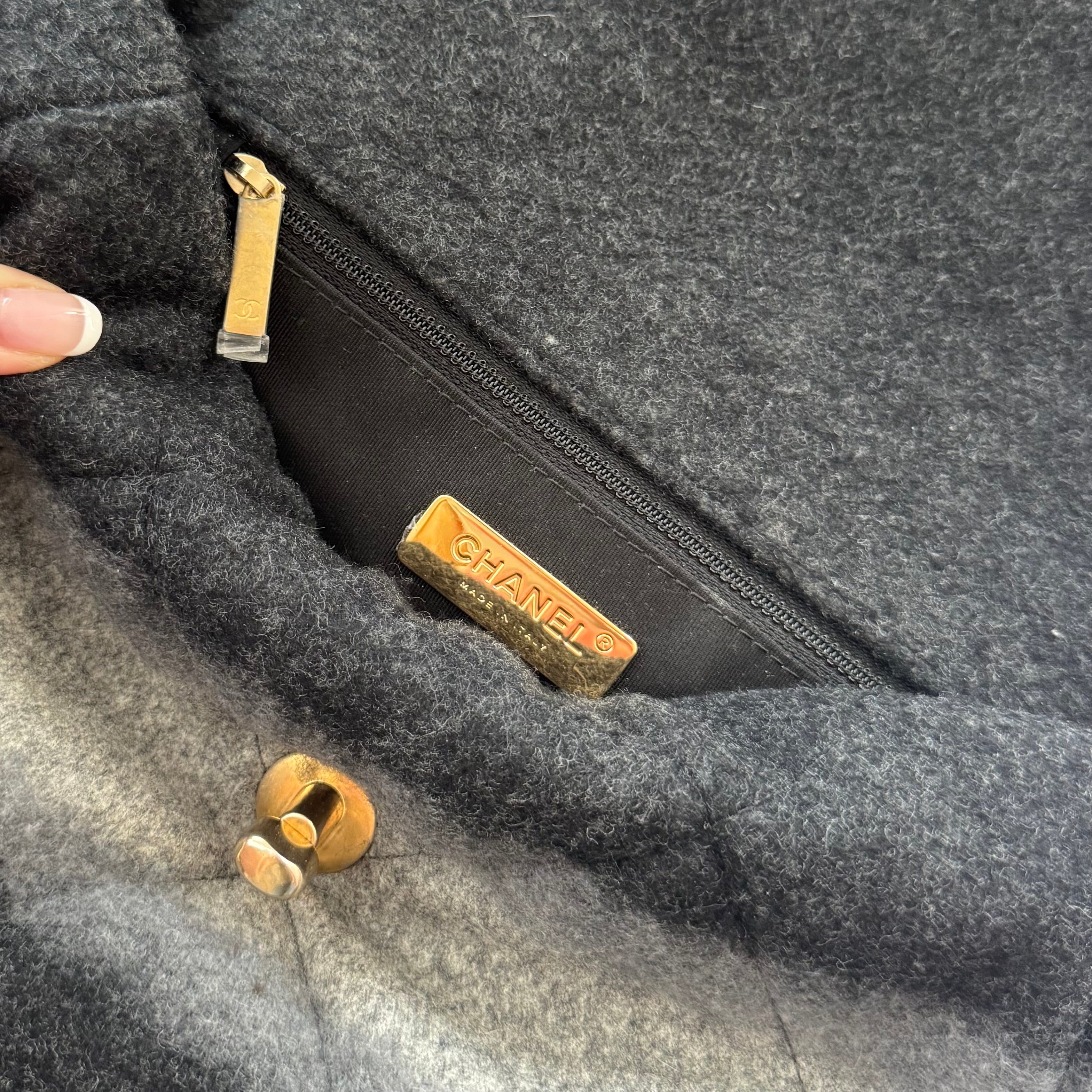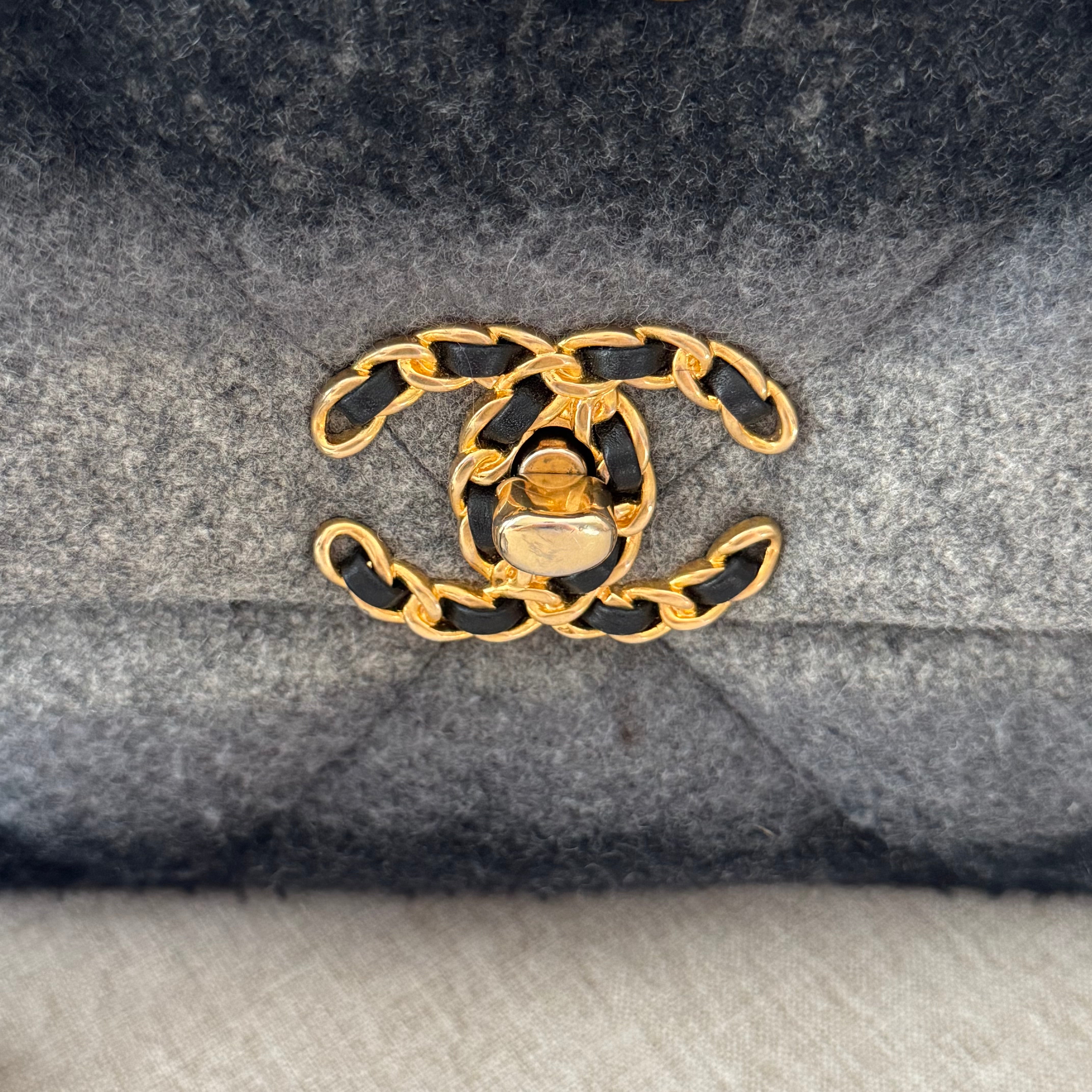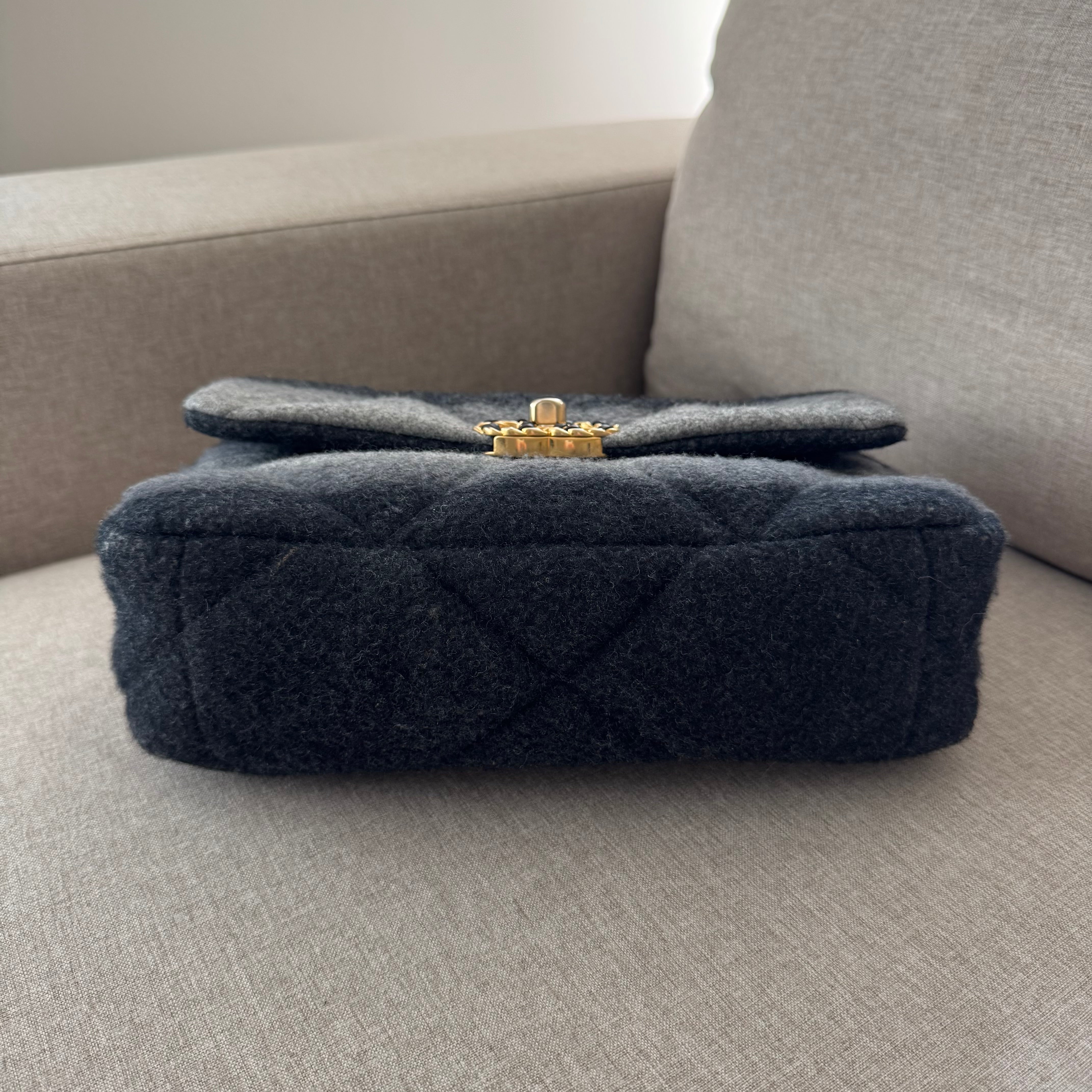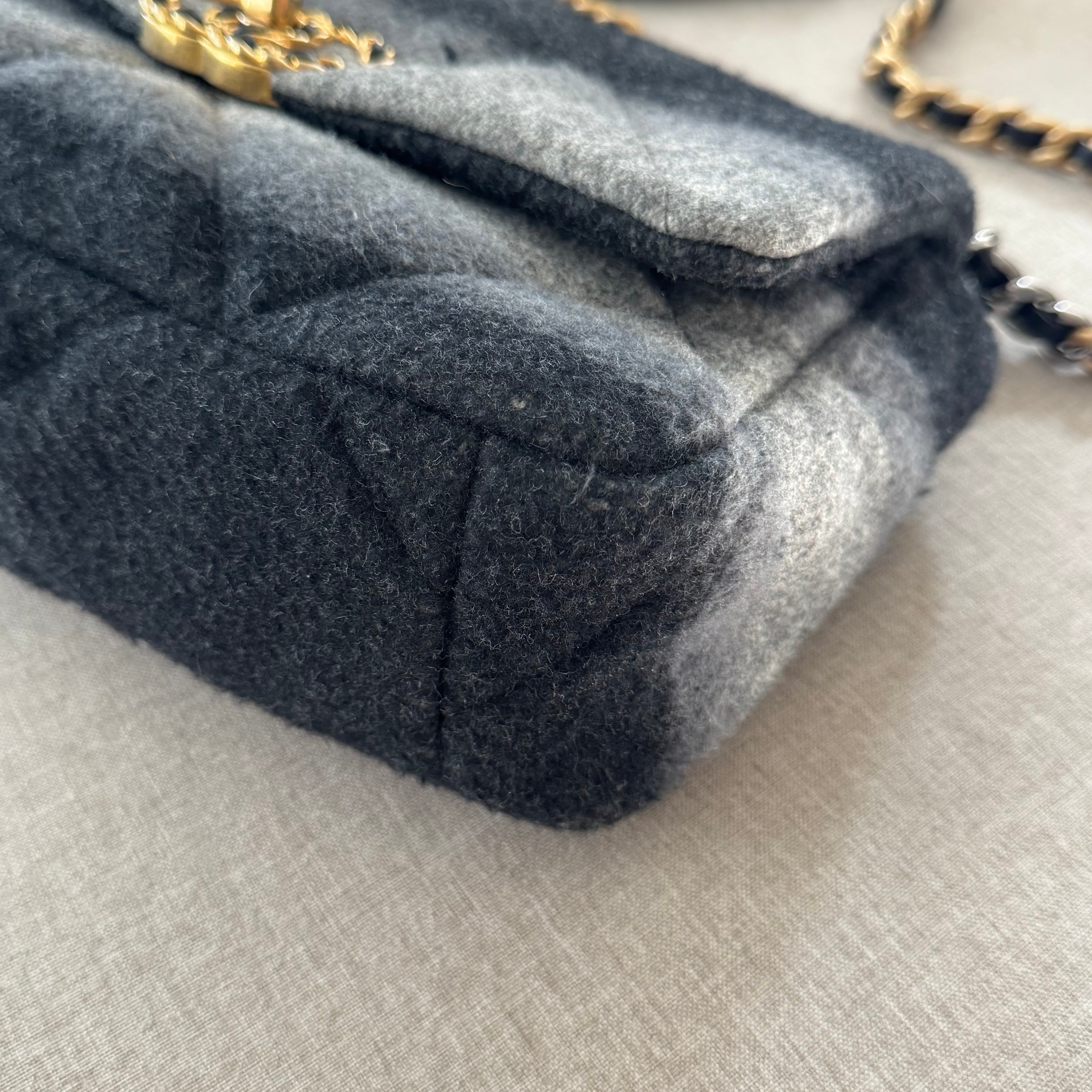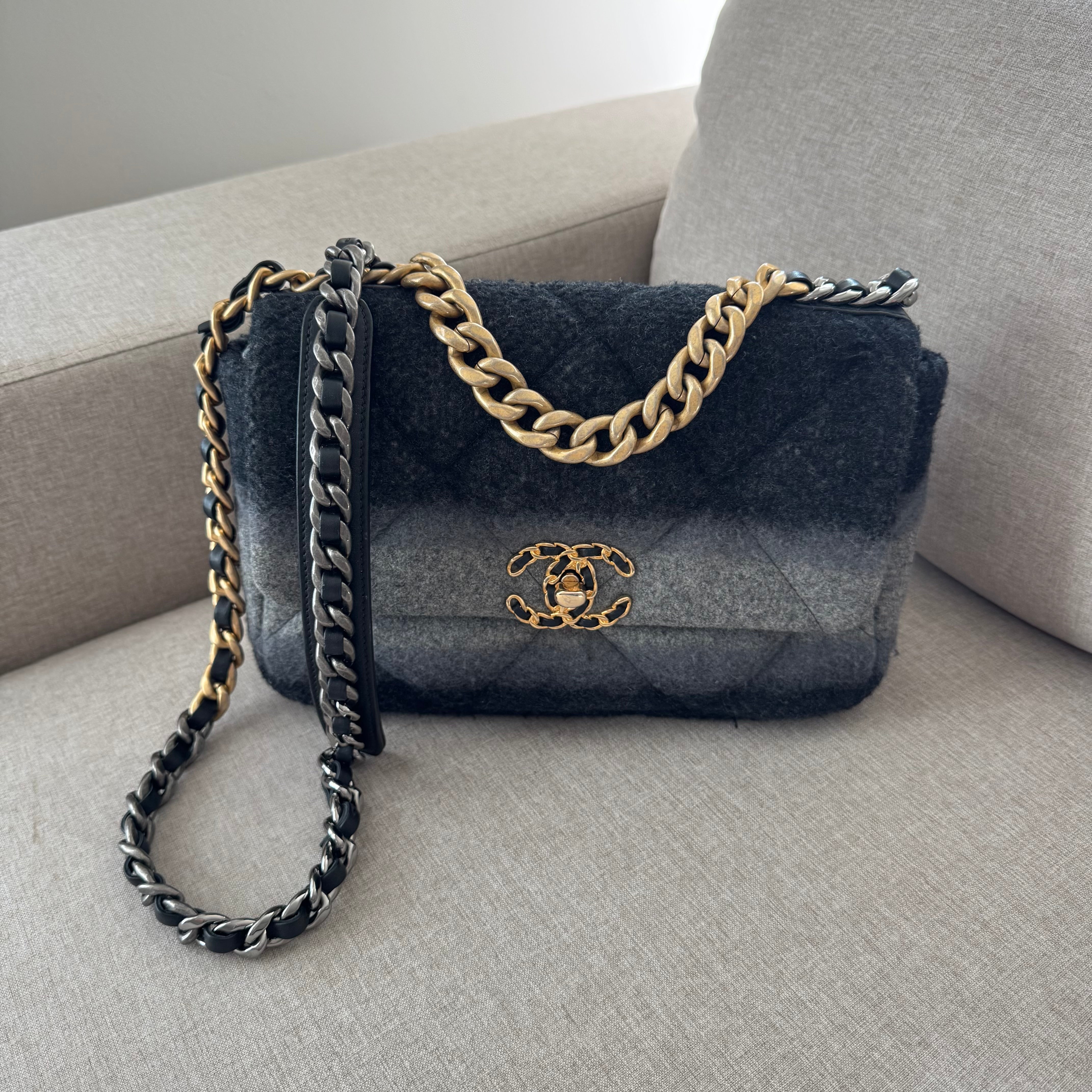Chanel 19 Wool Quilted Medium Black Gray Tweed Chain Flap Bag