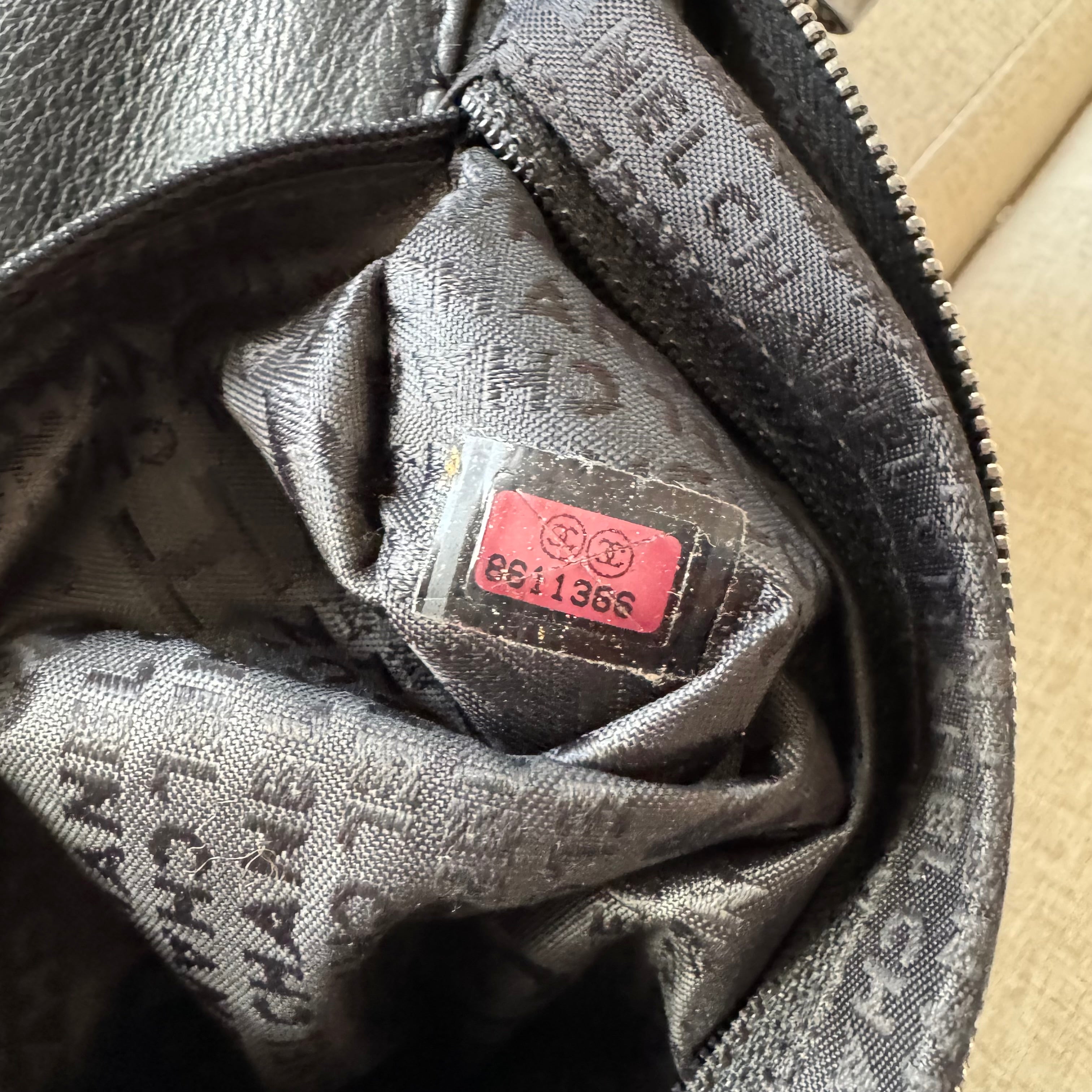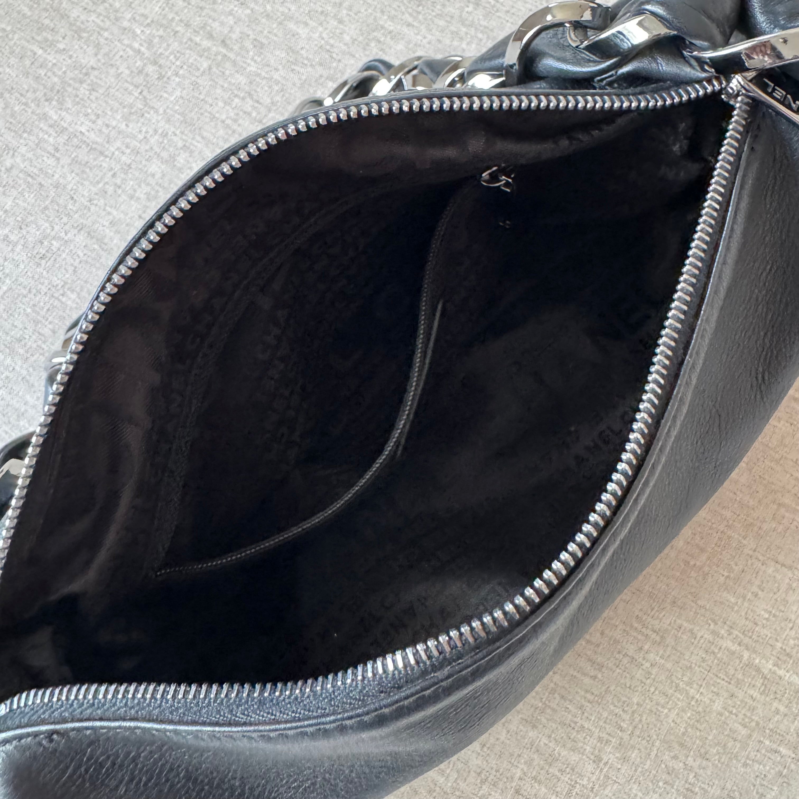 - Black leather & silver tone chainlink handle