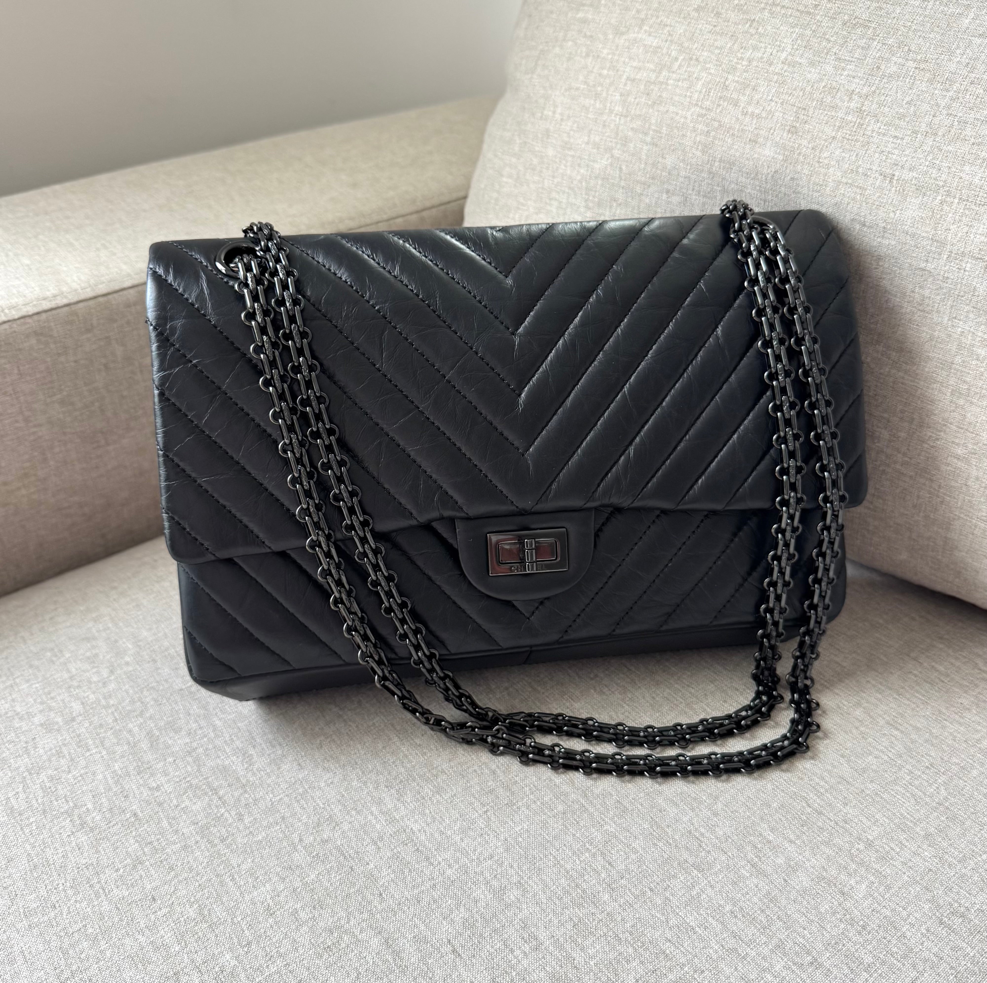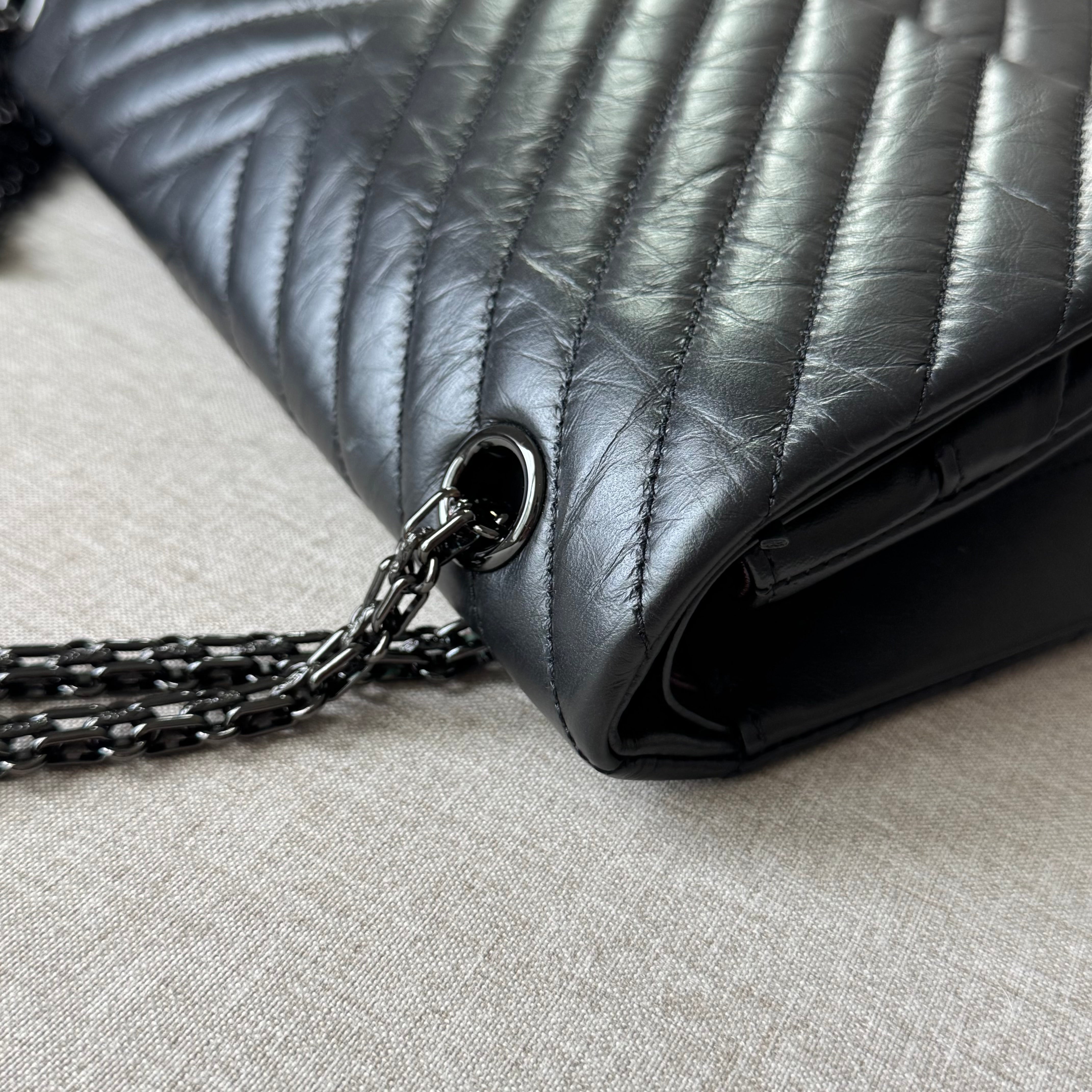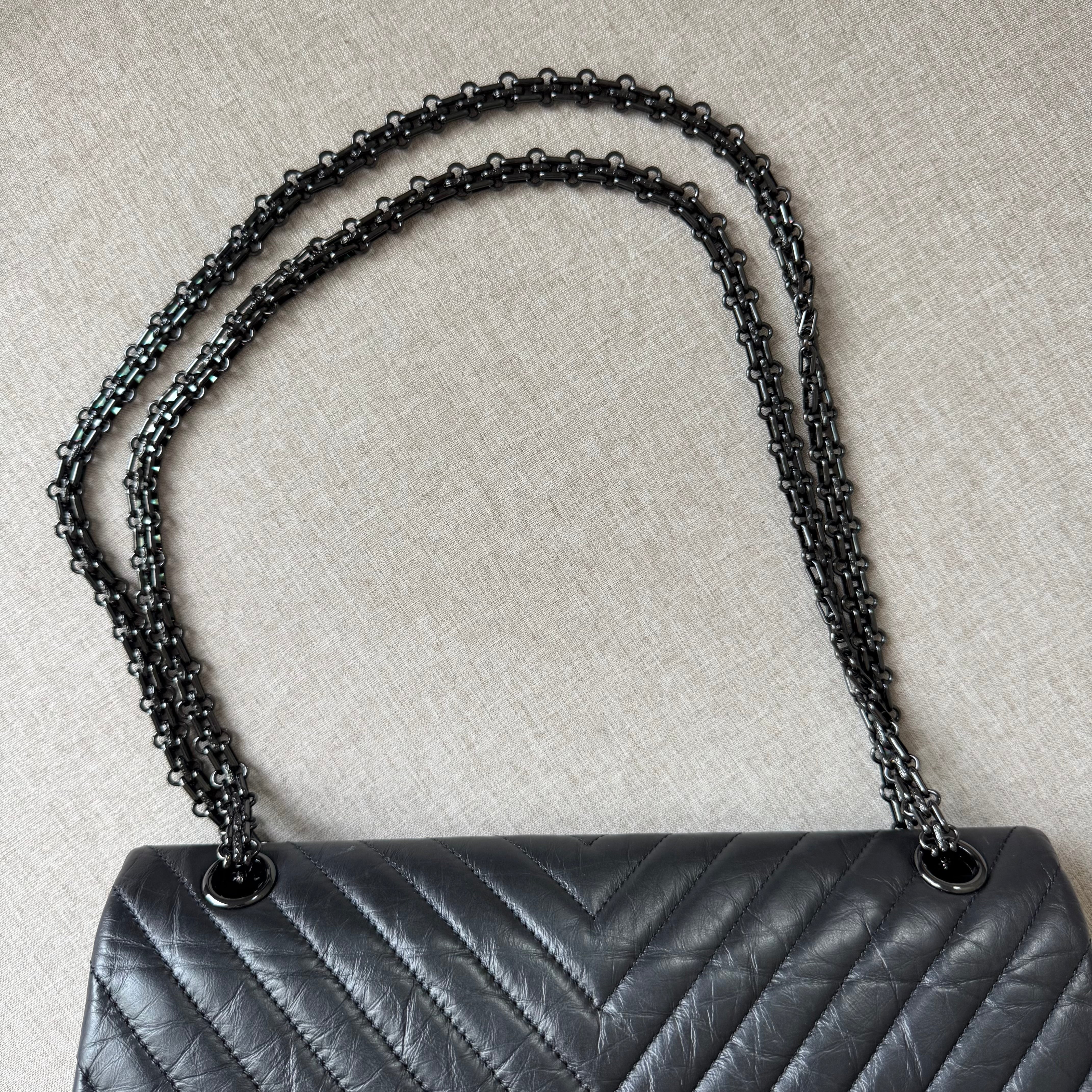 CHANEL 2.55 So Black Reissue Aged Calfskin Quilted Chevron Chainlink 226 Handbag