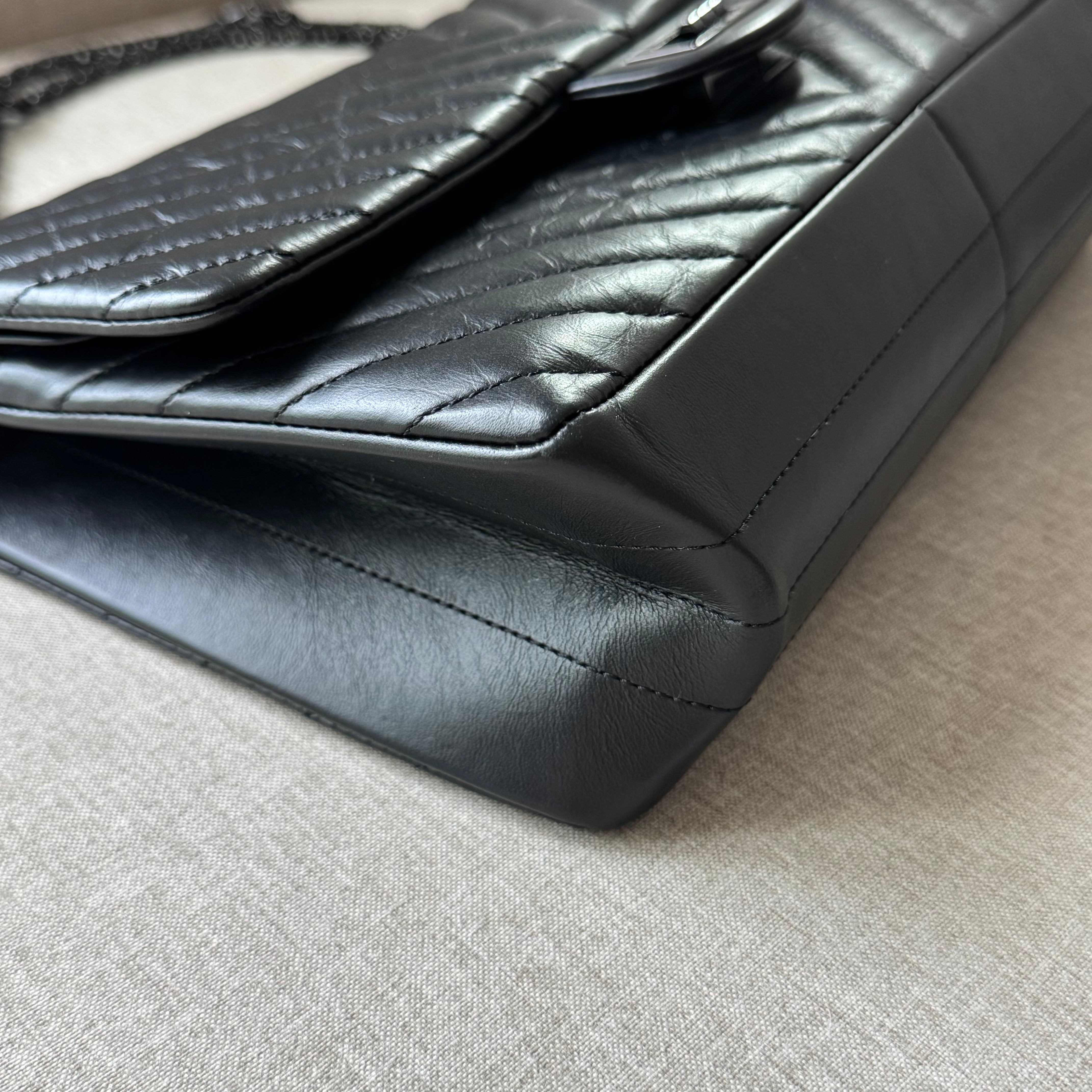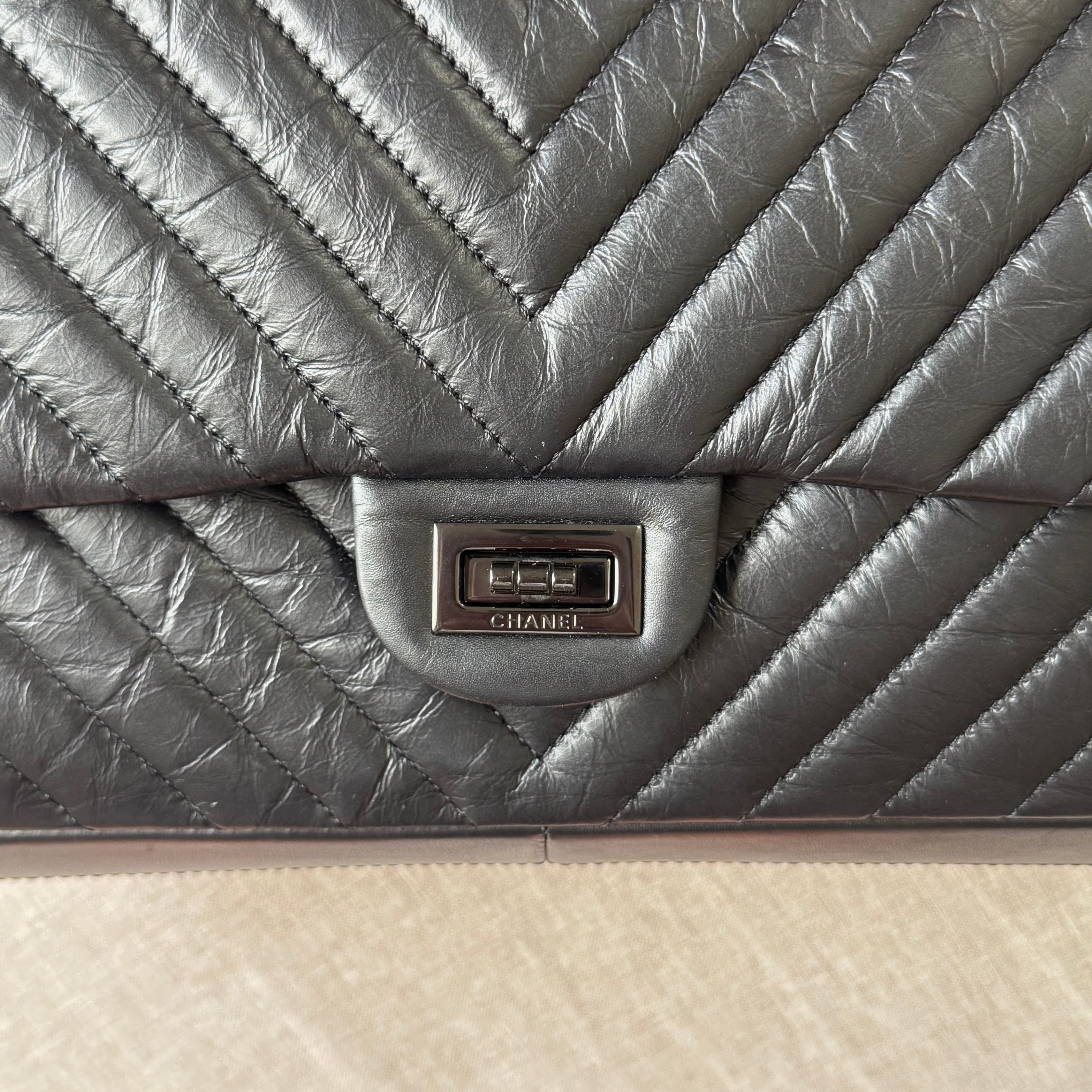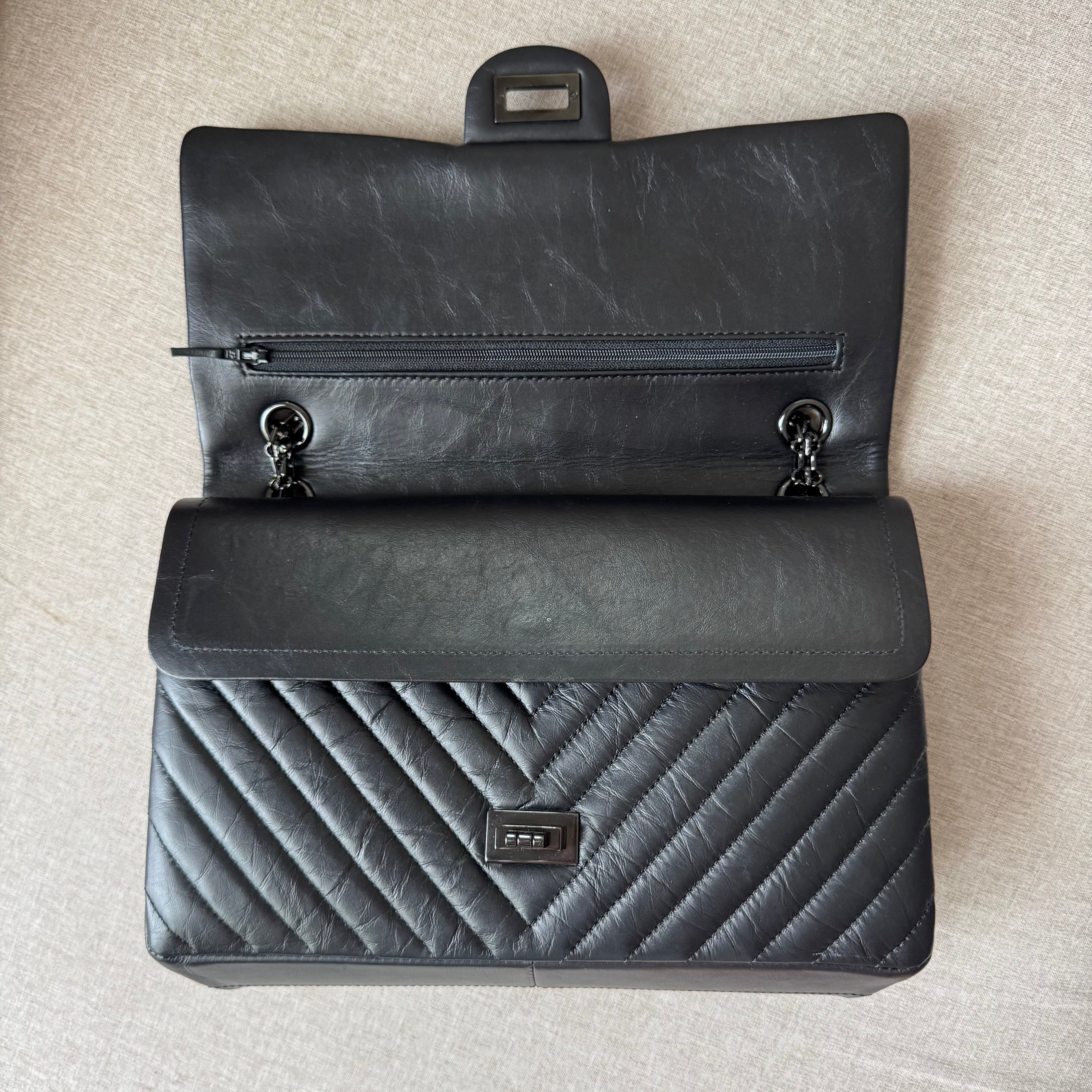 CHANEL 2.55 So Black Reissue Aged Calfskin Quilted Chevron Chainlink 226 Handbag