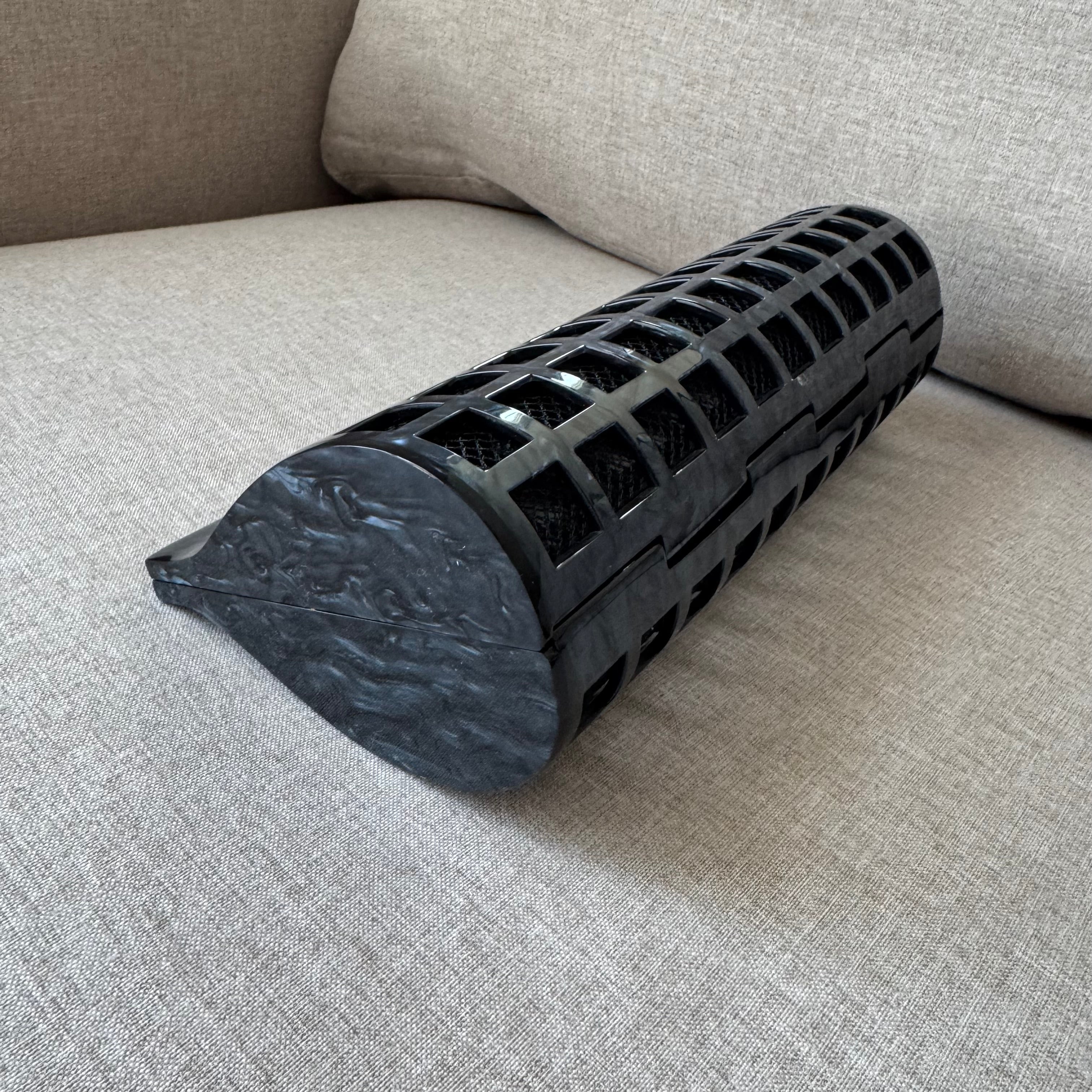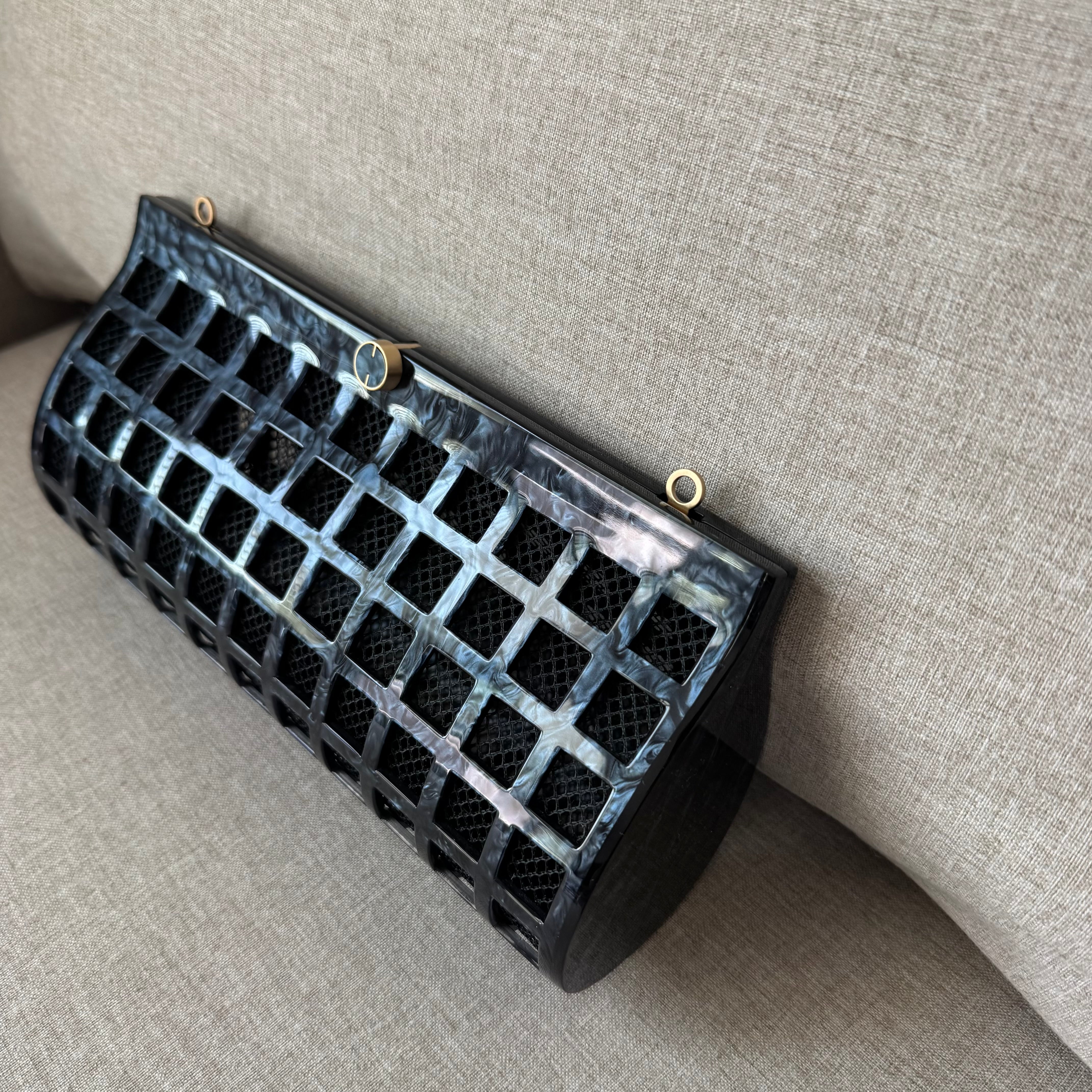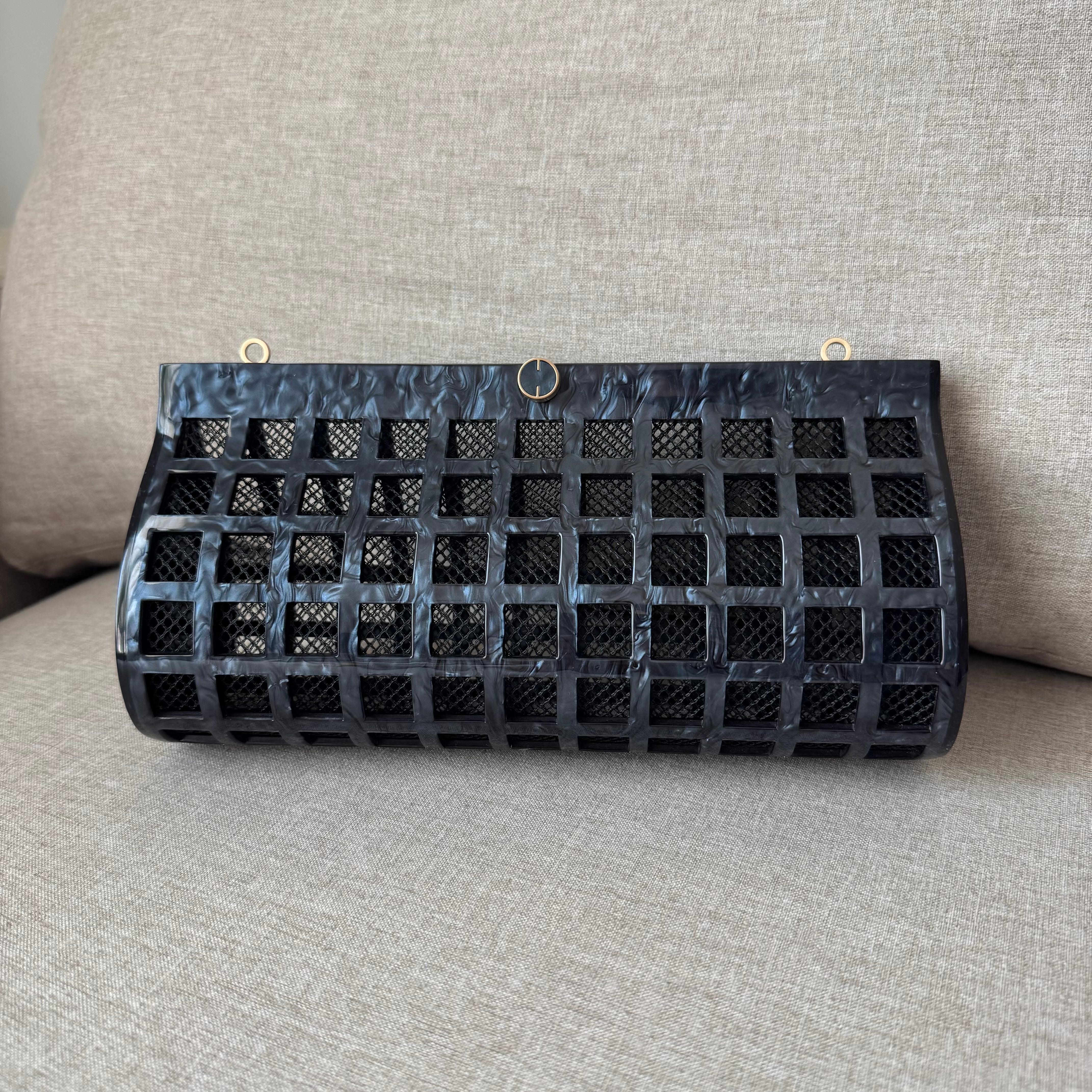 Cult Gaia Alana Black Swirl Glossy Acrylic Windowpane Screened Shoulder Bag