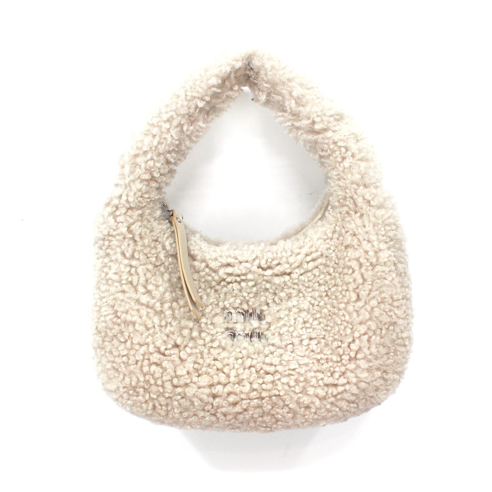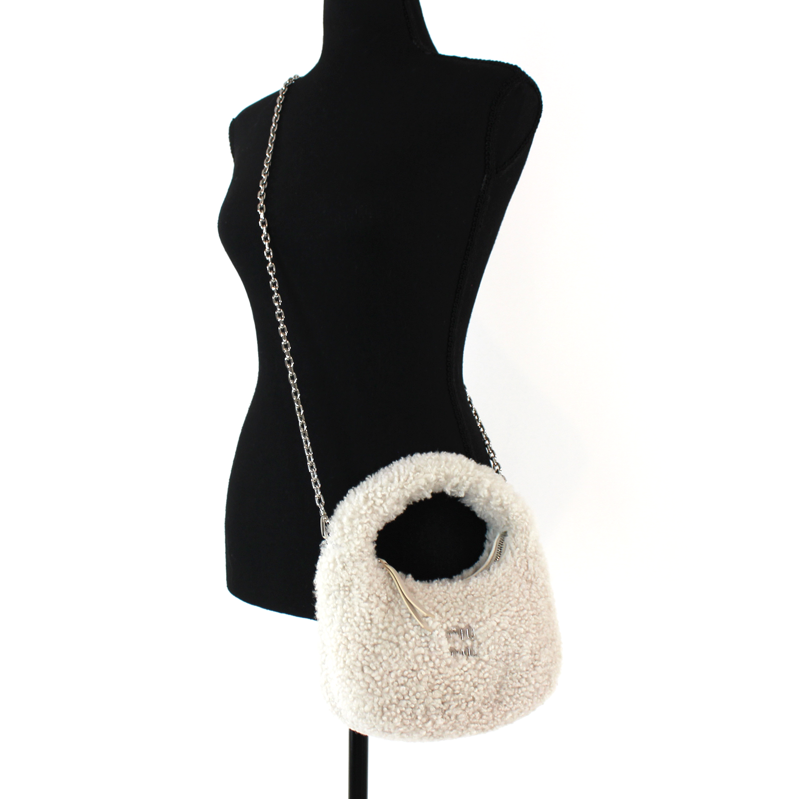 MIU MIU Wander Shearling 2 Way Ivory Handbag Silver Chainlink Shoulder Bag
