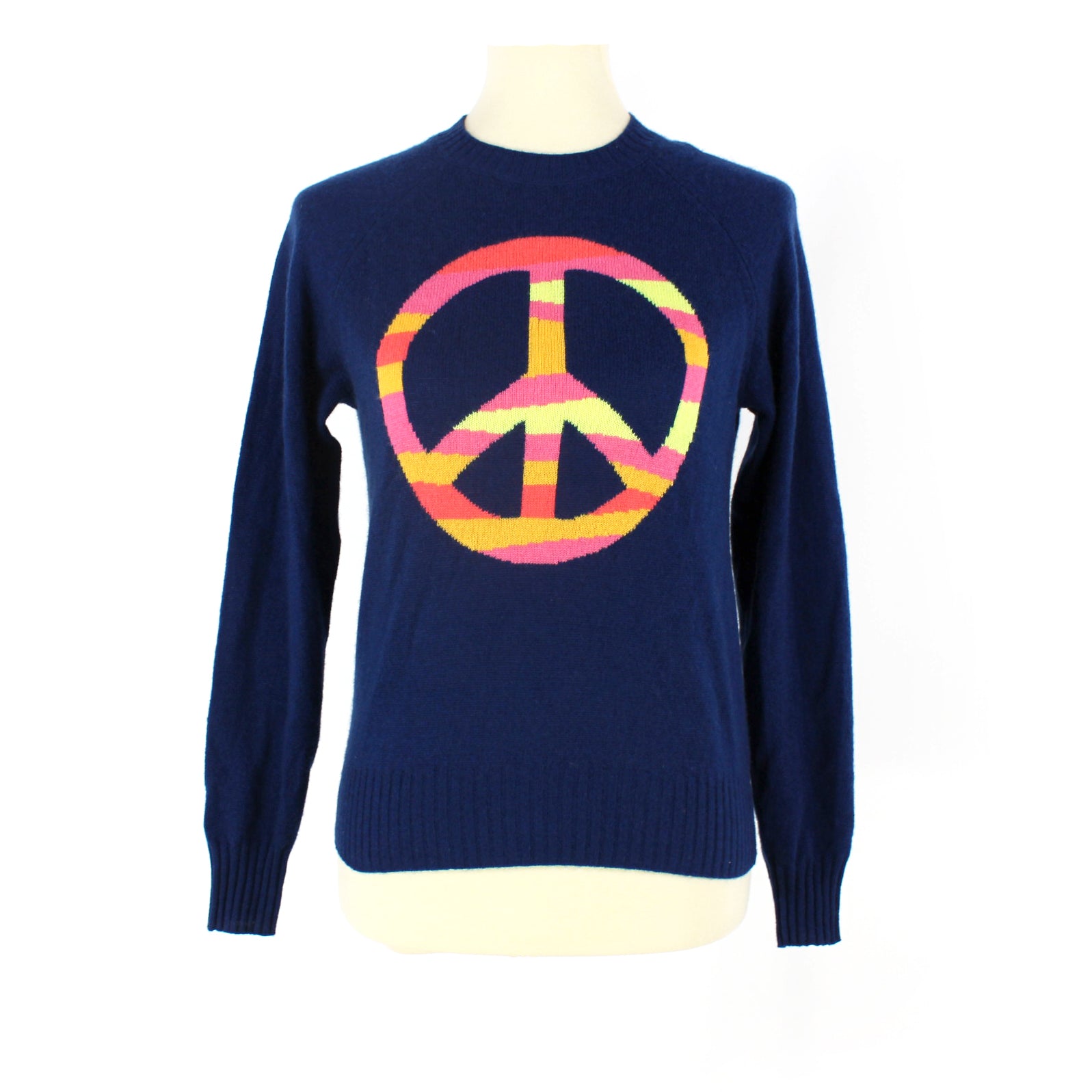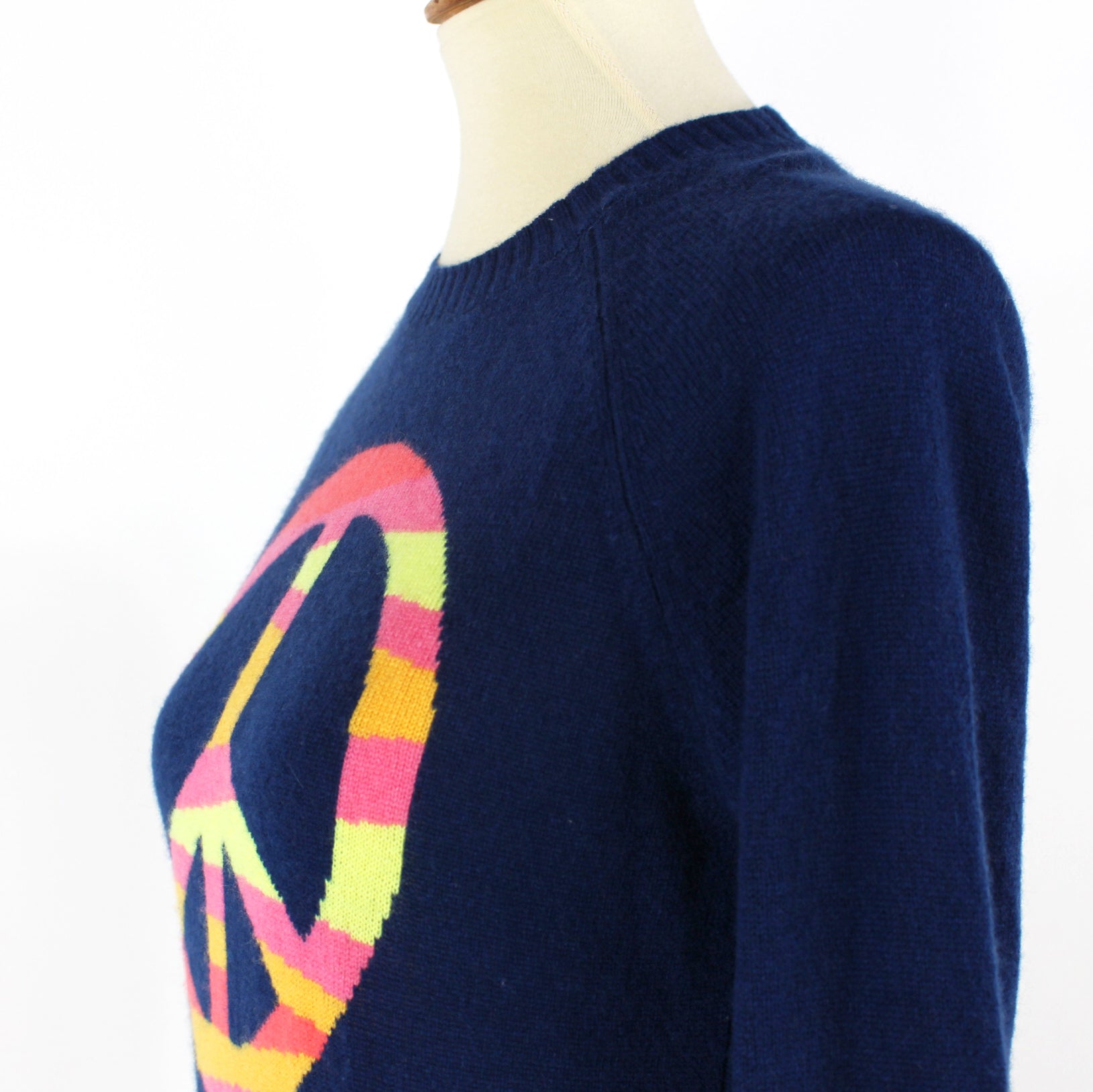 27 Miles Malibu Panda Peace Sign Navy Blue Cashmere Sweater