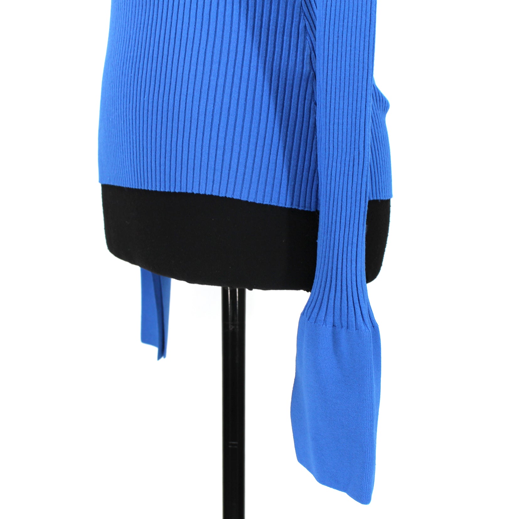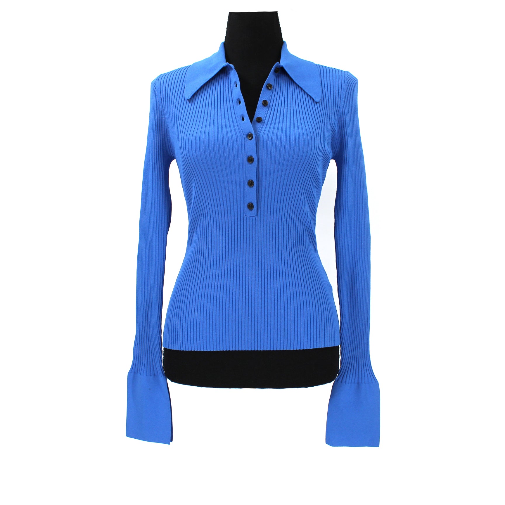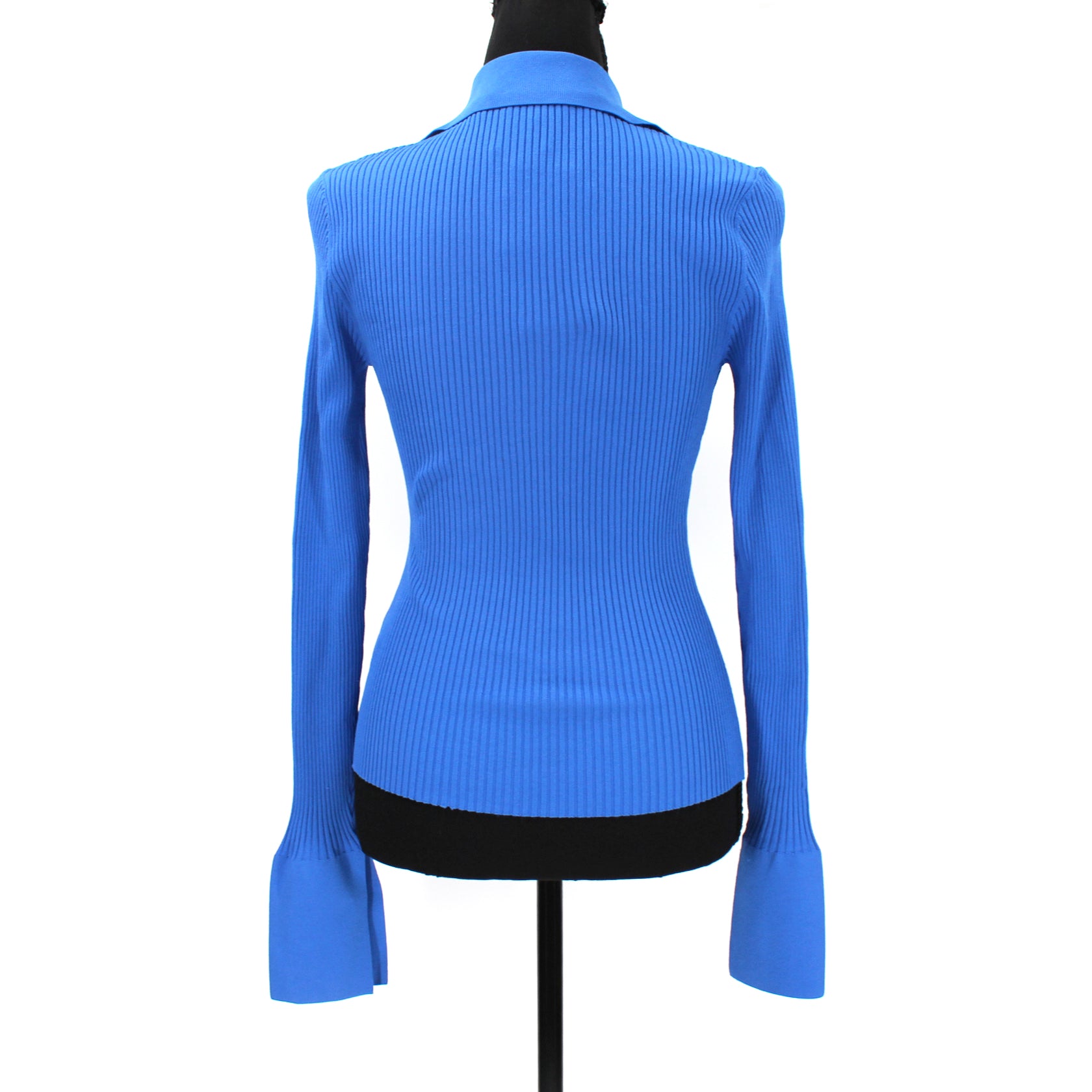 A.L.C. Eleanor Blue Ribbed Long Sleeve Split Cuff Polo Sweater