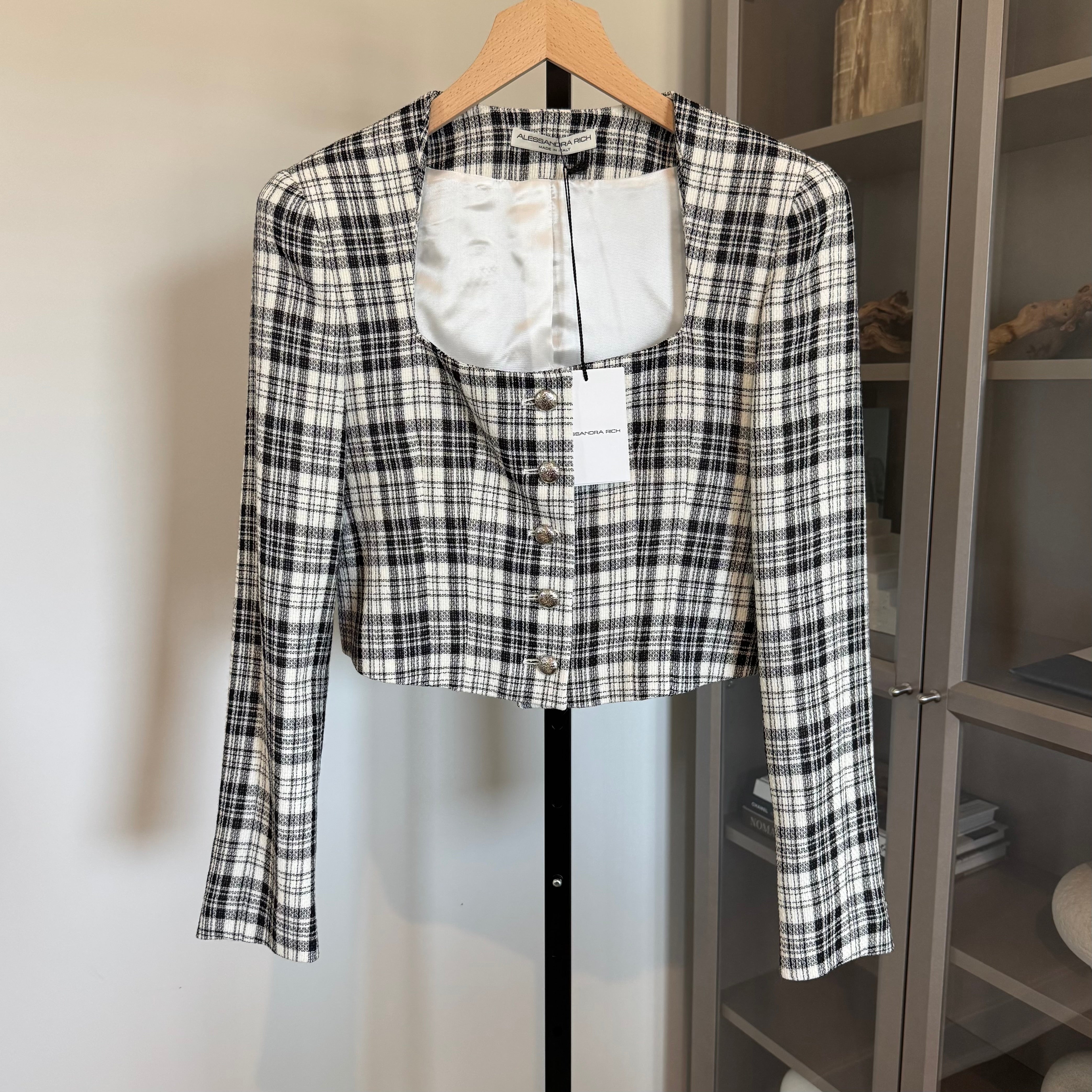 Alessandra Rich Prince of Wales Checked Plaid Light Wool Crop Jacket