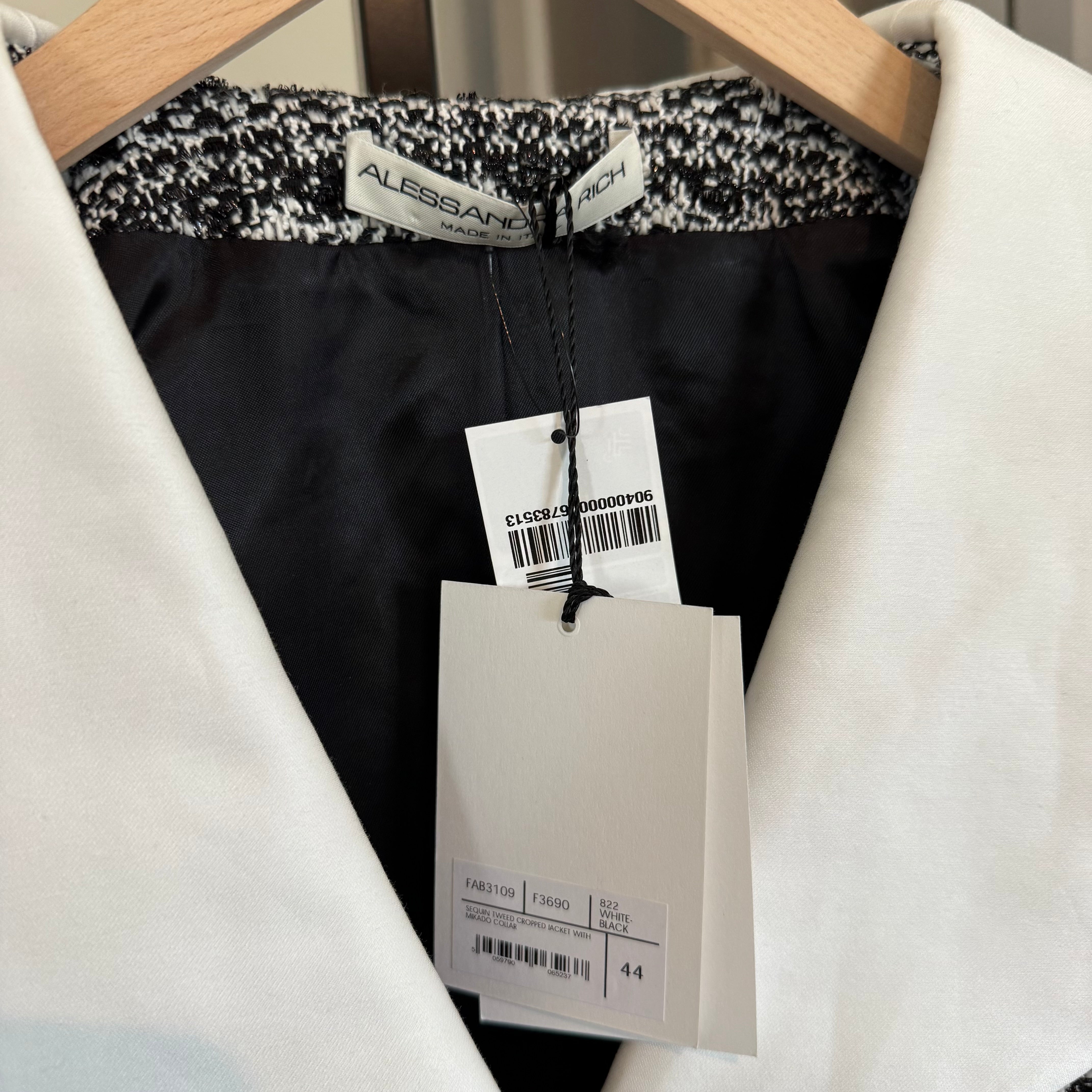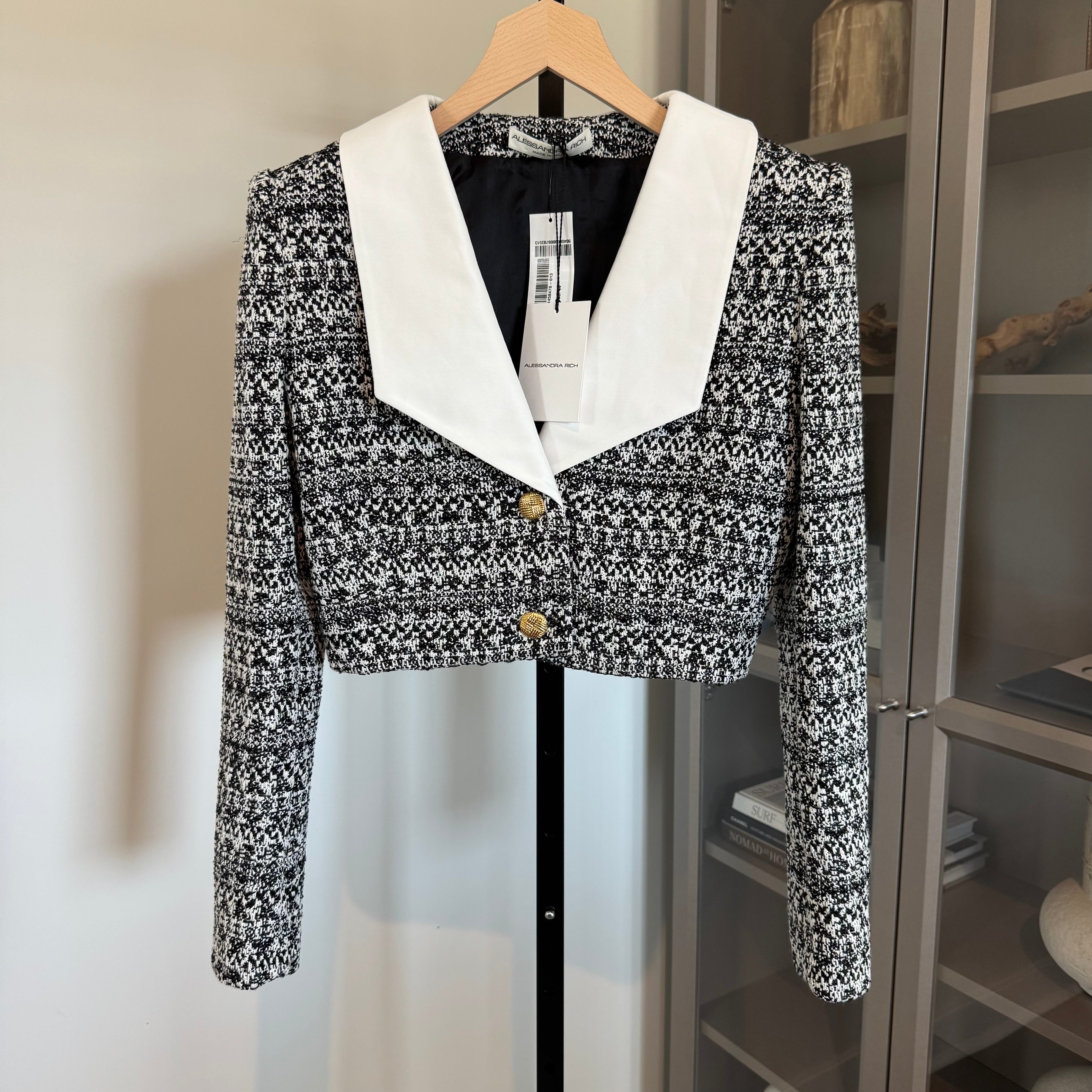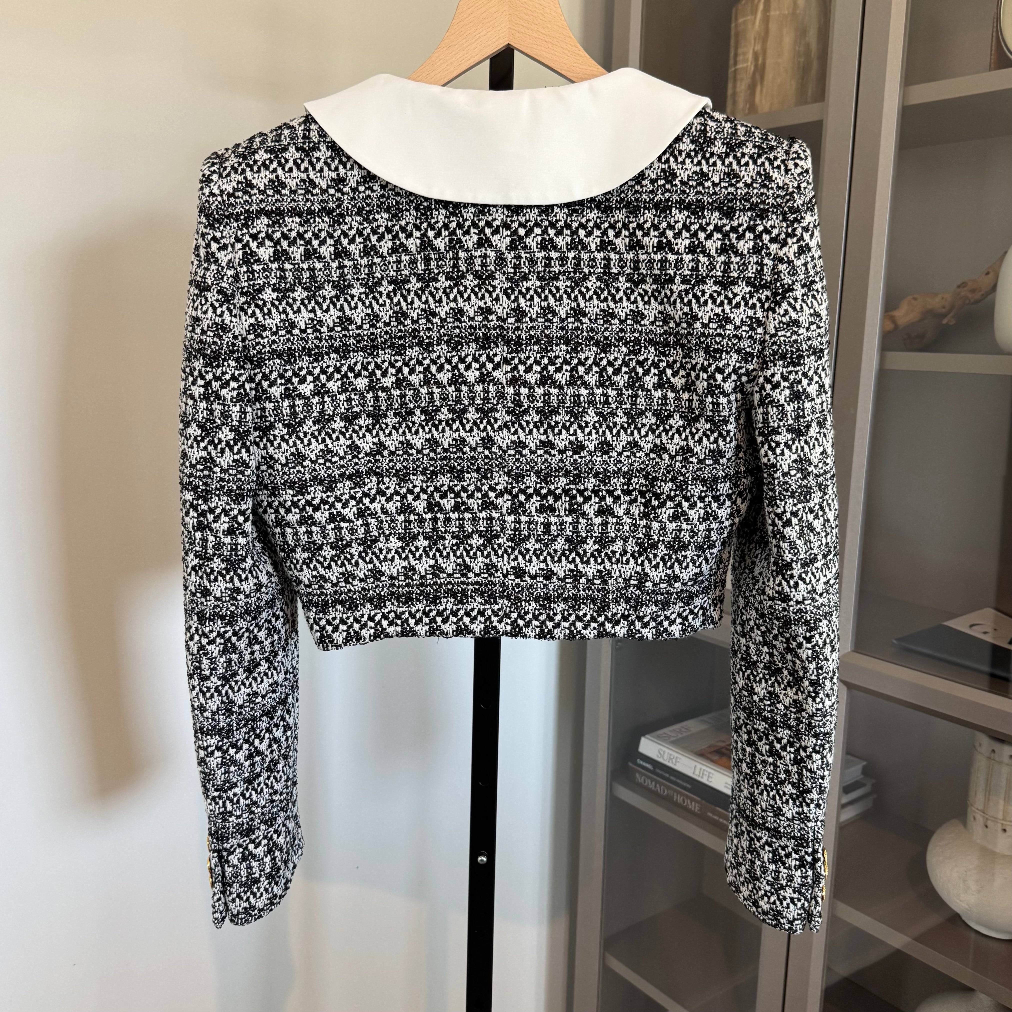Alessandra Rich Sequin Tweed Mikado Collar Black White Cropped Jacket