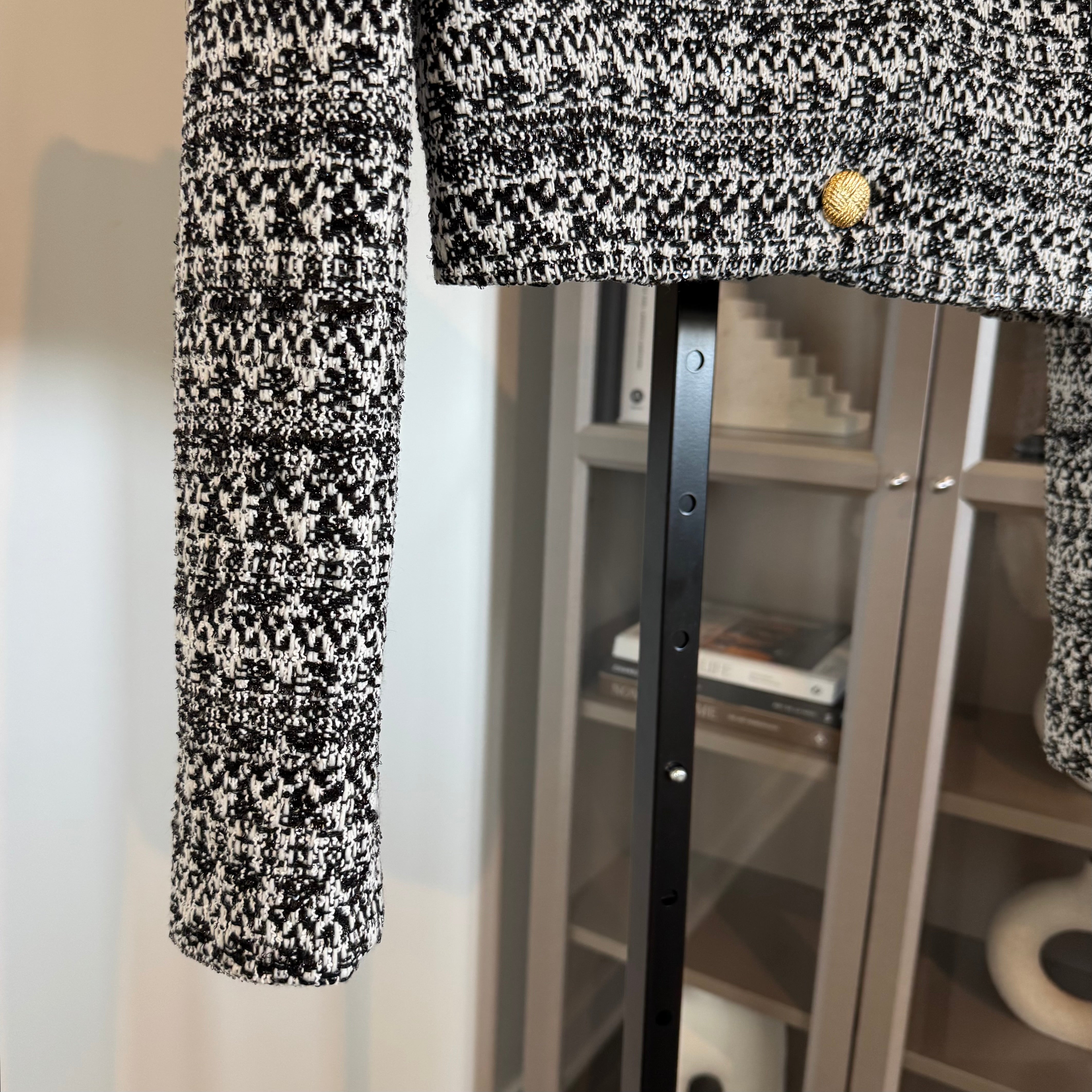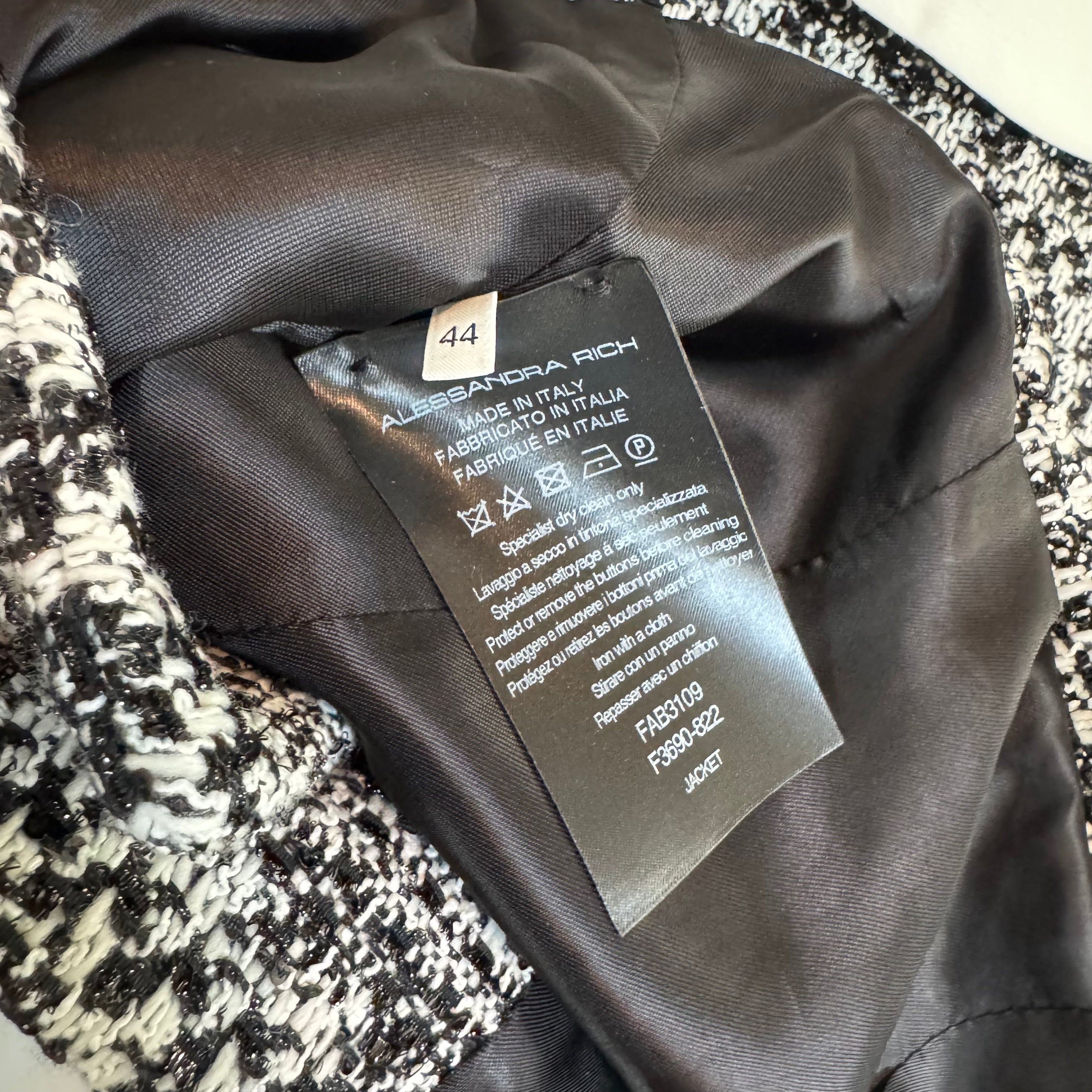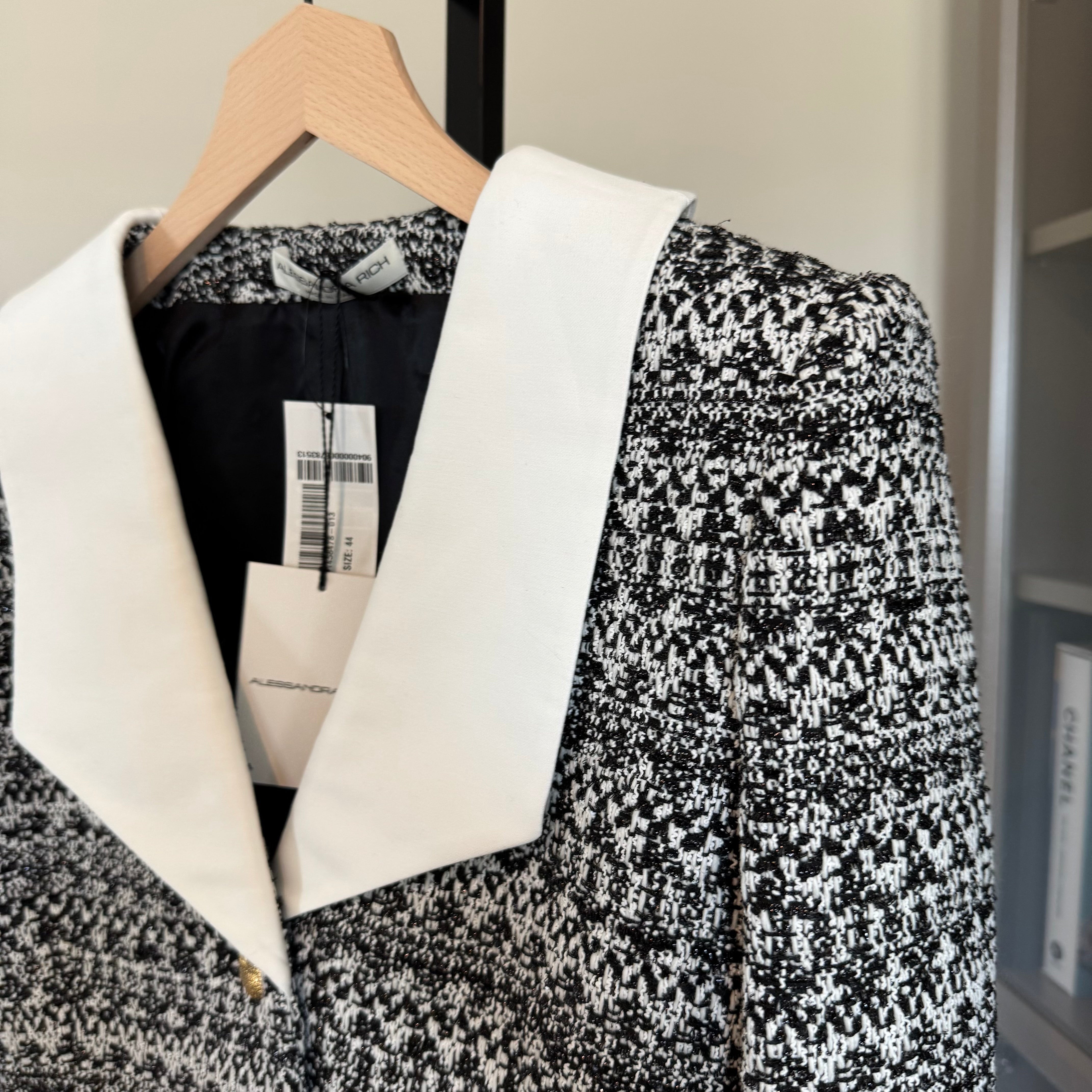 Alessandra Rich Sequin Tweed Mikado Collar Black White Cropped Jacket