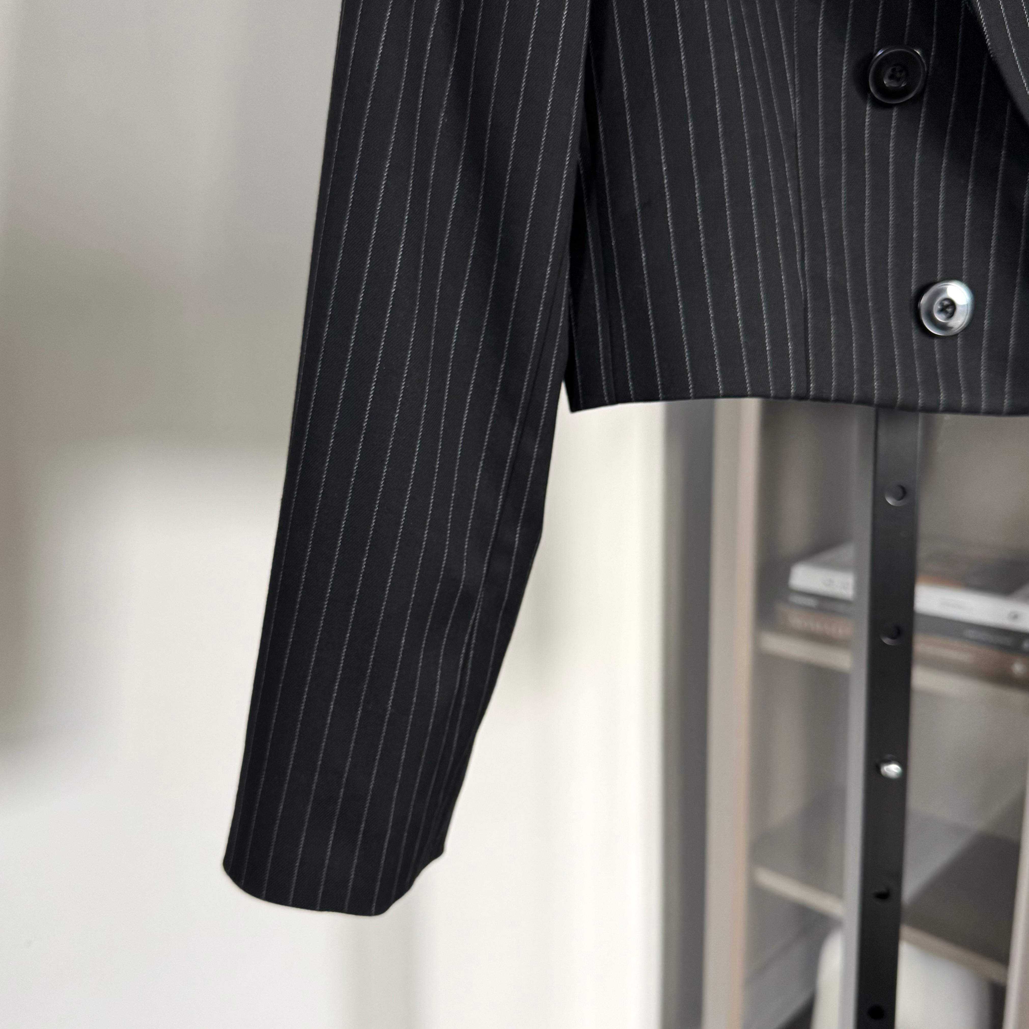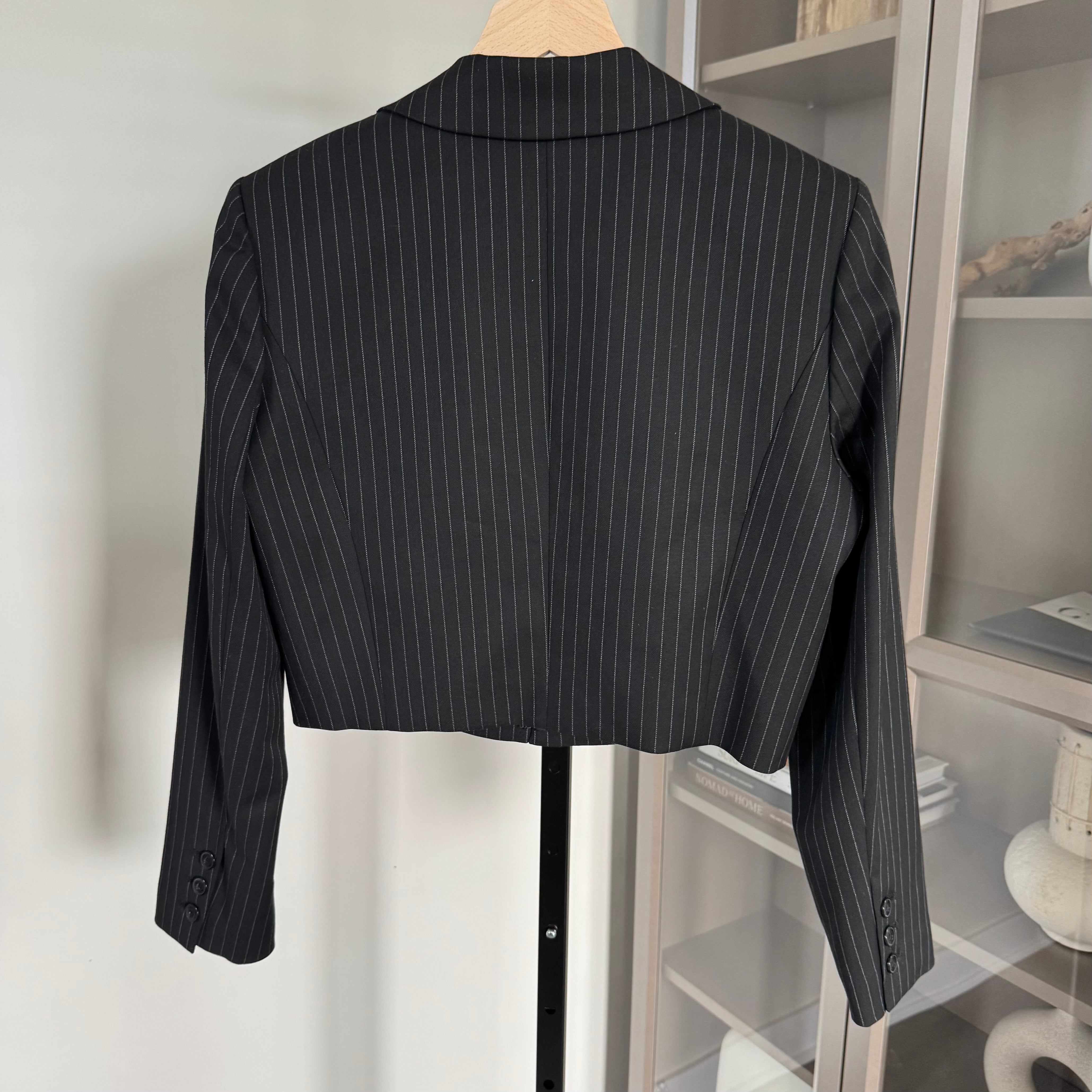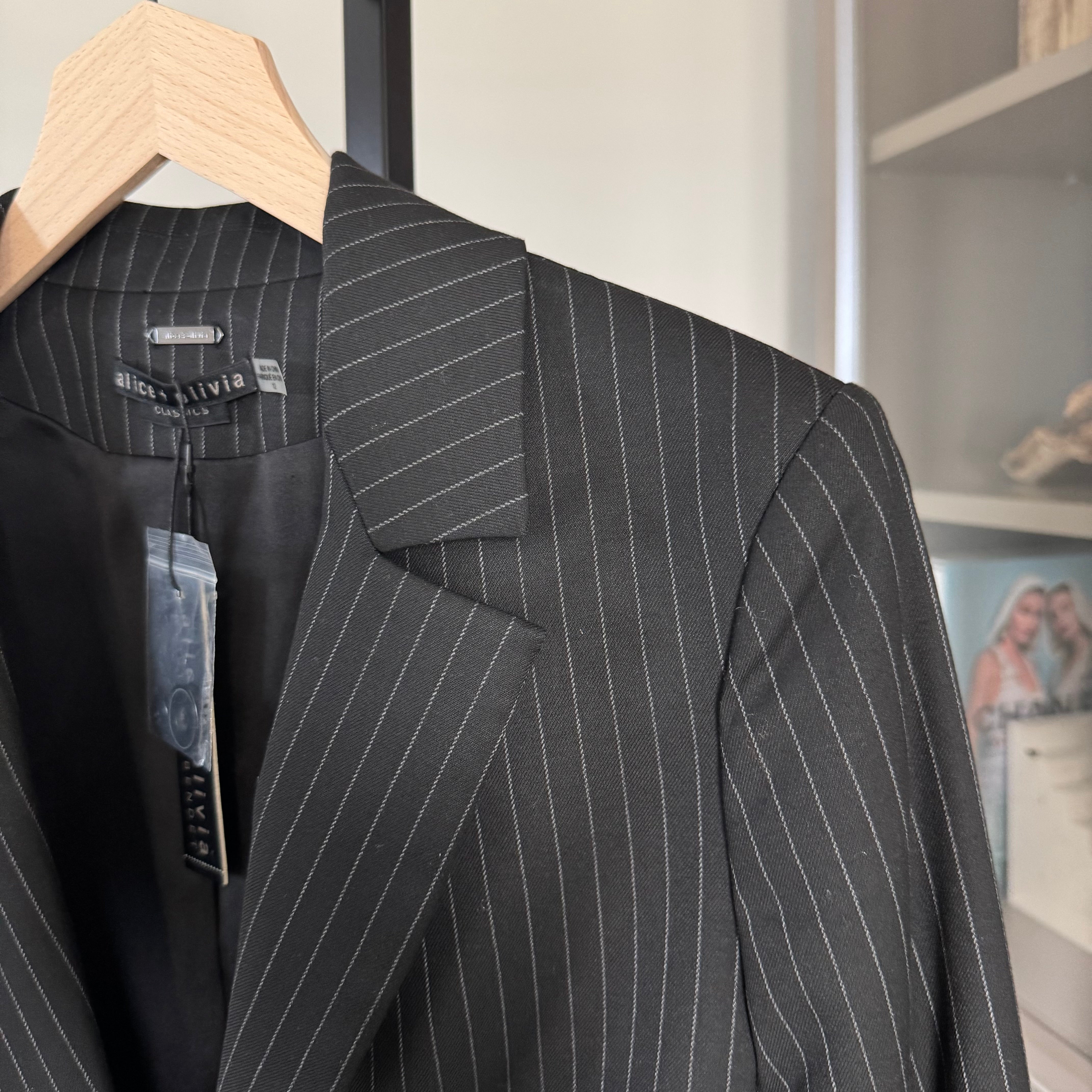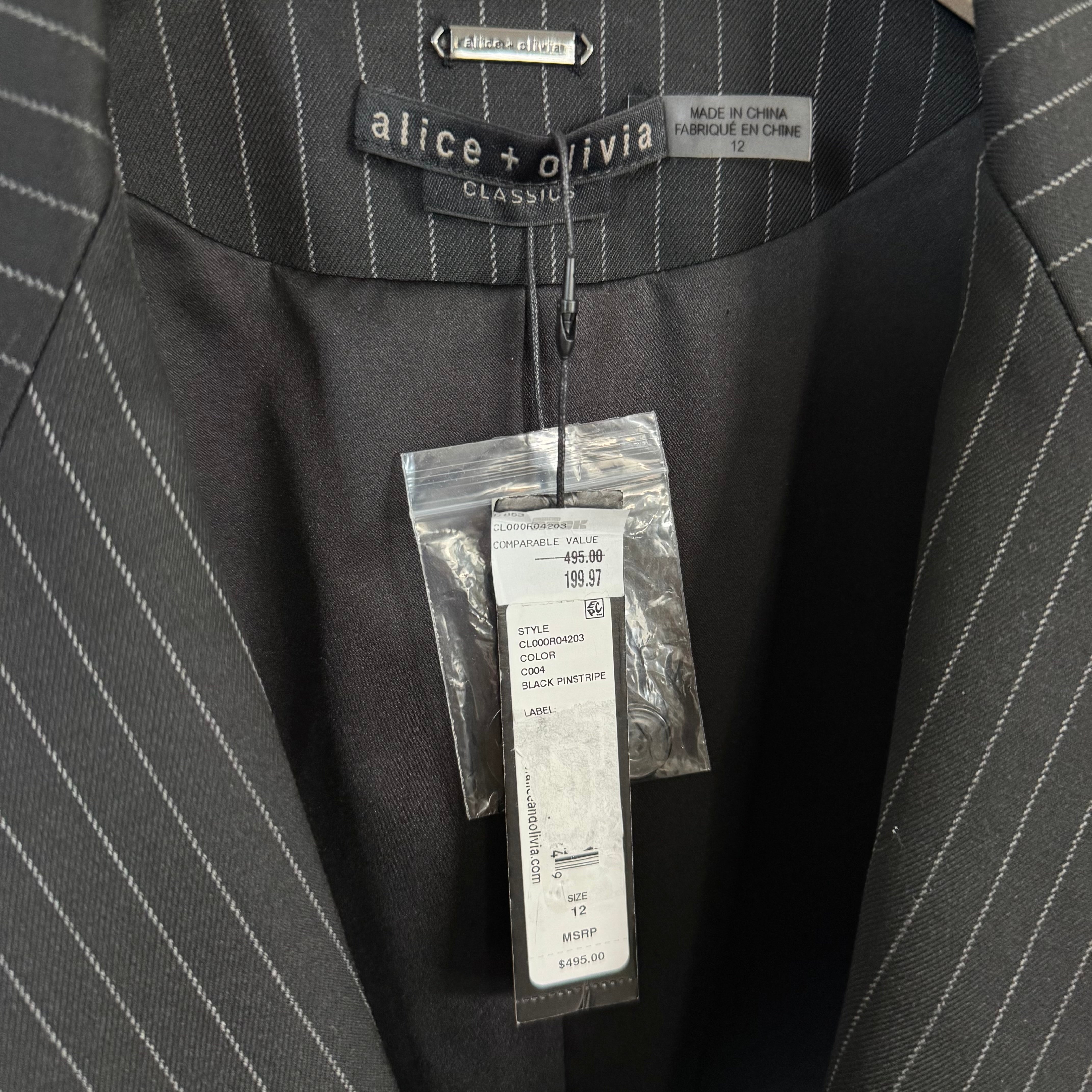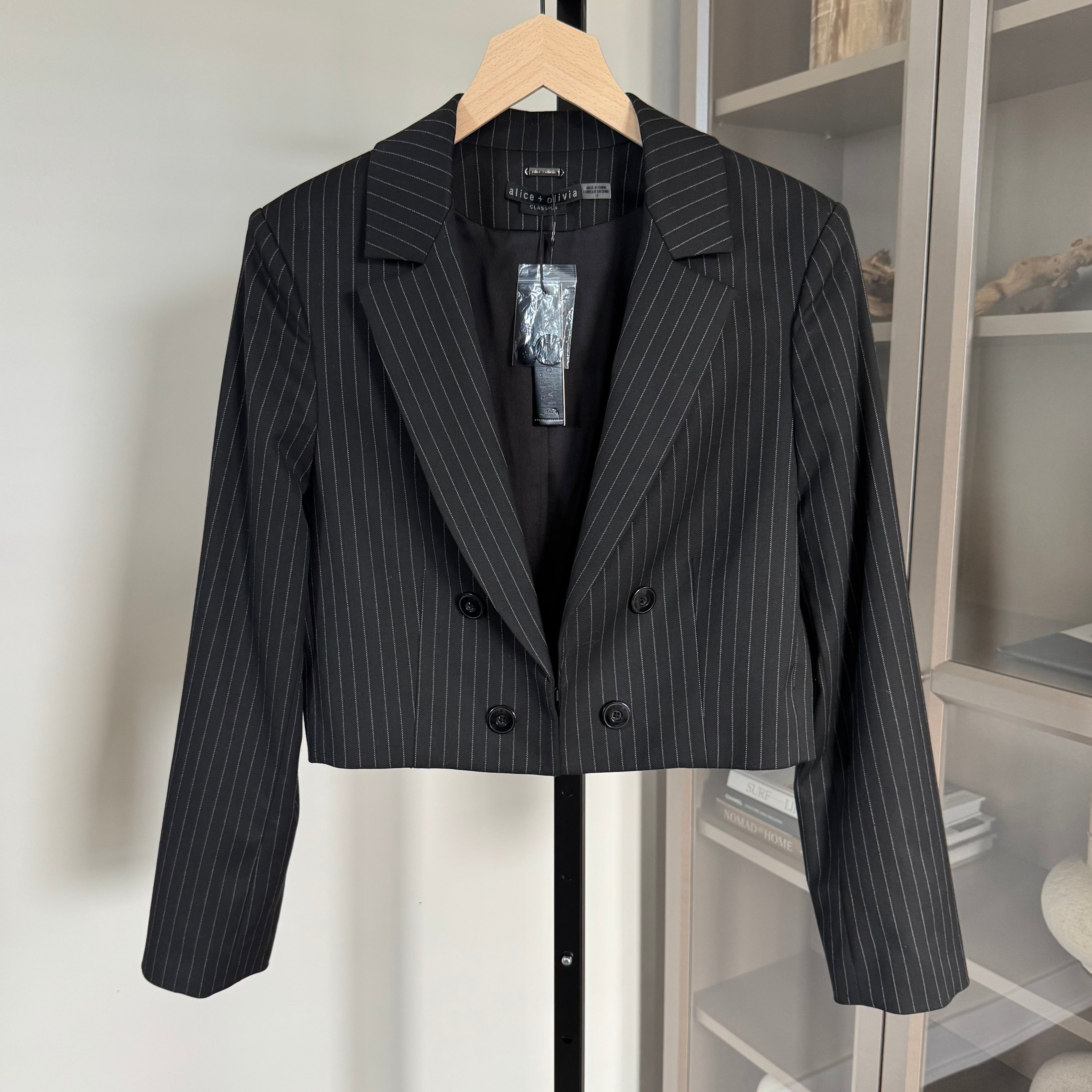 Alice + Olivia Mya Black Cropped Pinstripe Twill Blazer
