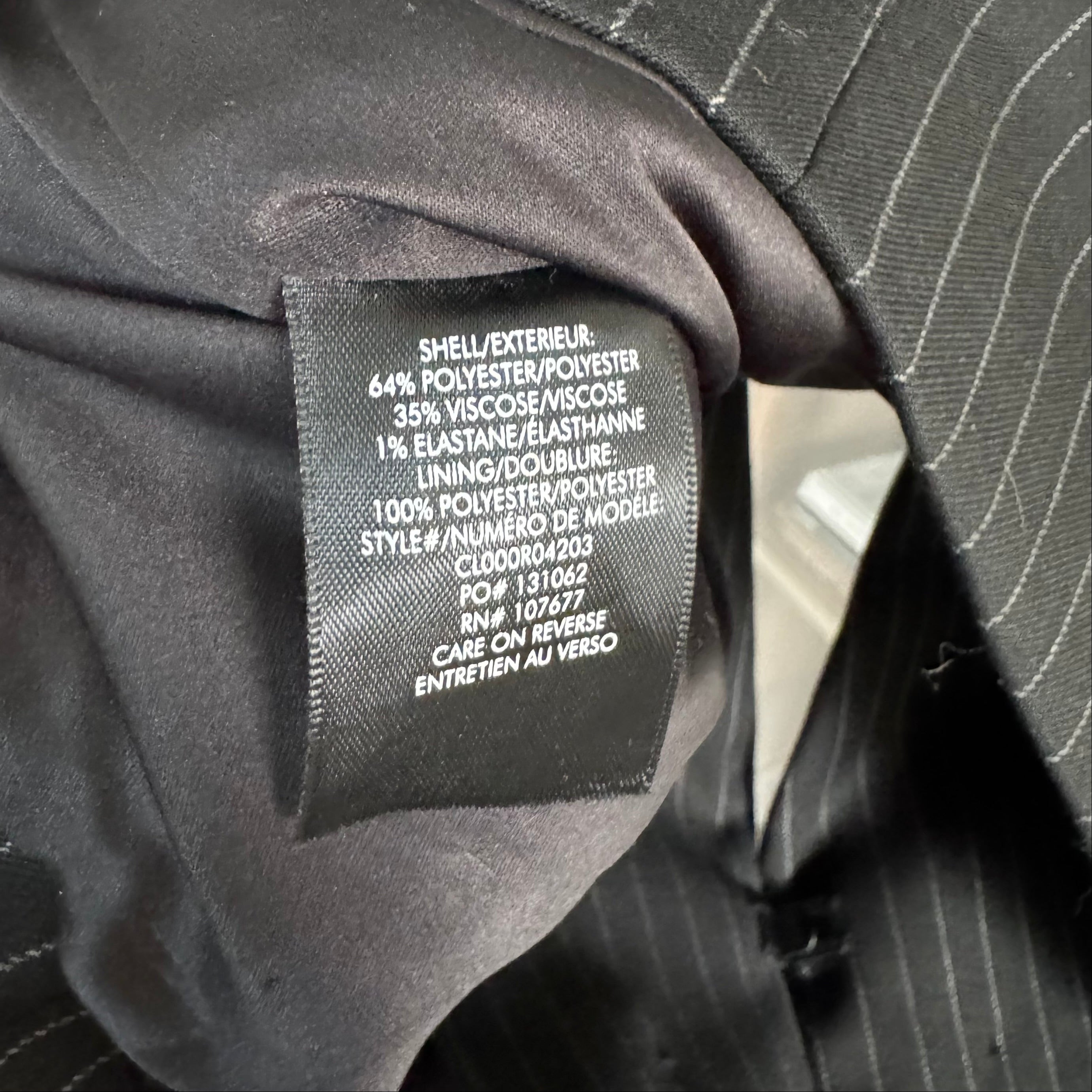 • Outer: 64% polyester, 35% viscose & 1% elastane
