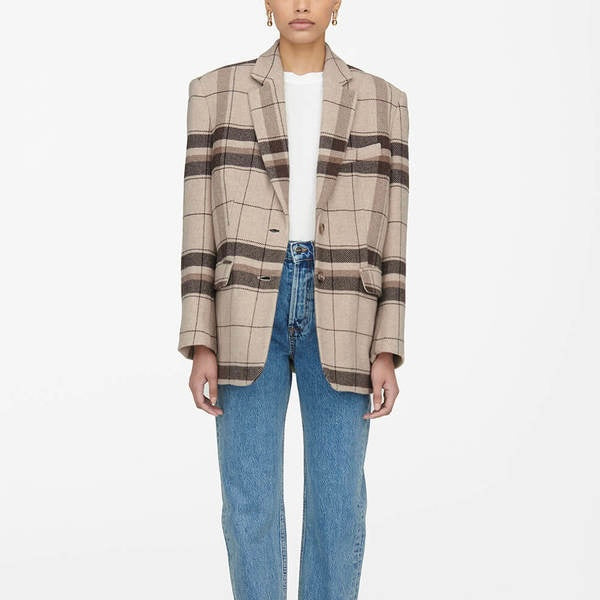 Anine Bing Quinn Tan Brown Two Button Khaki Plaid Blazer
