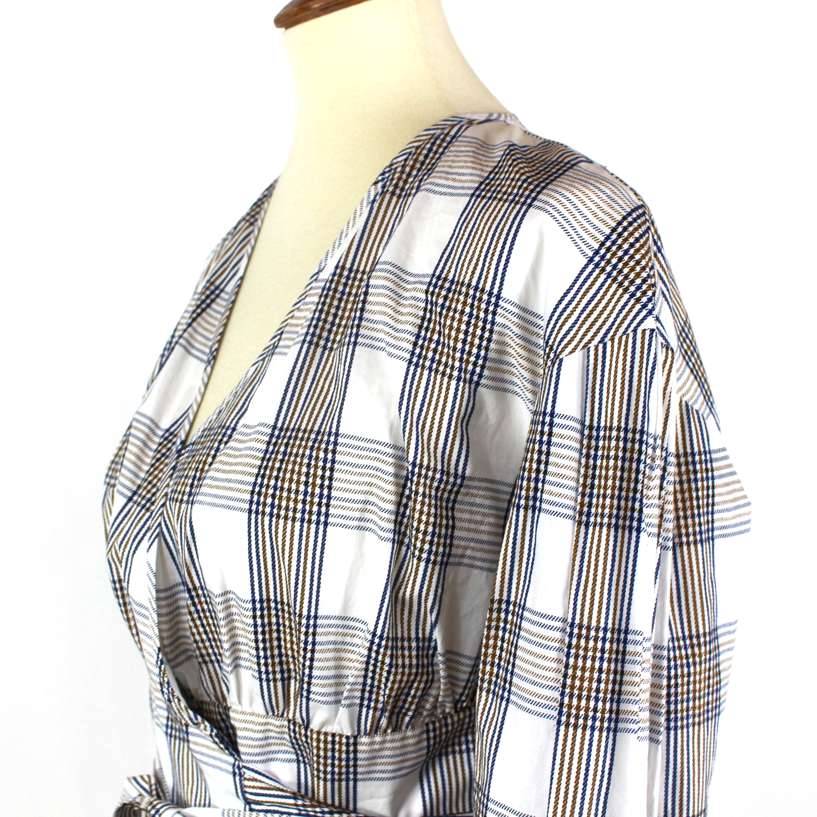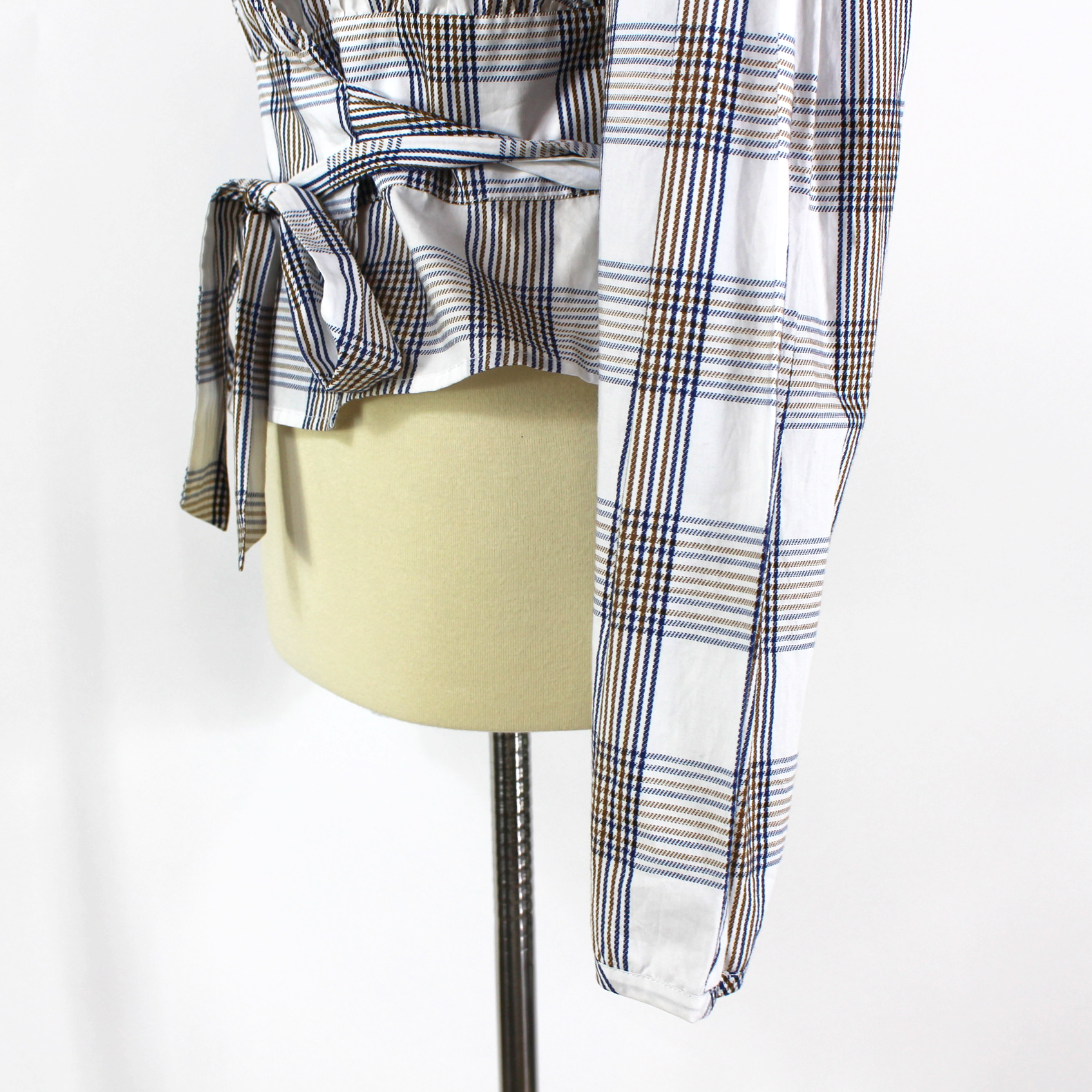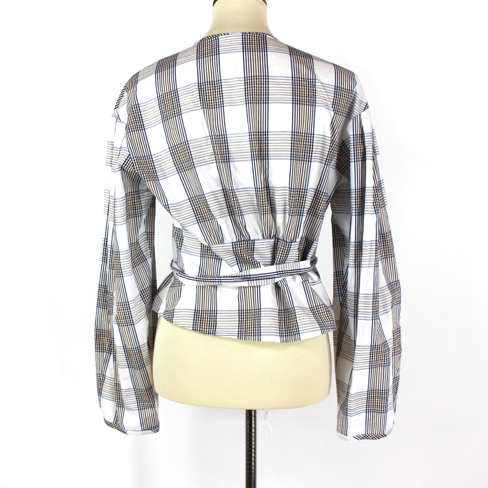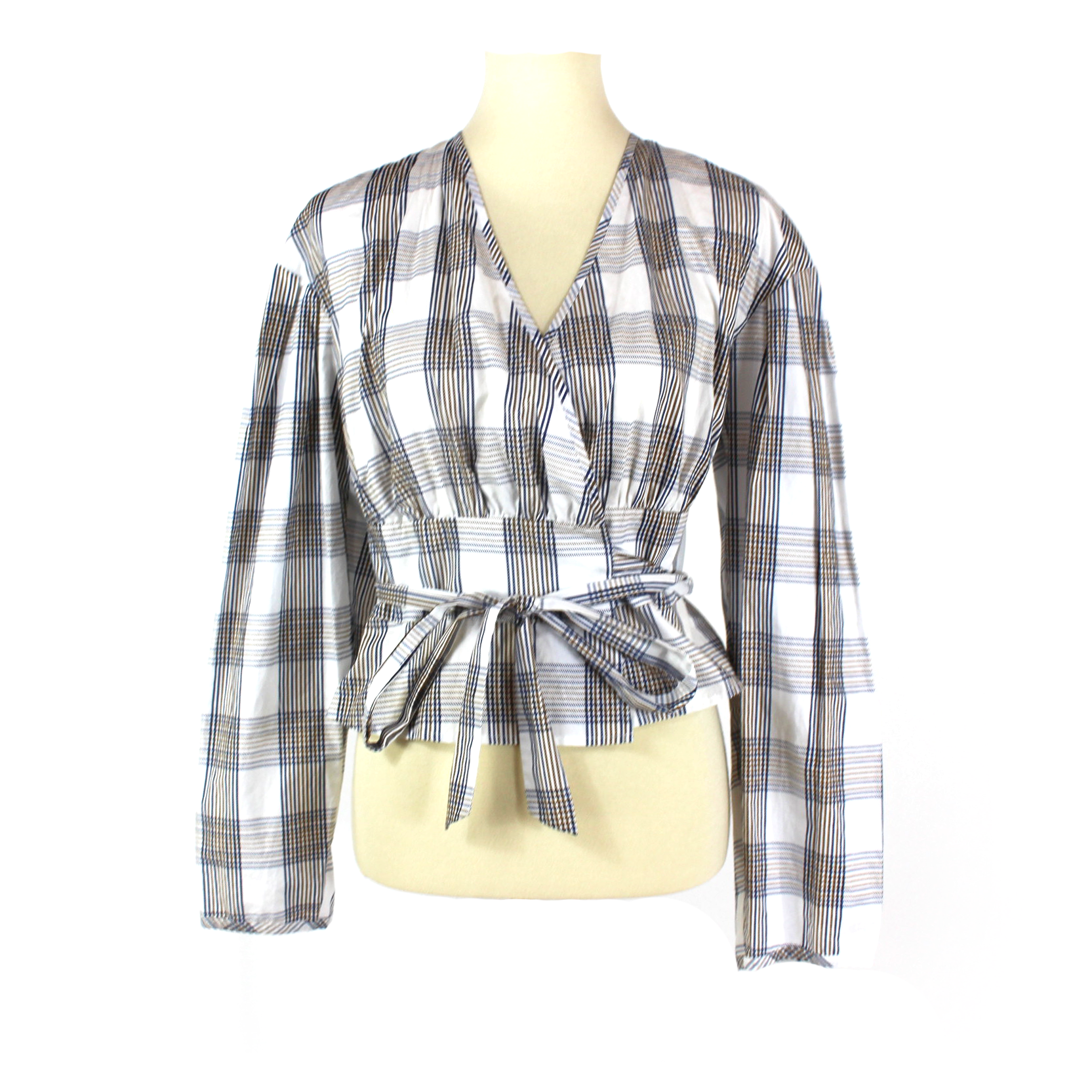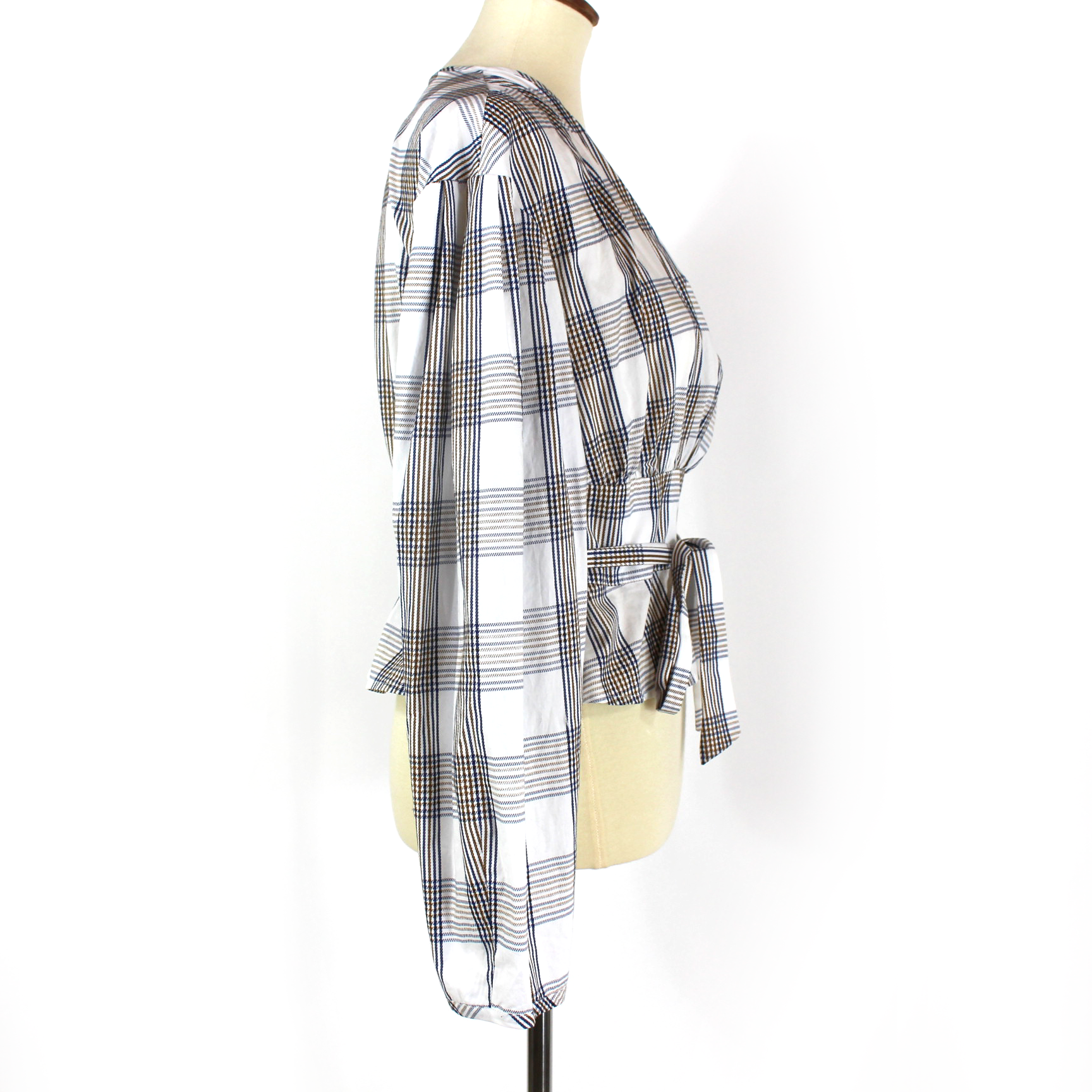Baum Und Pferdgarten Mianne Wrap White Navy Plaid Sash Detail Top
