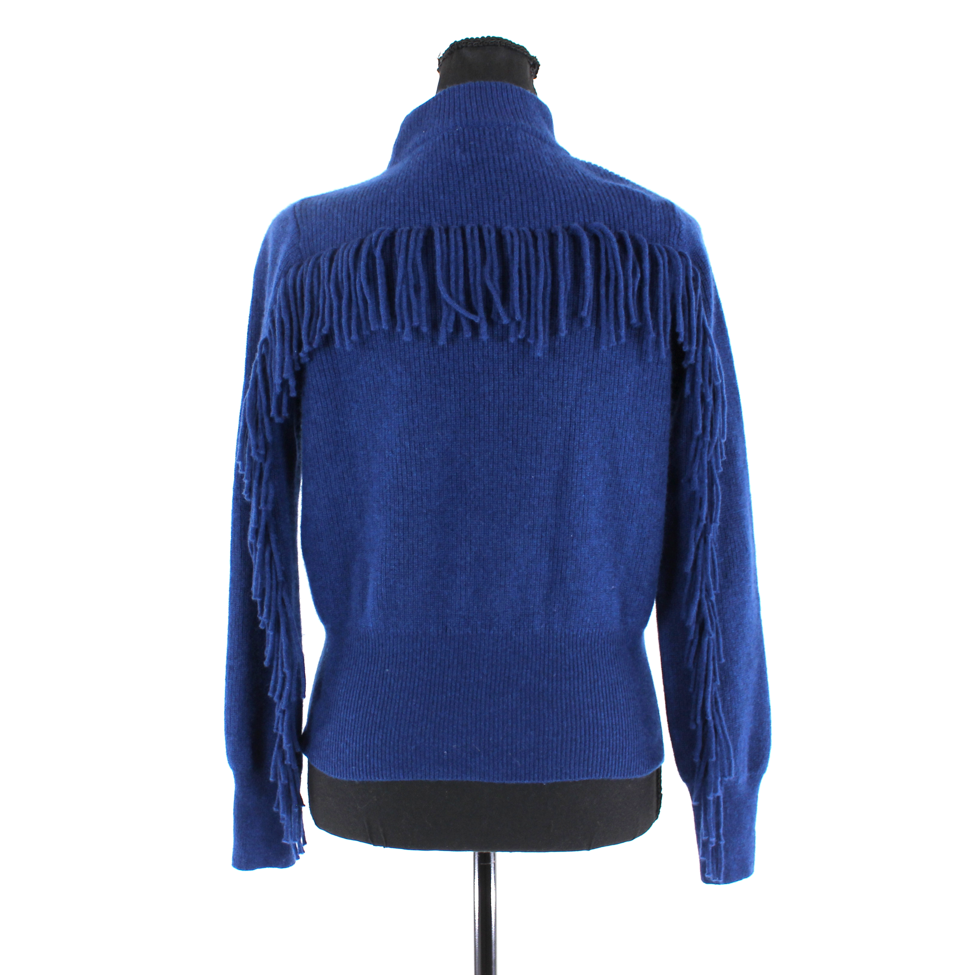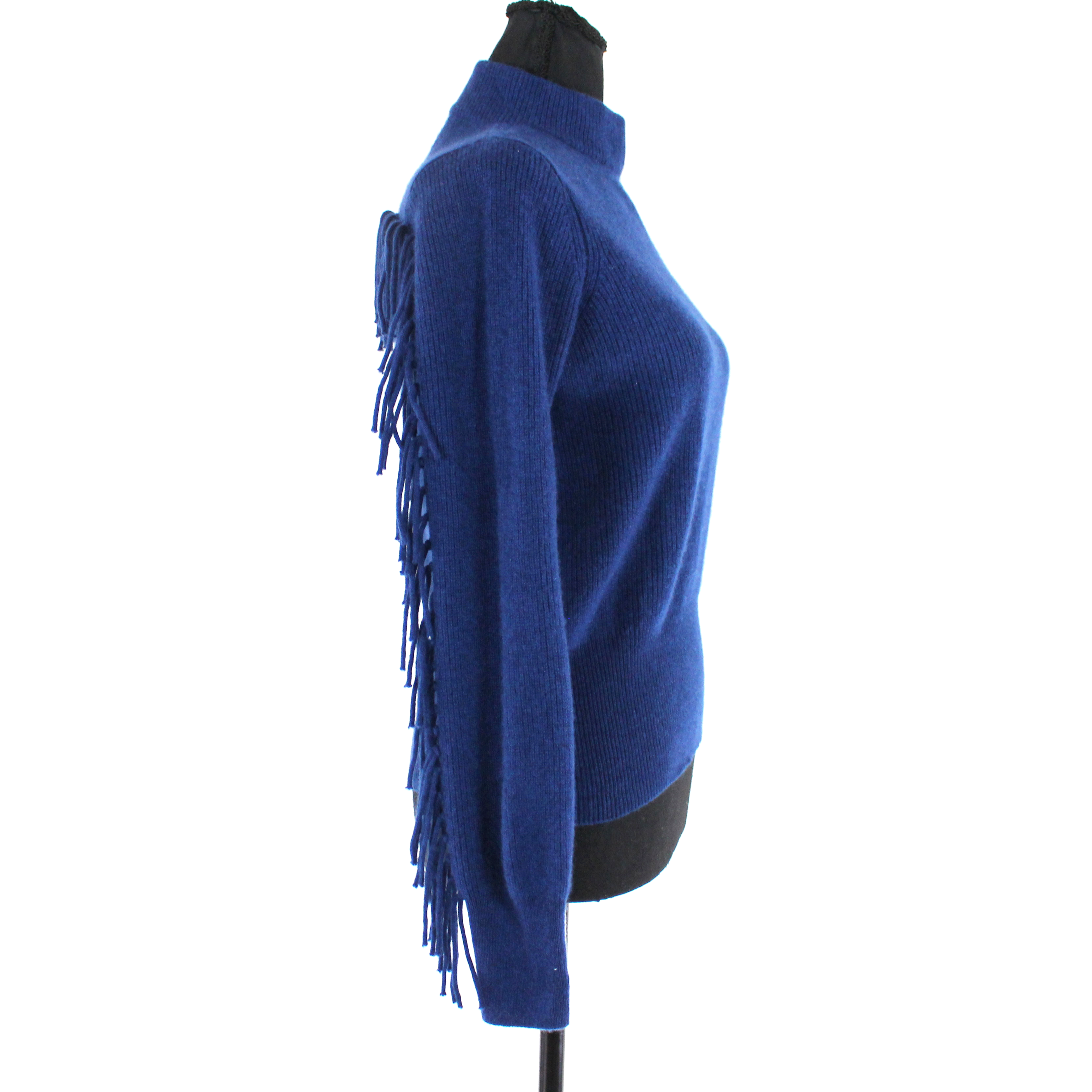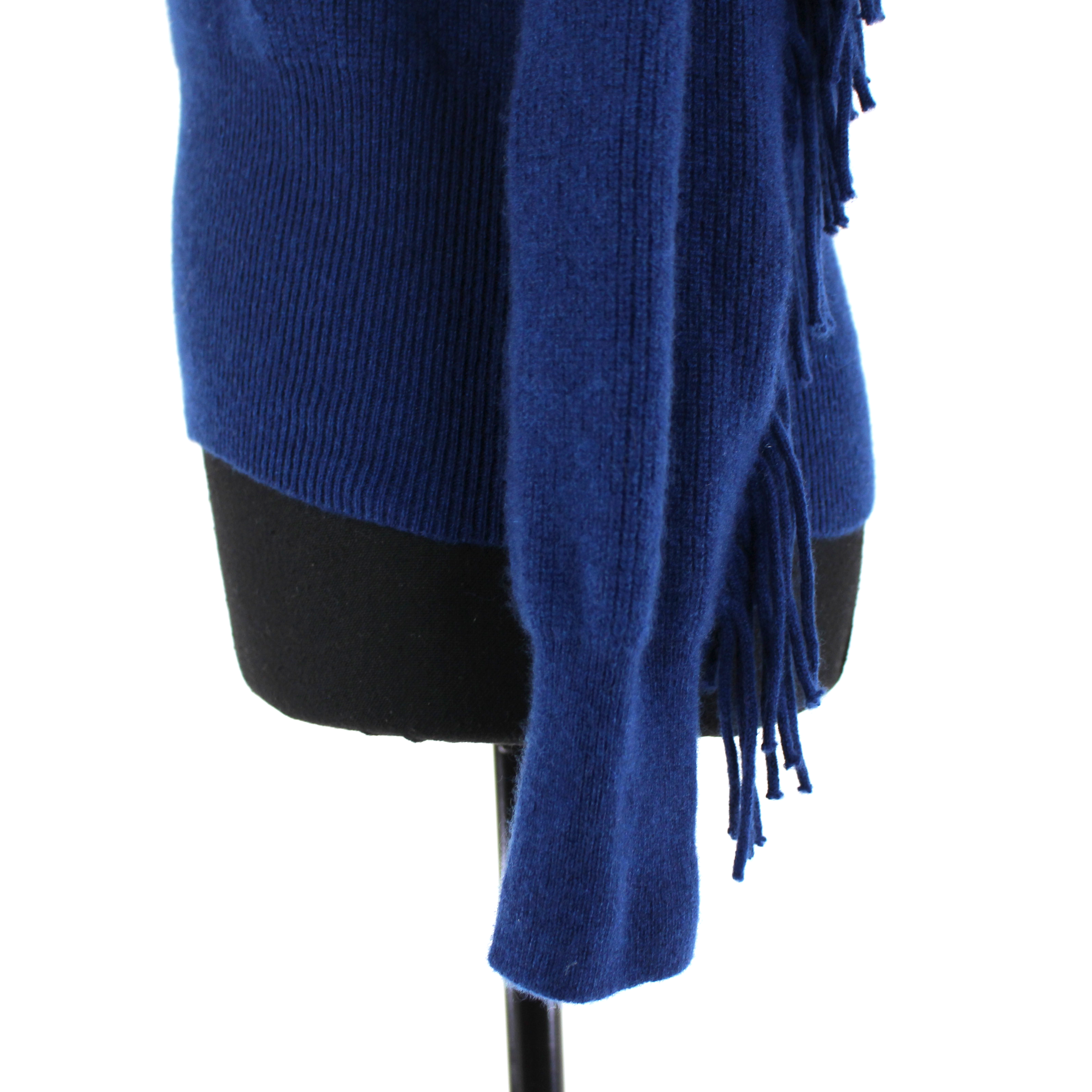 Brodie Cashmere Royal Blue Sophia Fringe Trim Long Sleeve Sweater