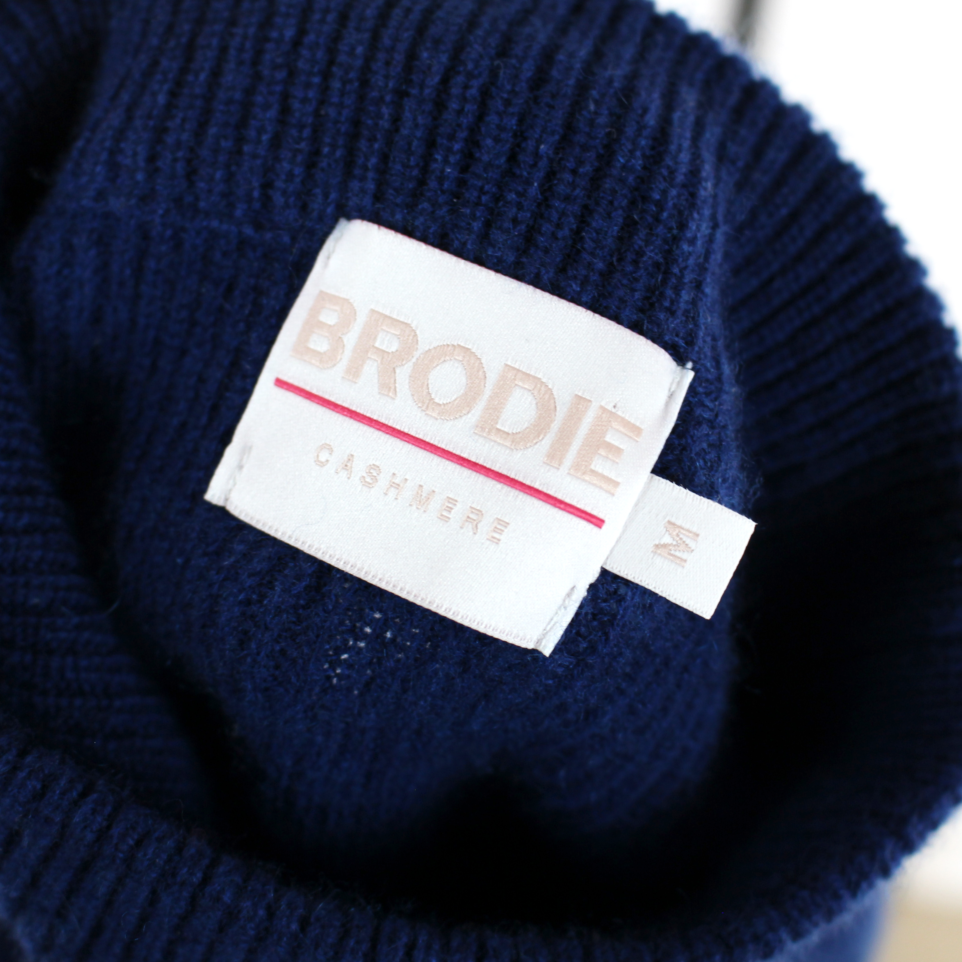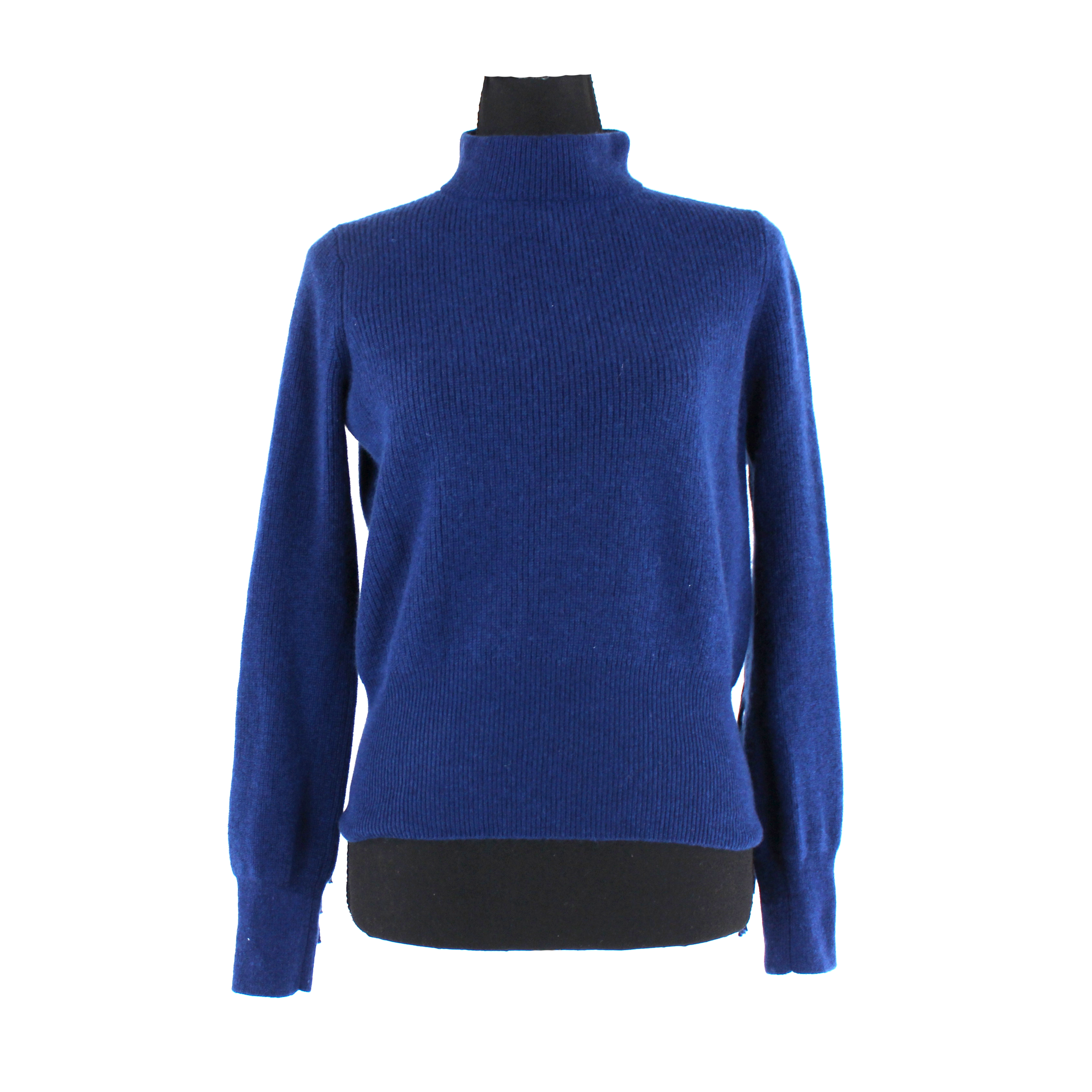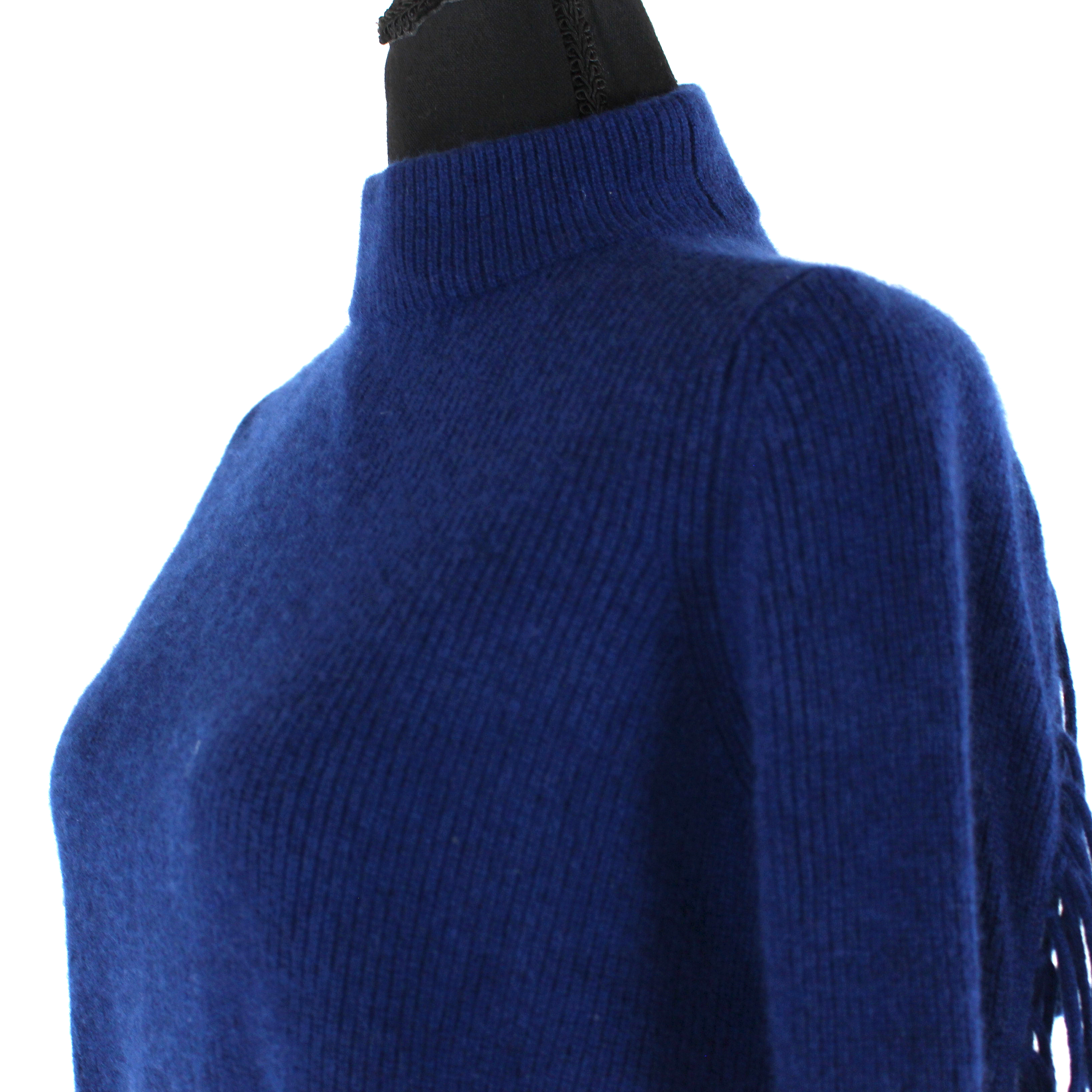 Brodie Cashmere Royal Blue Sophia Fringe Trim Long Sleeve Sweater