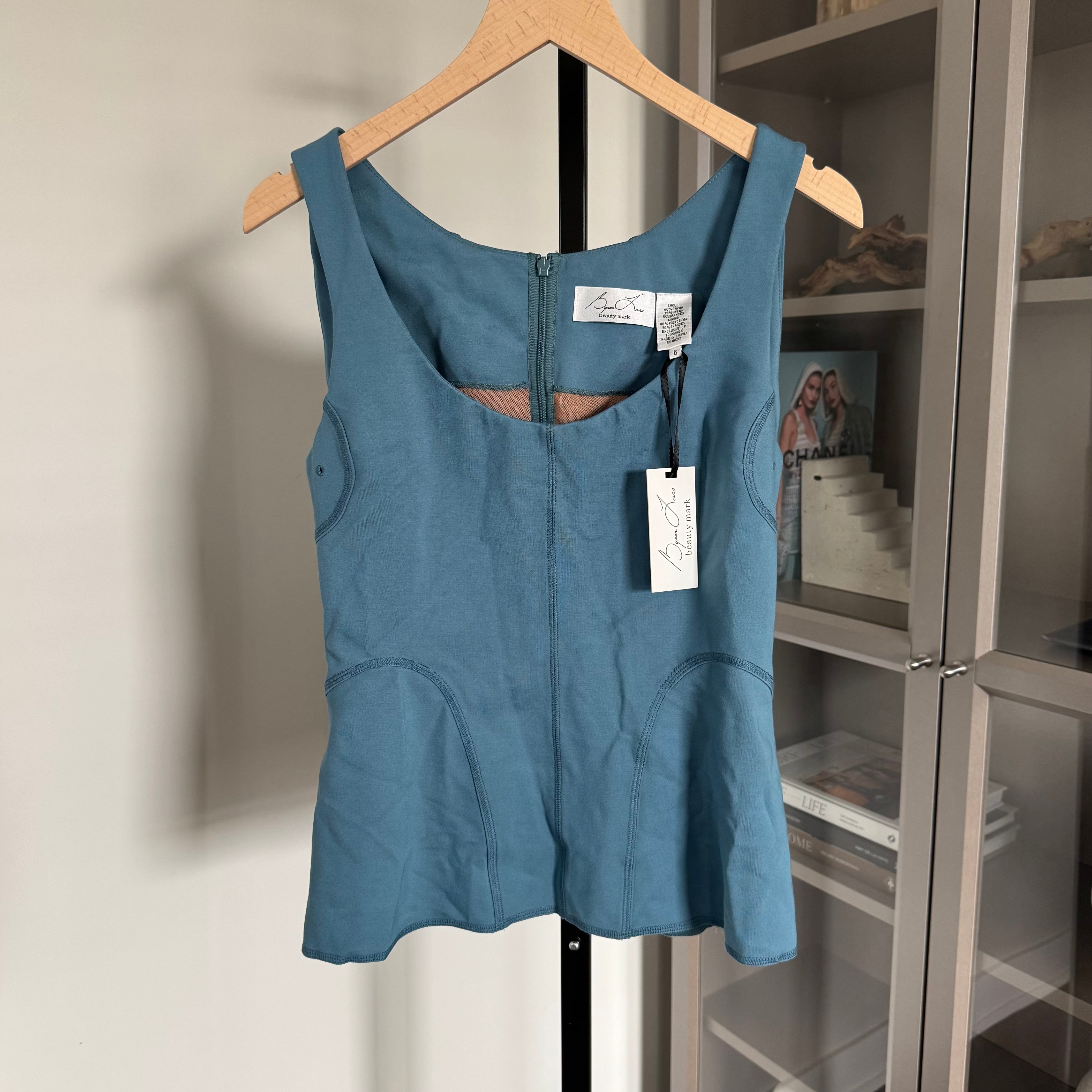 Byron Lars Baby Blue Hi-Lo Structured Tan Top