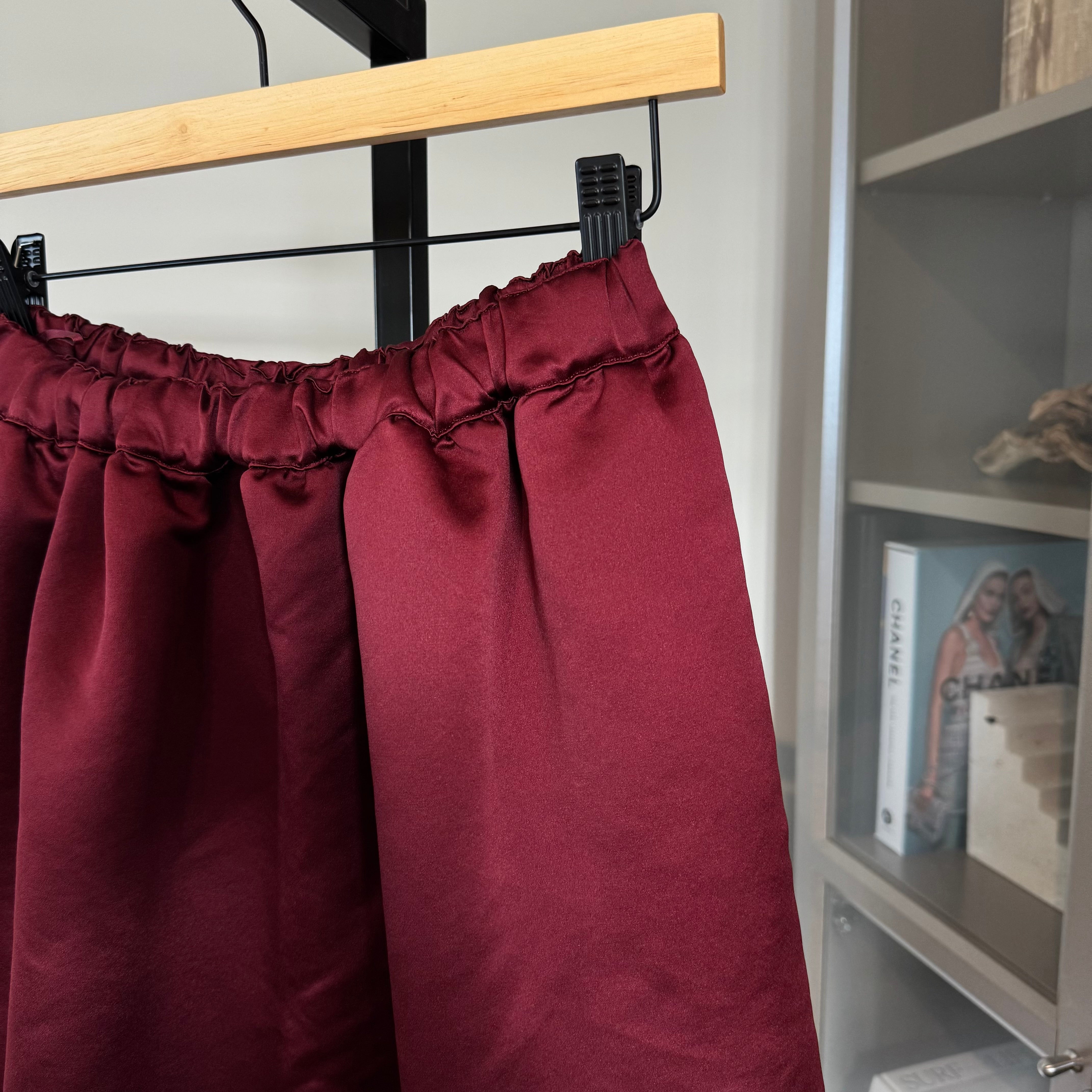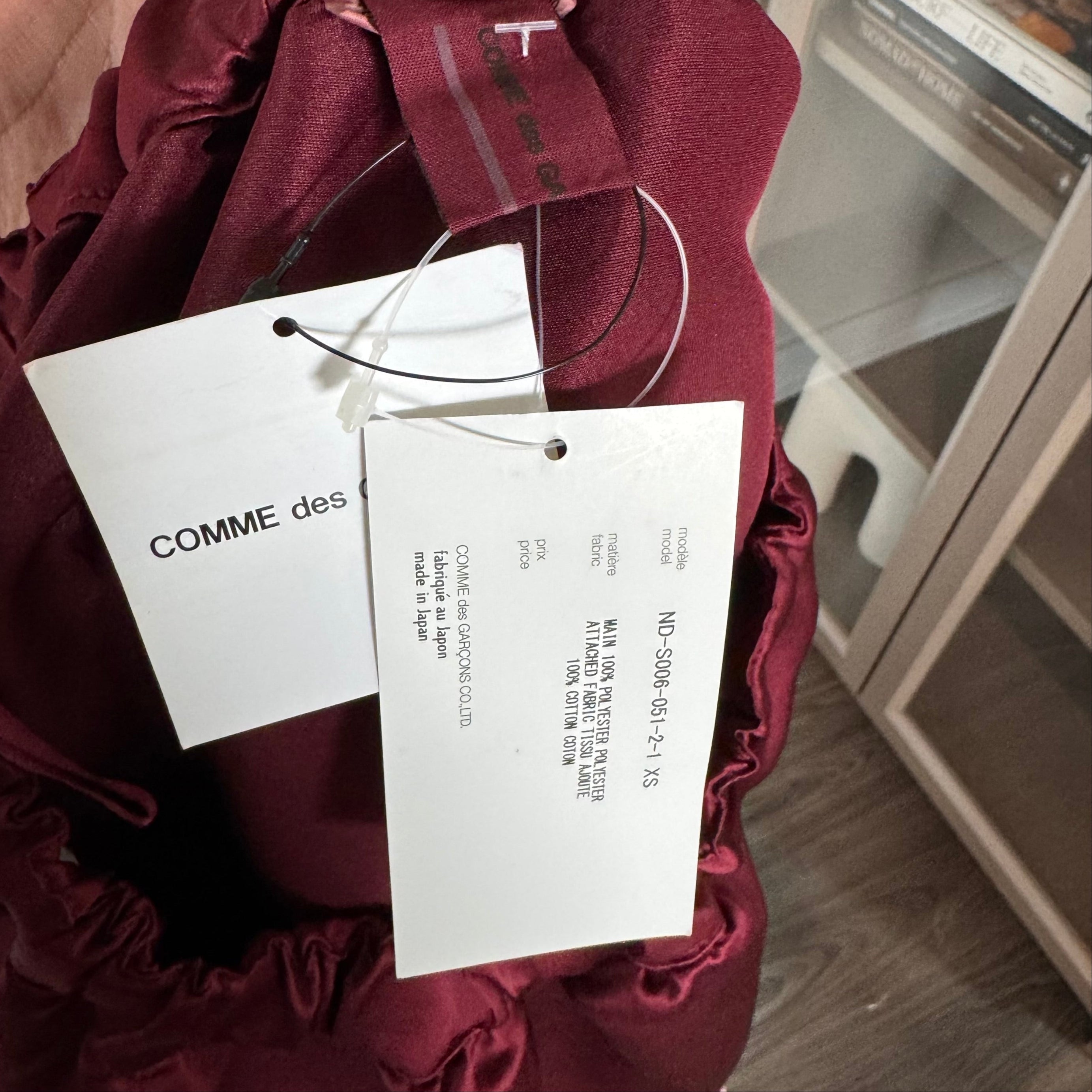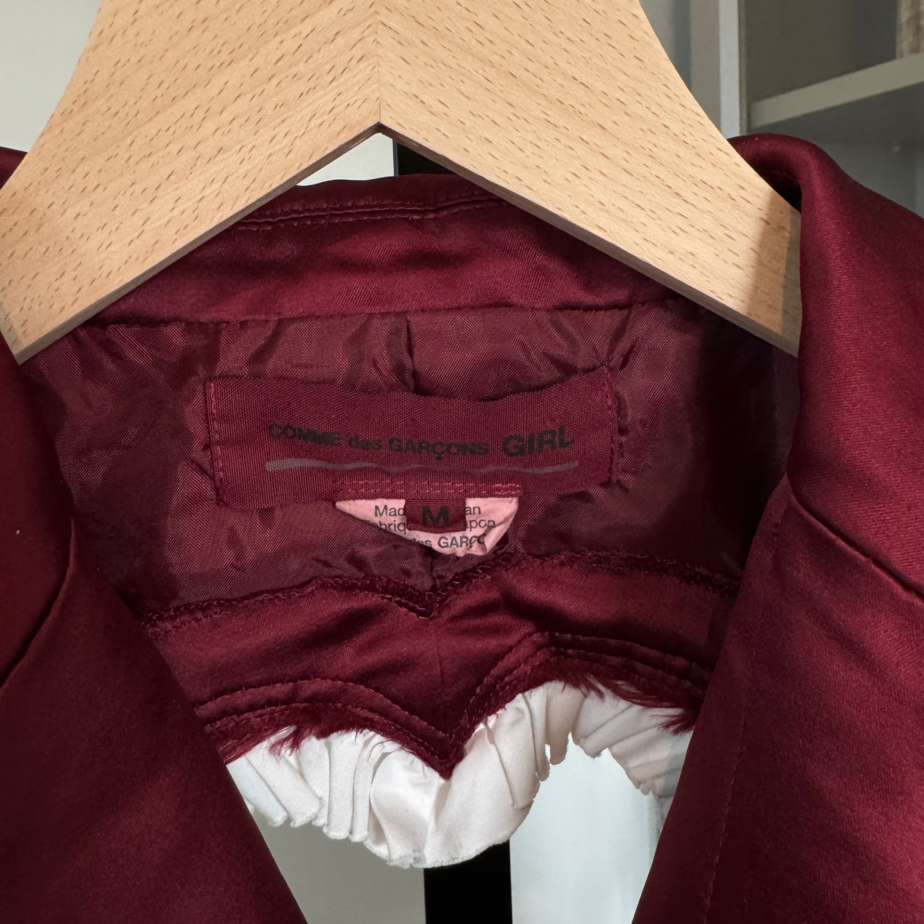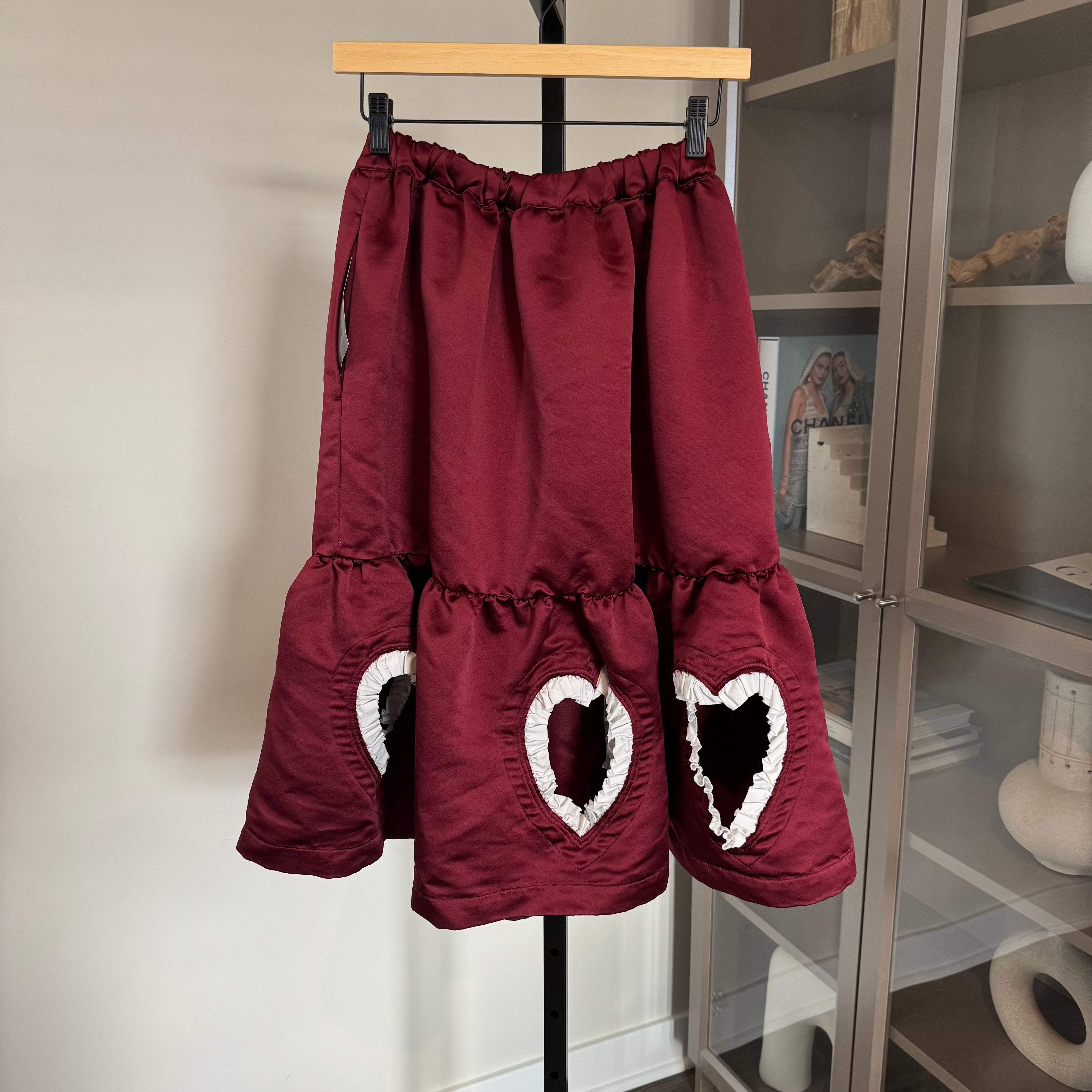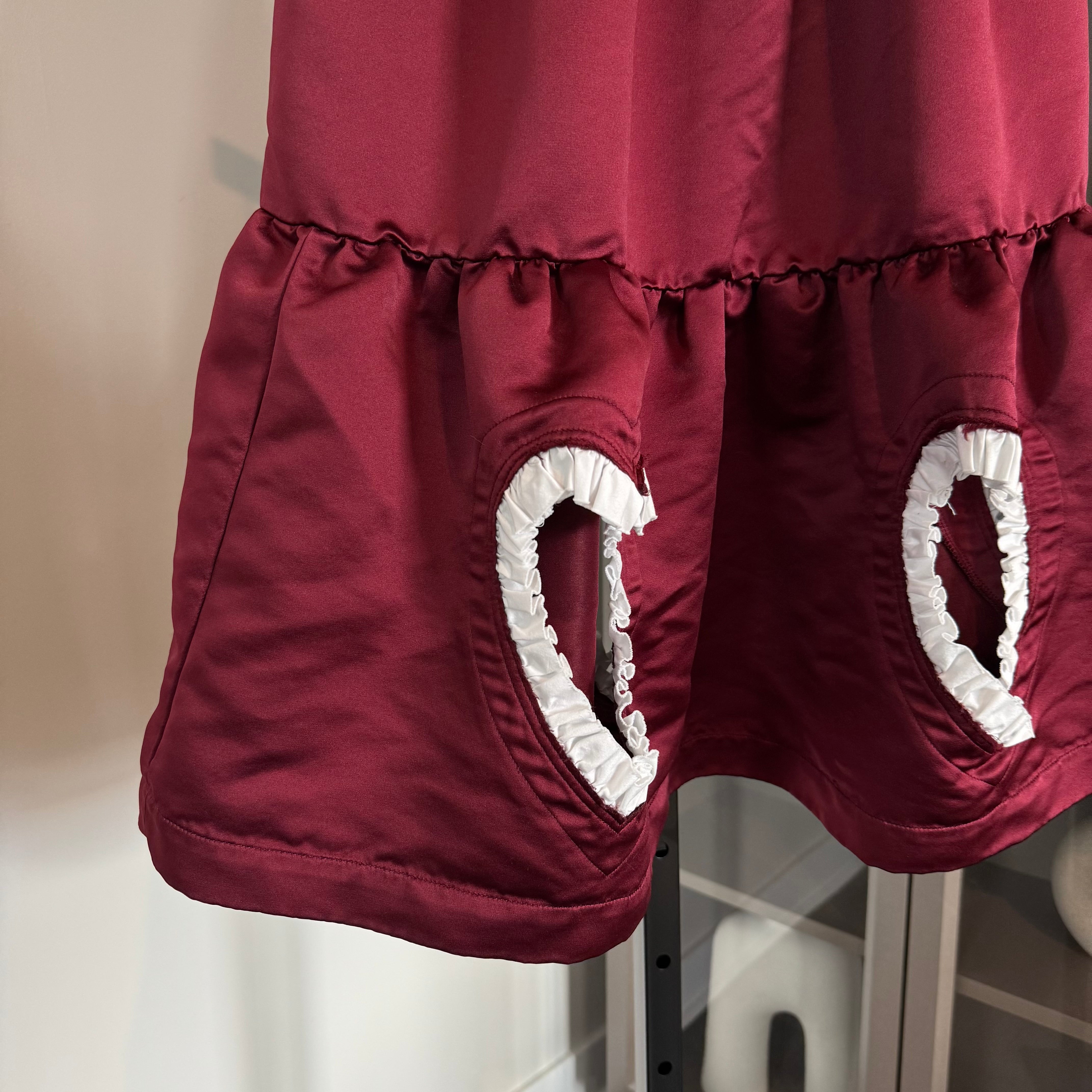Comme Des Garcons Girl Burgundy Satin White Heart Cut-Out Ruffle Skirt Set