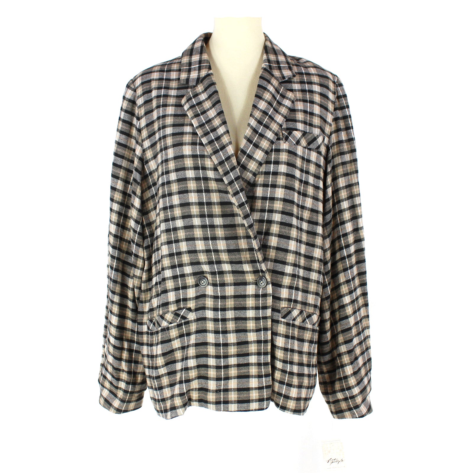 Free People We The Free Luminary Tan Plaid Soft Flannel Double Breasted Blazer