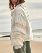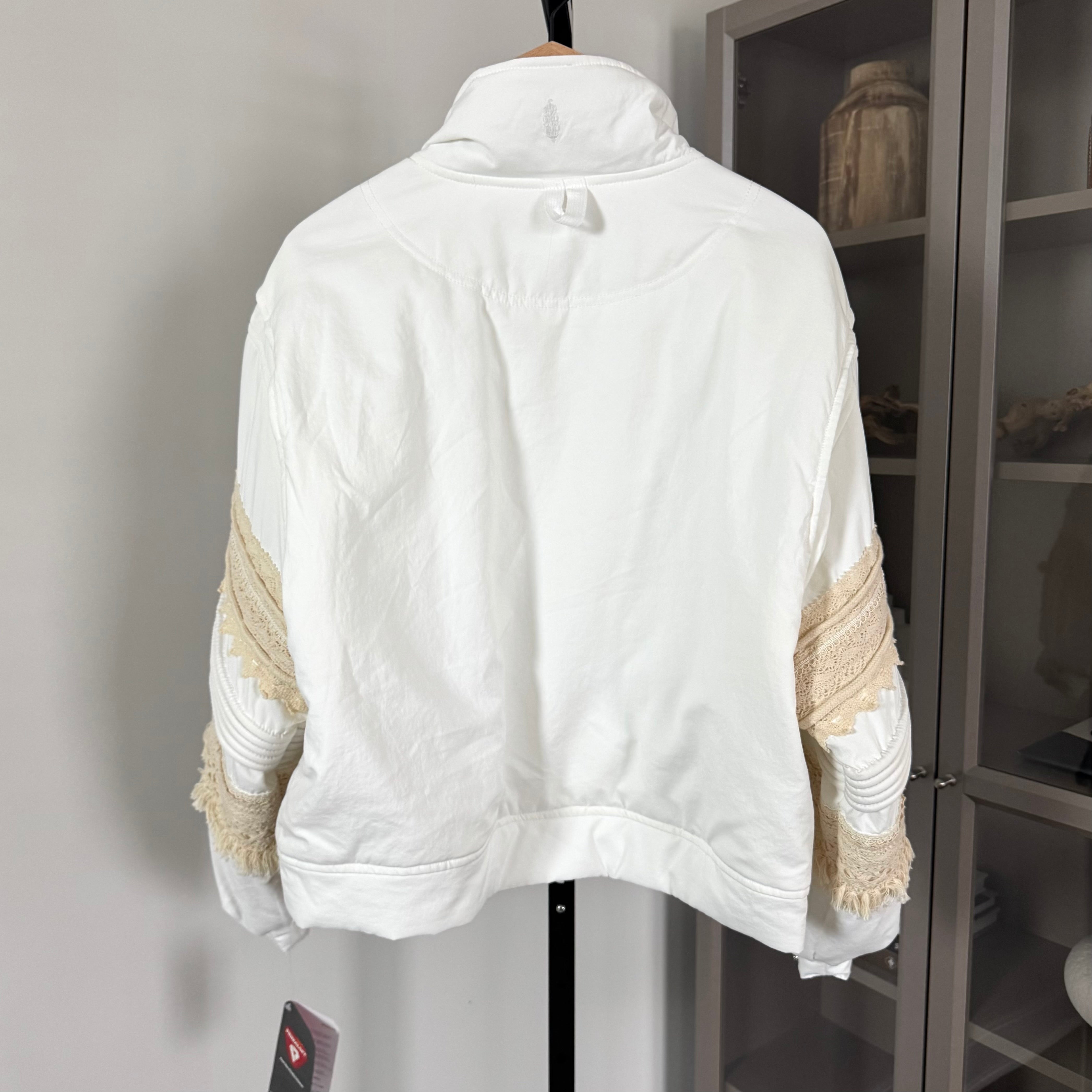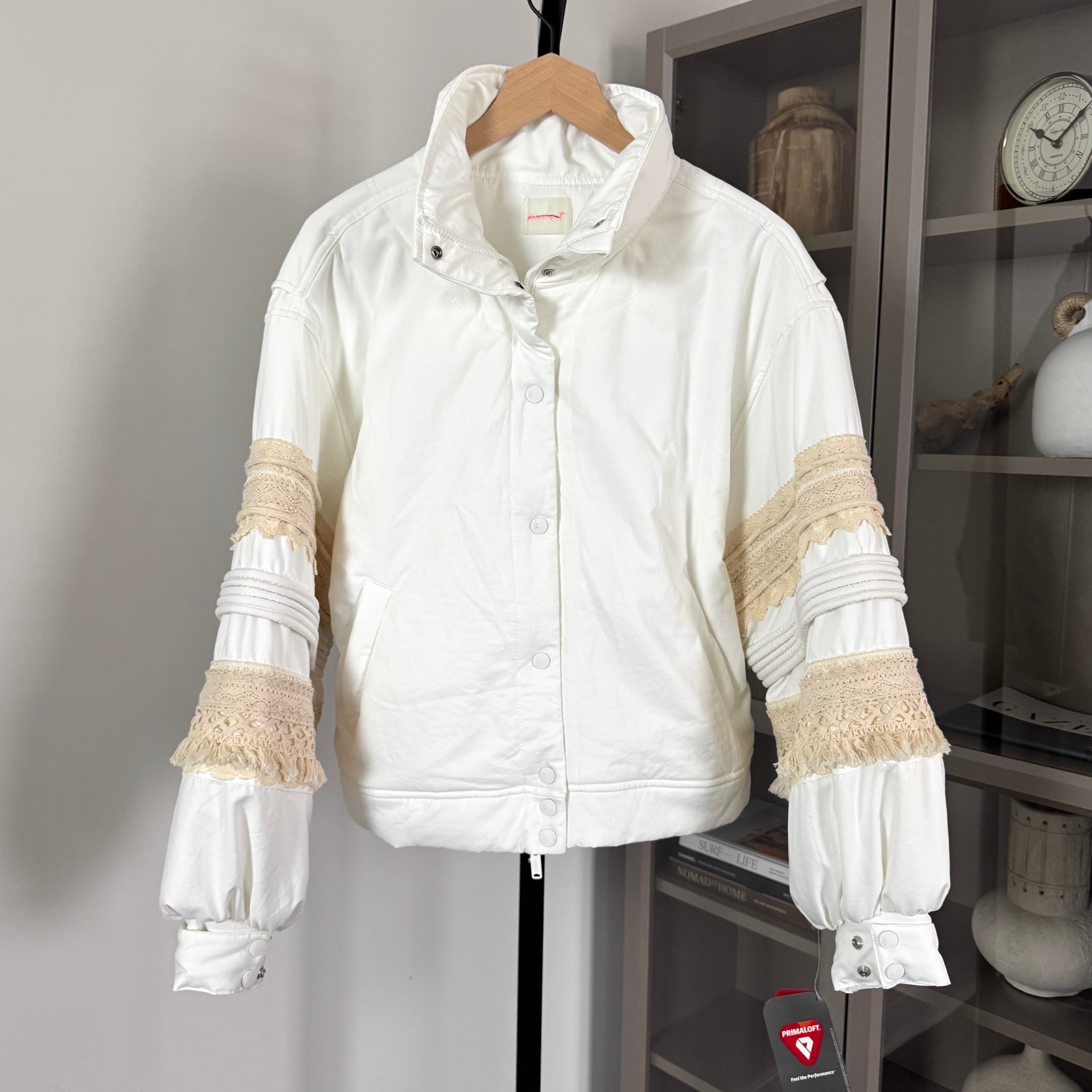 Free People Movement Solstice White Bomber Crochet Ivory Fringe Jacket