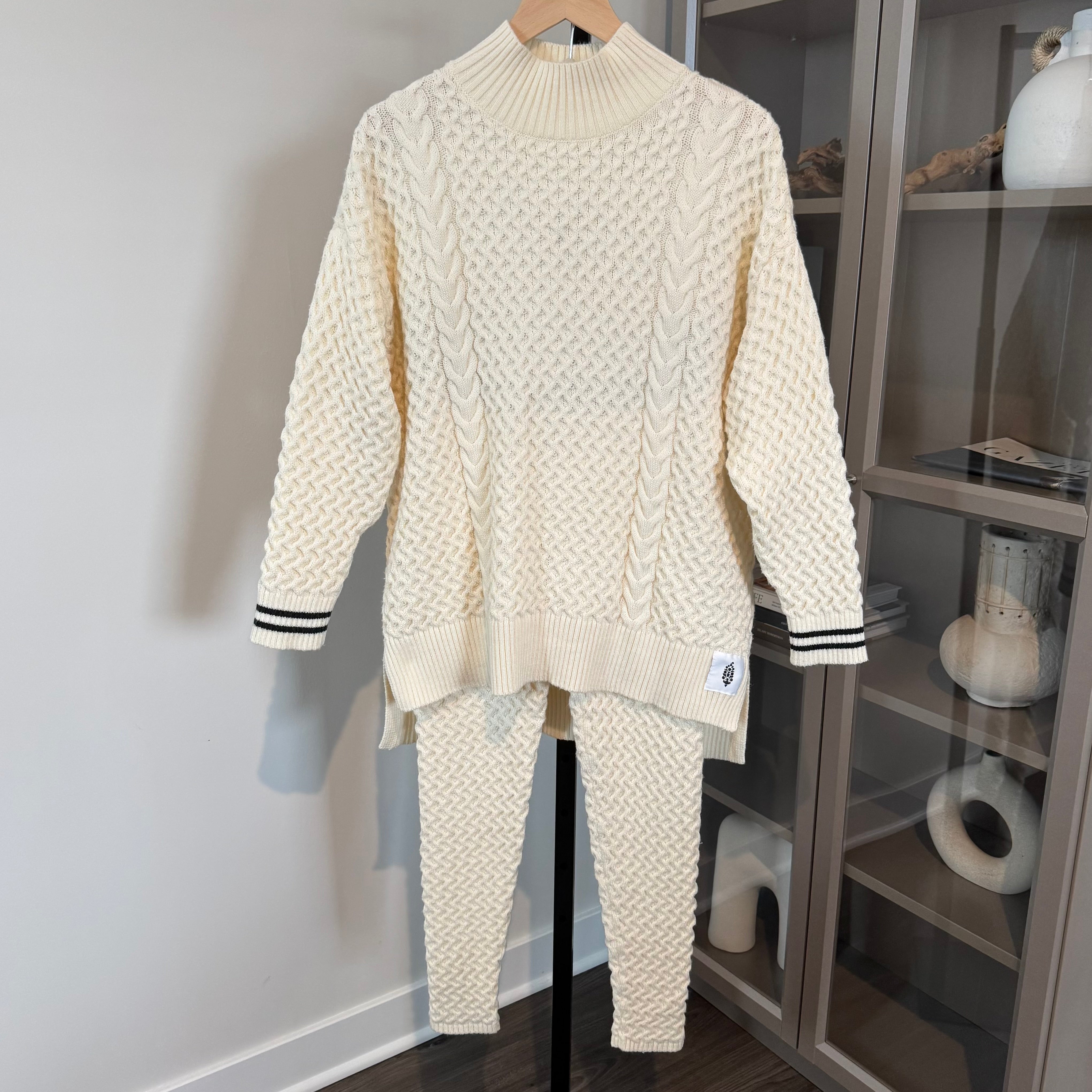 Free People Selin Two Piece Ivory Black Stripe Detail Chunky Sweater Pants Set