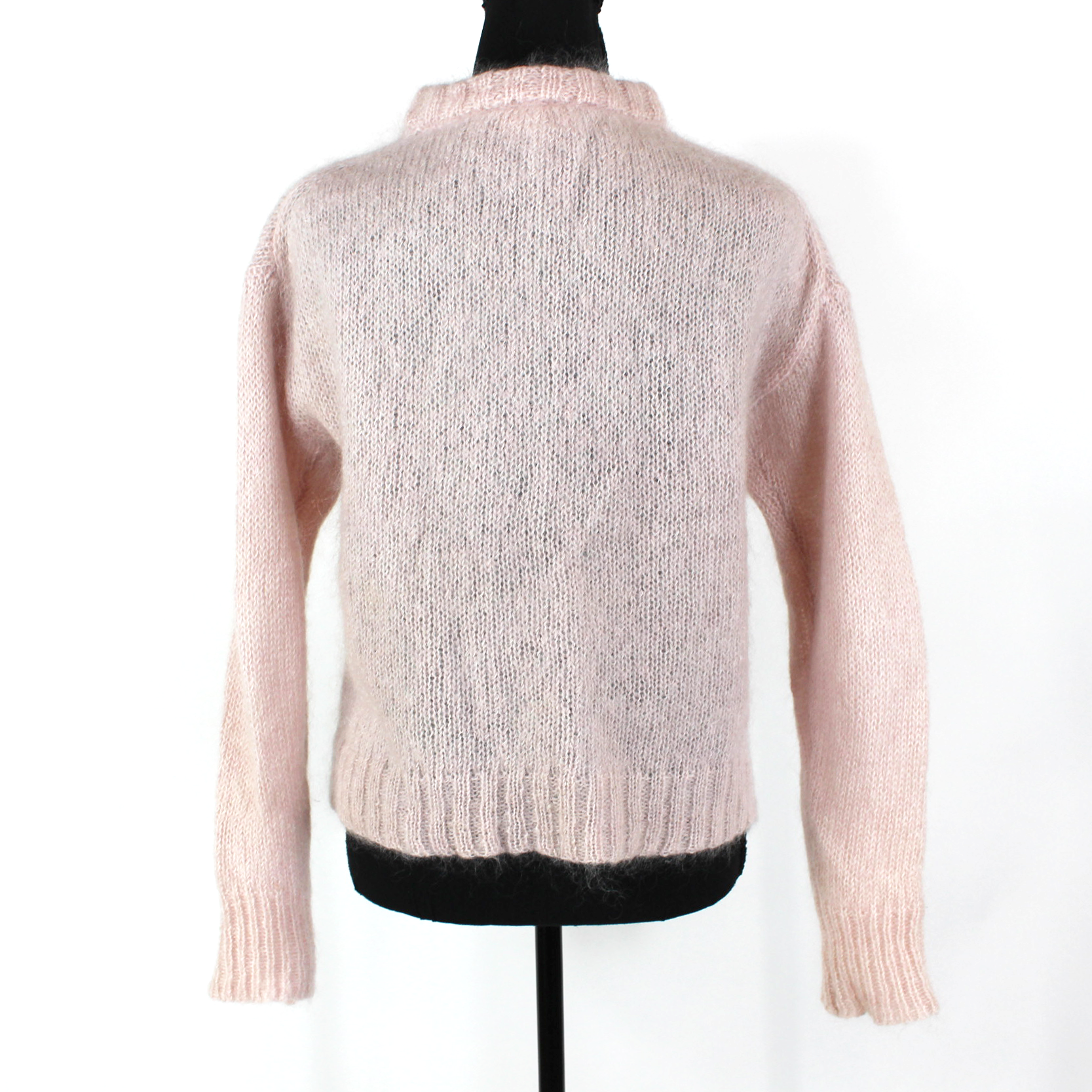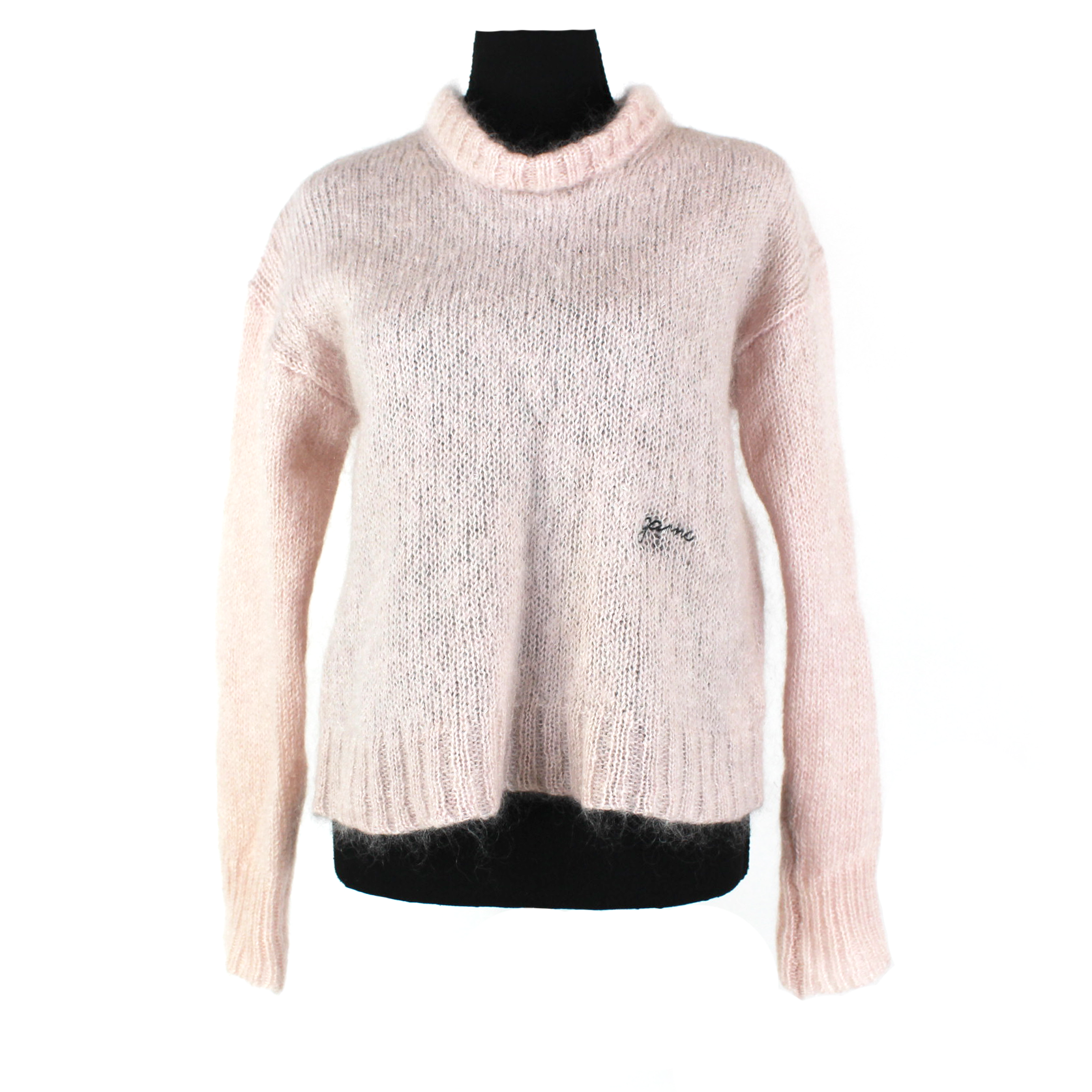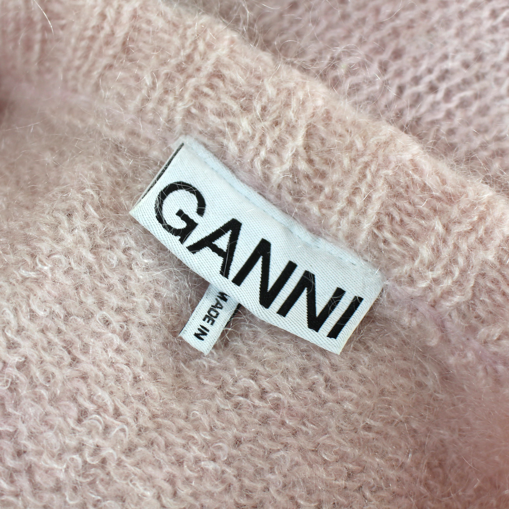 GANNI Pink Brushed Mohair Blend Logo Pullover Relaxed Fit Knit Sweater