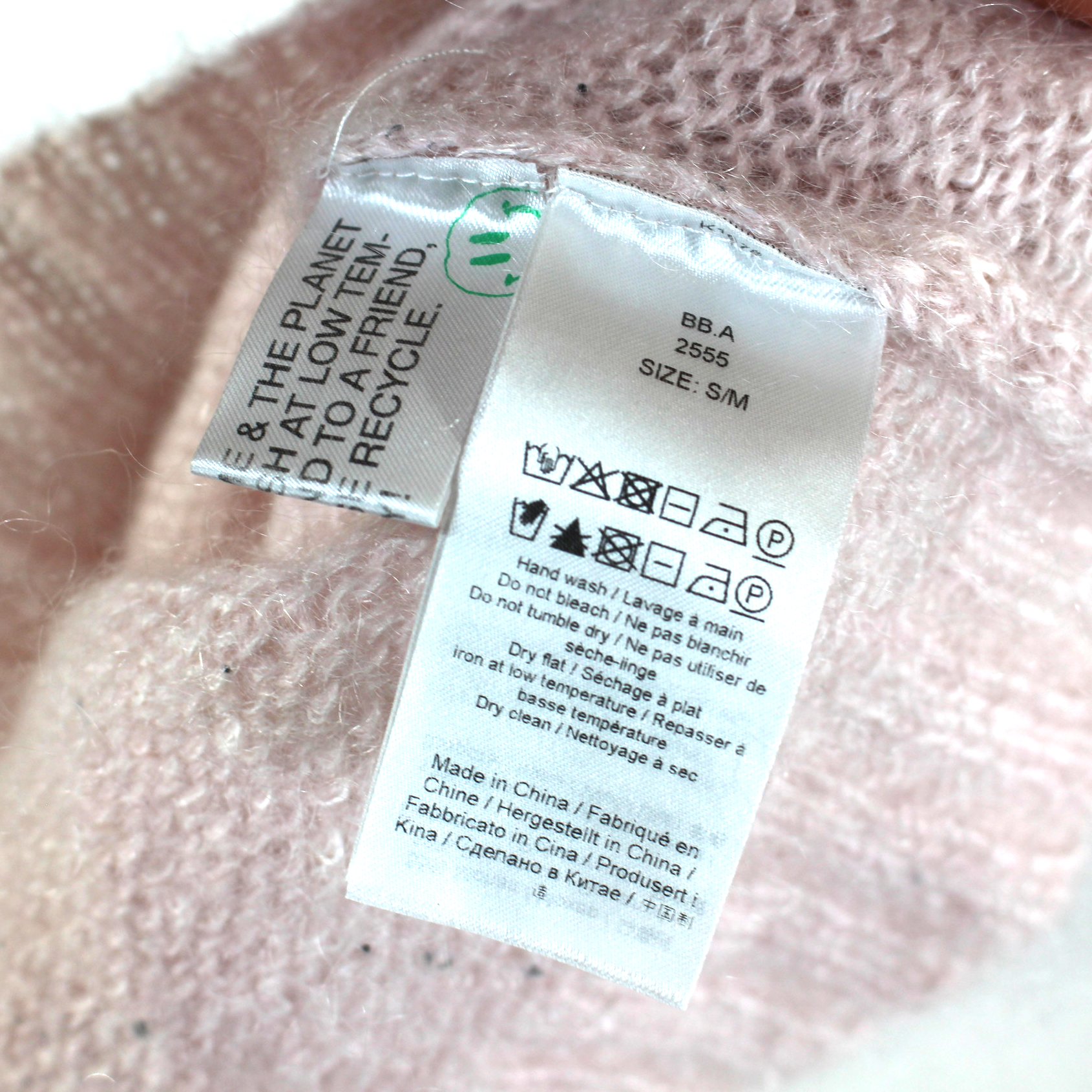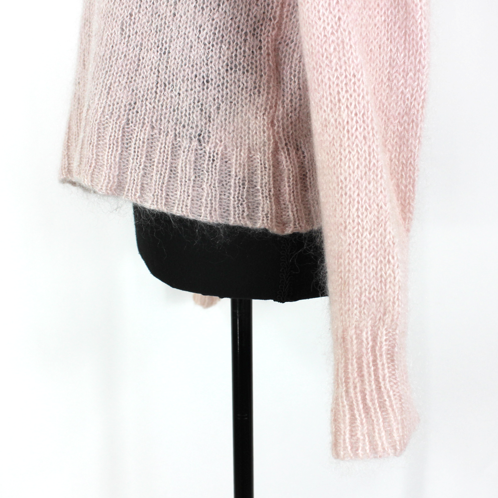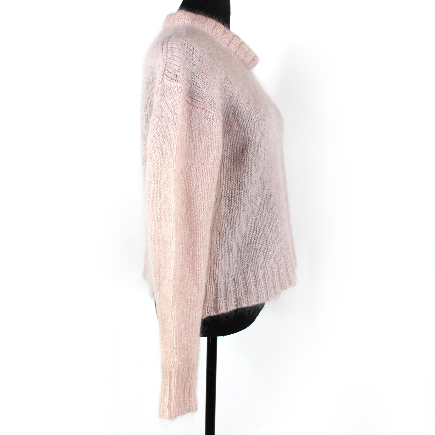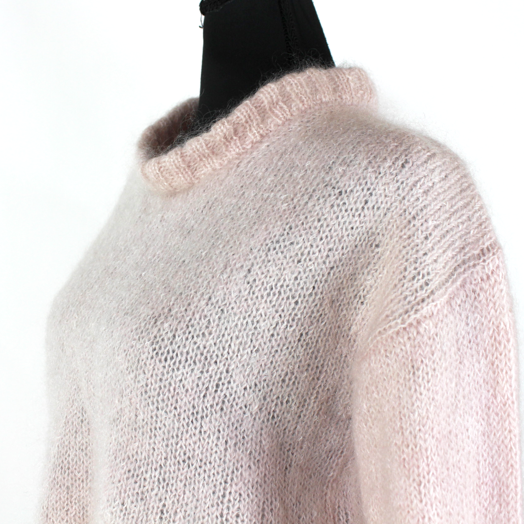 GANNI Pink Brushed Mohair Blend Logo Pullover Relaxed Fit Knit Sweater