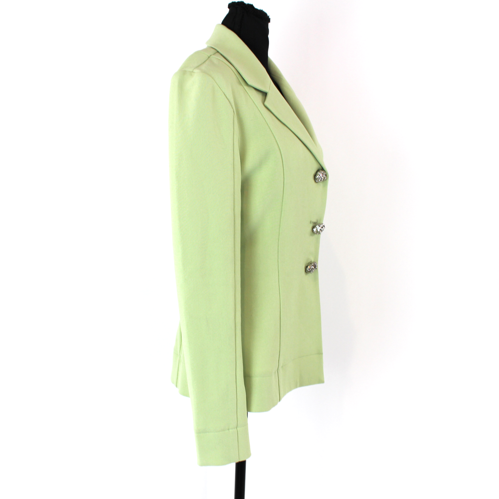GANNI Lime Green Twill Silver Chunky Nugget Button Fitted Blazer Jacket