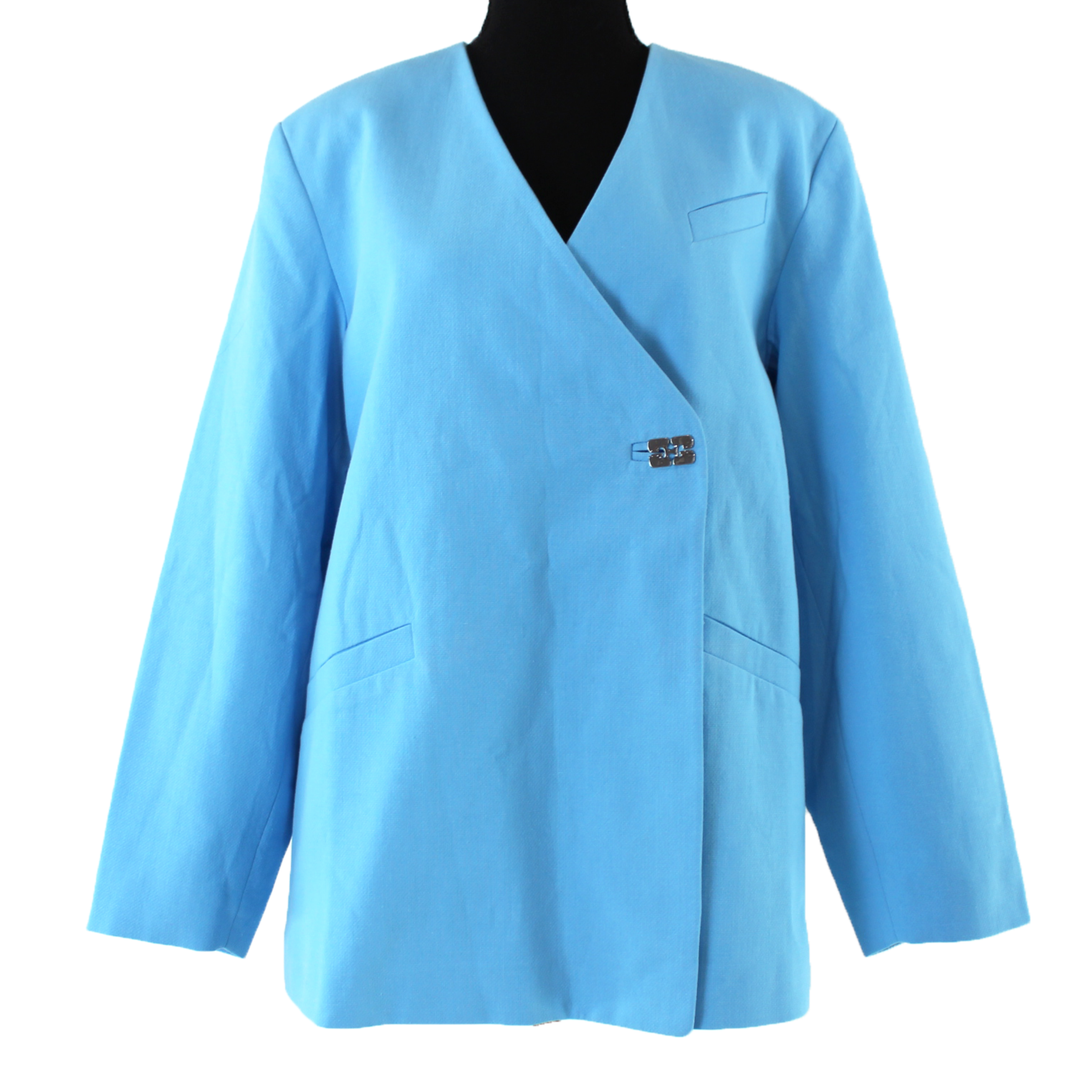 GANNI Cotton Suiting Boxy Ethereal Blue Relaxed Oversized Fit Blazer
