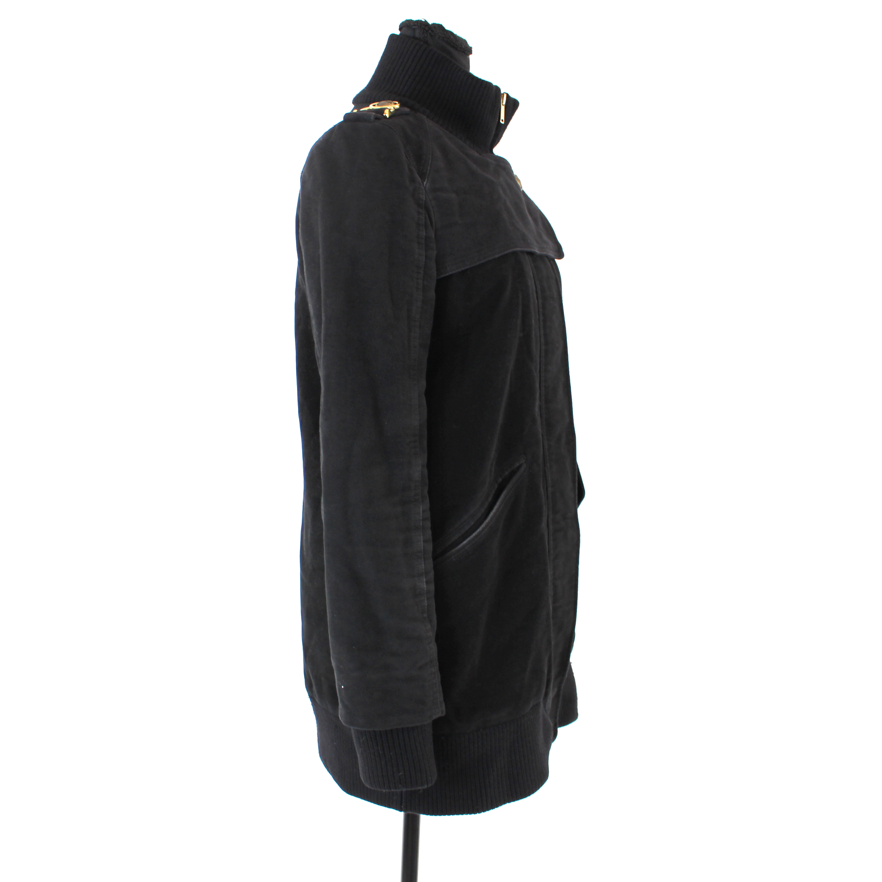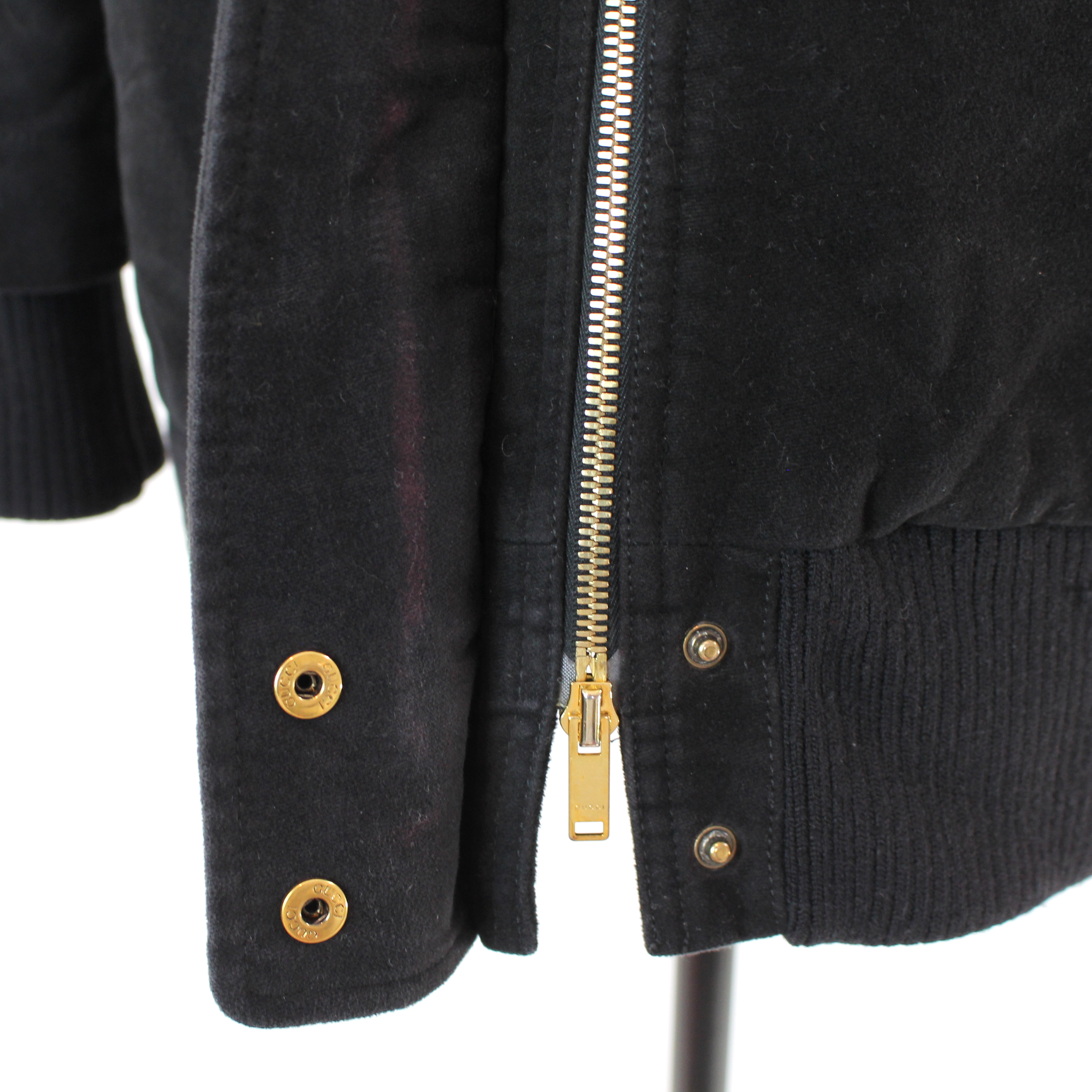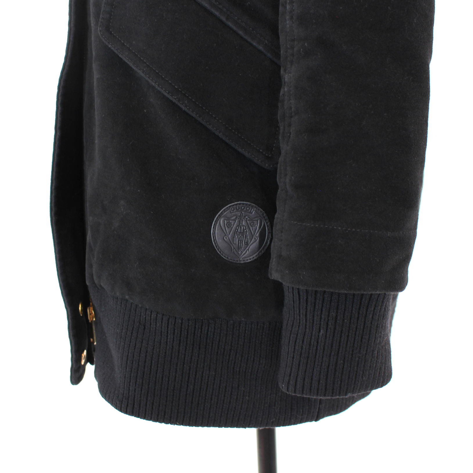 GUCCI Black Velveteen Cotton Zip-Up Ribbed Trim Military Jacket