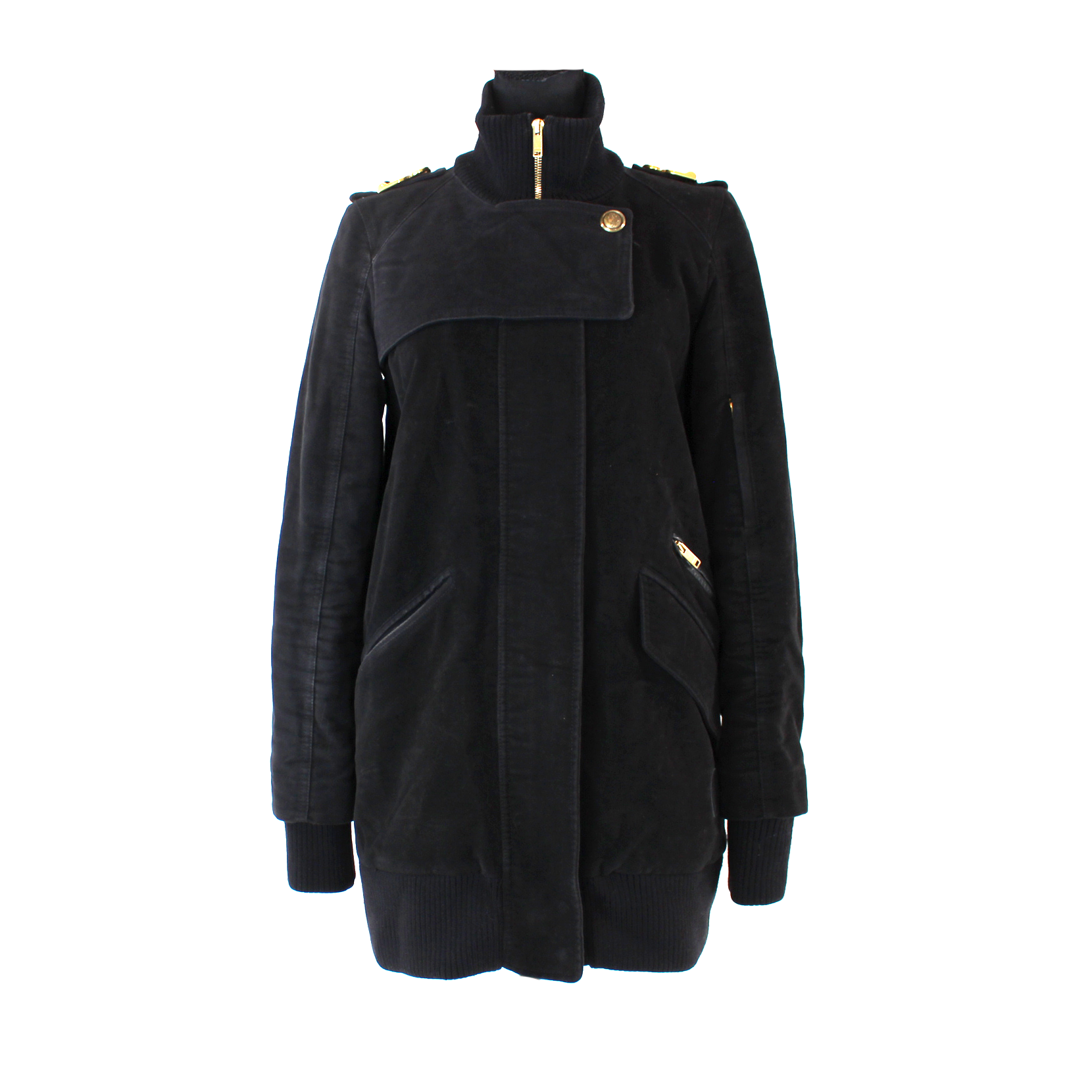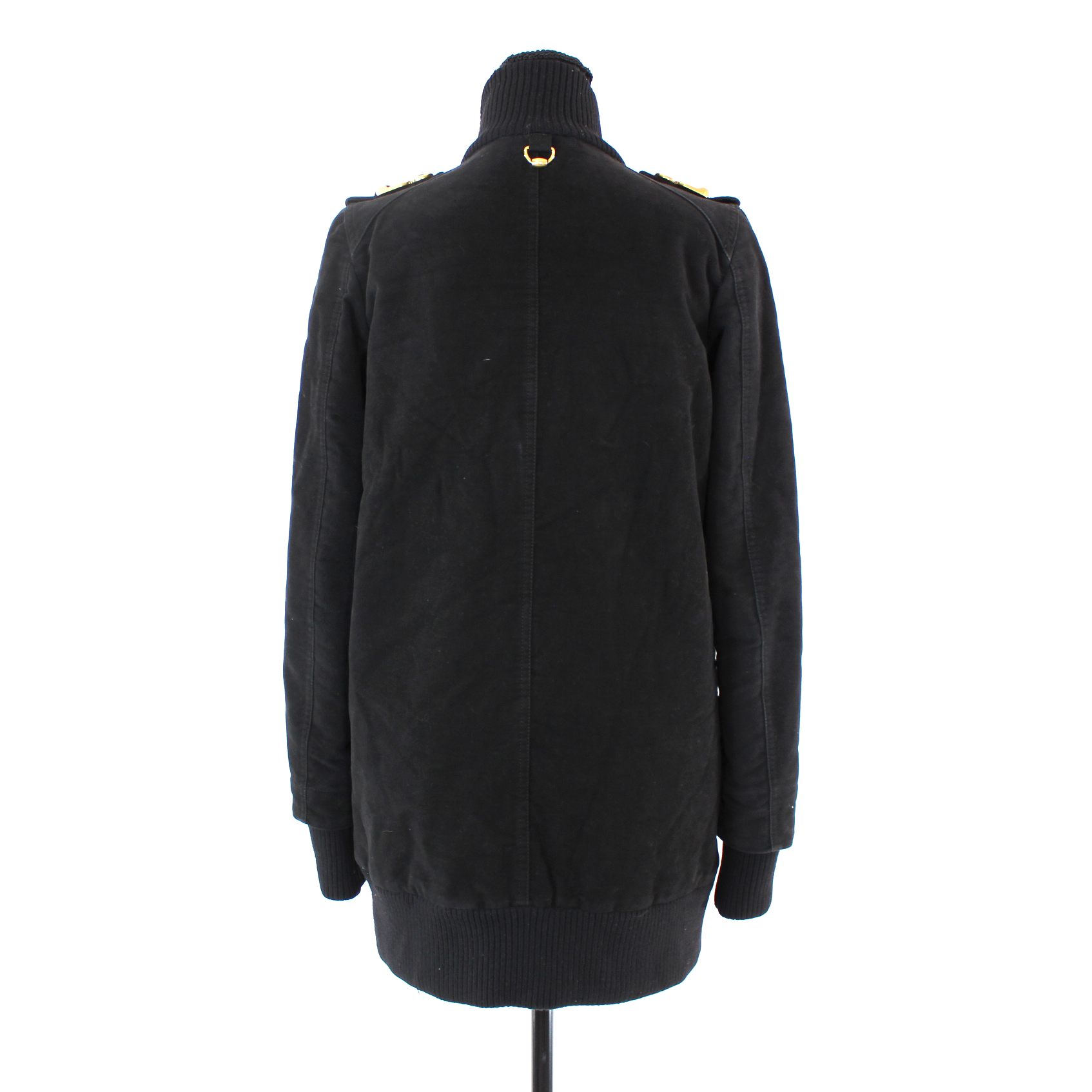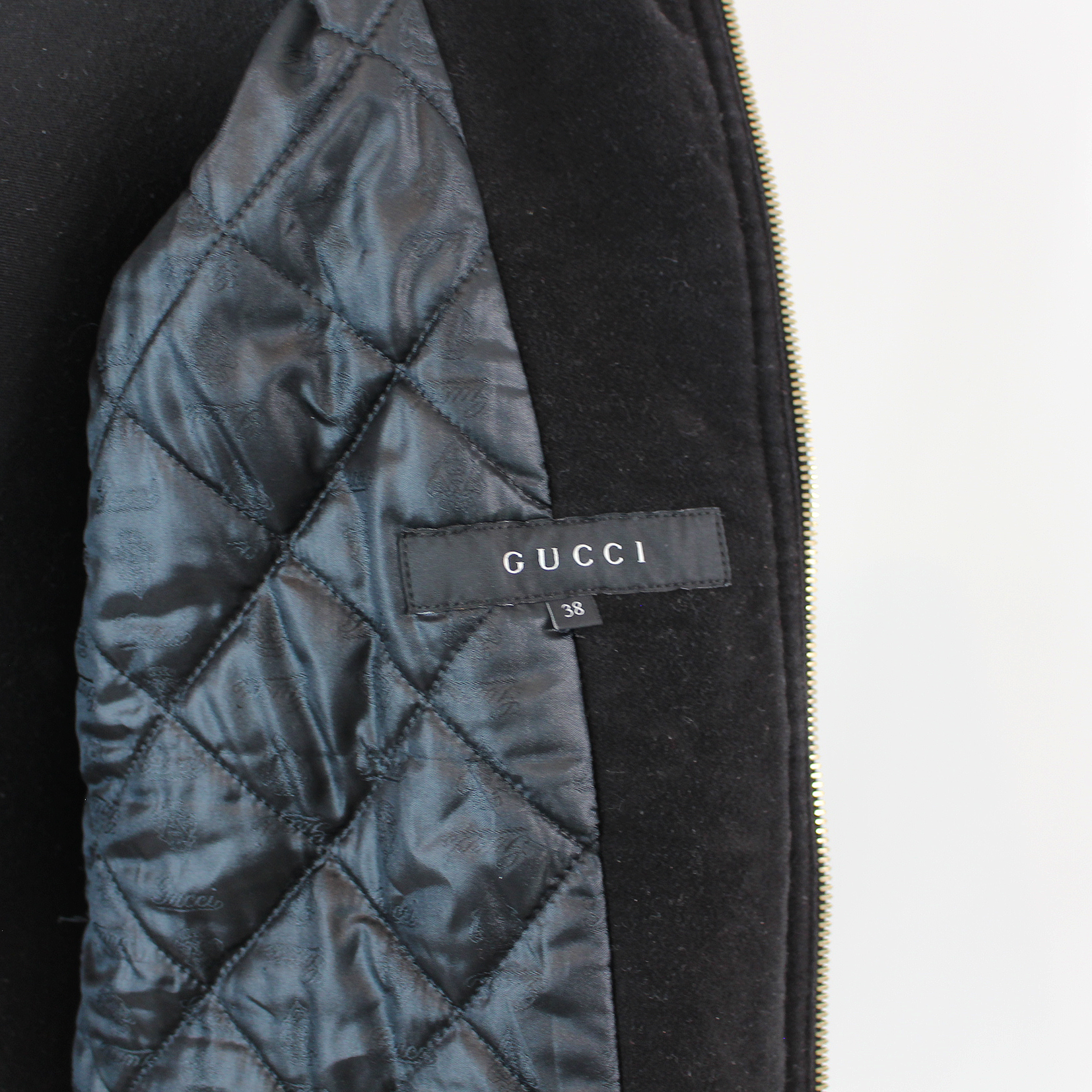 GUCCI Black Velveteen Cotton Zip-Up Ribbed Trim Military Jacket