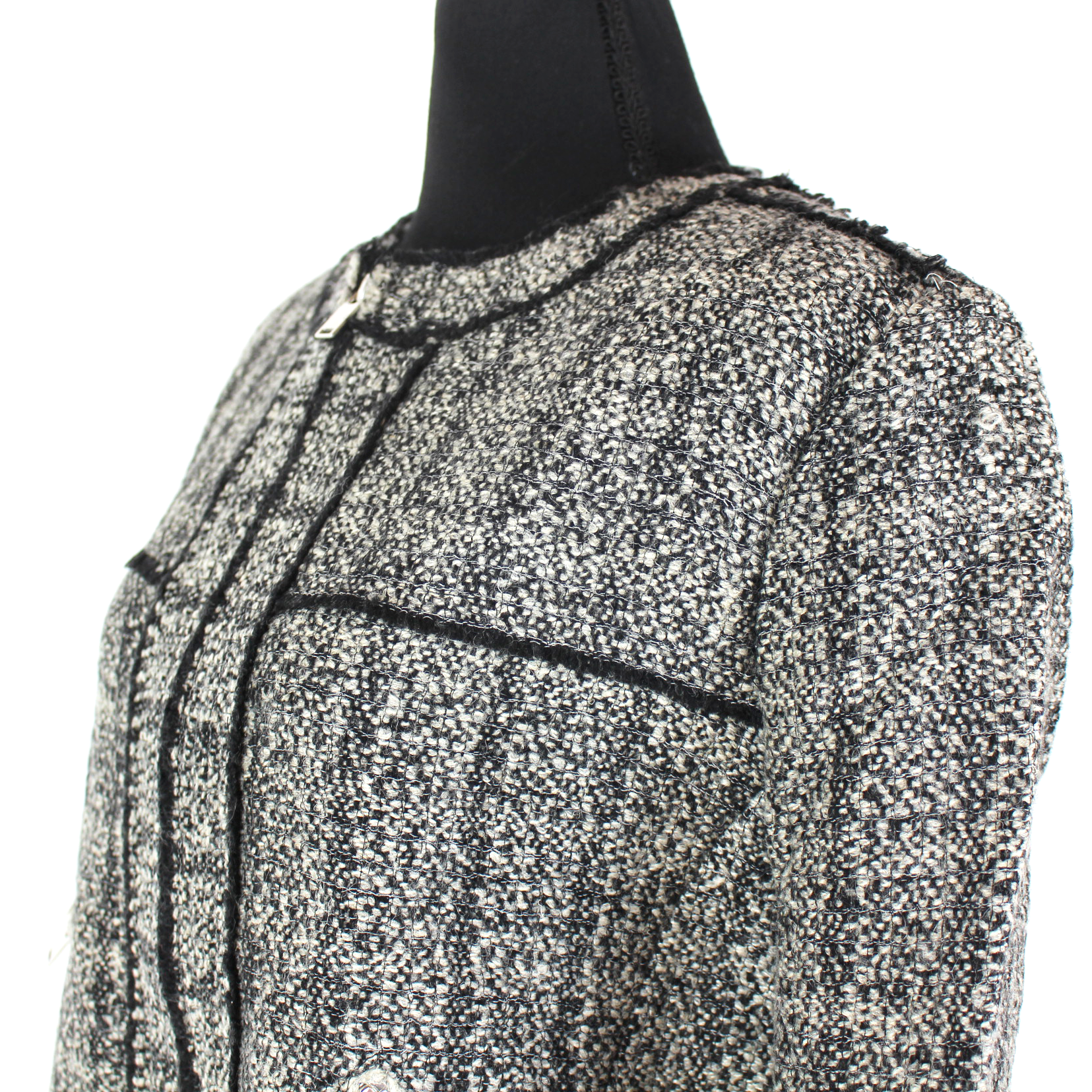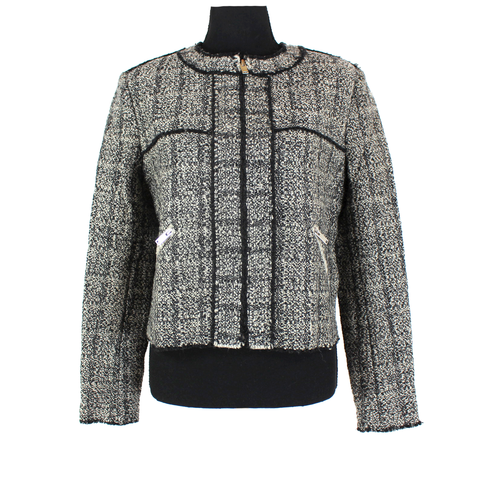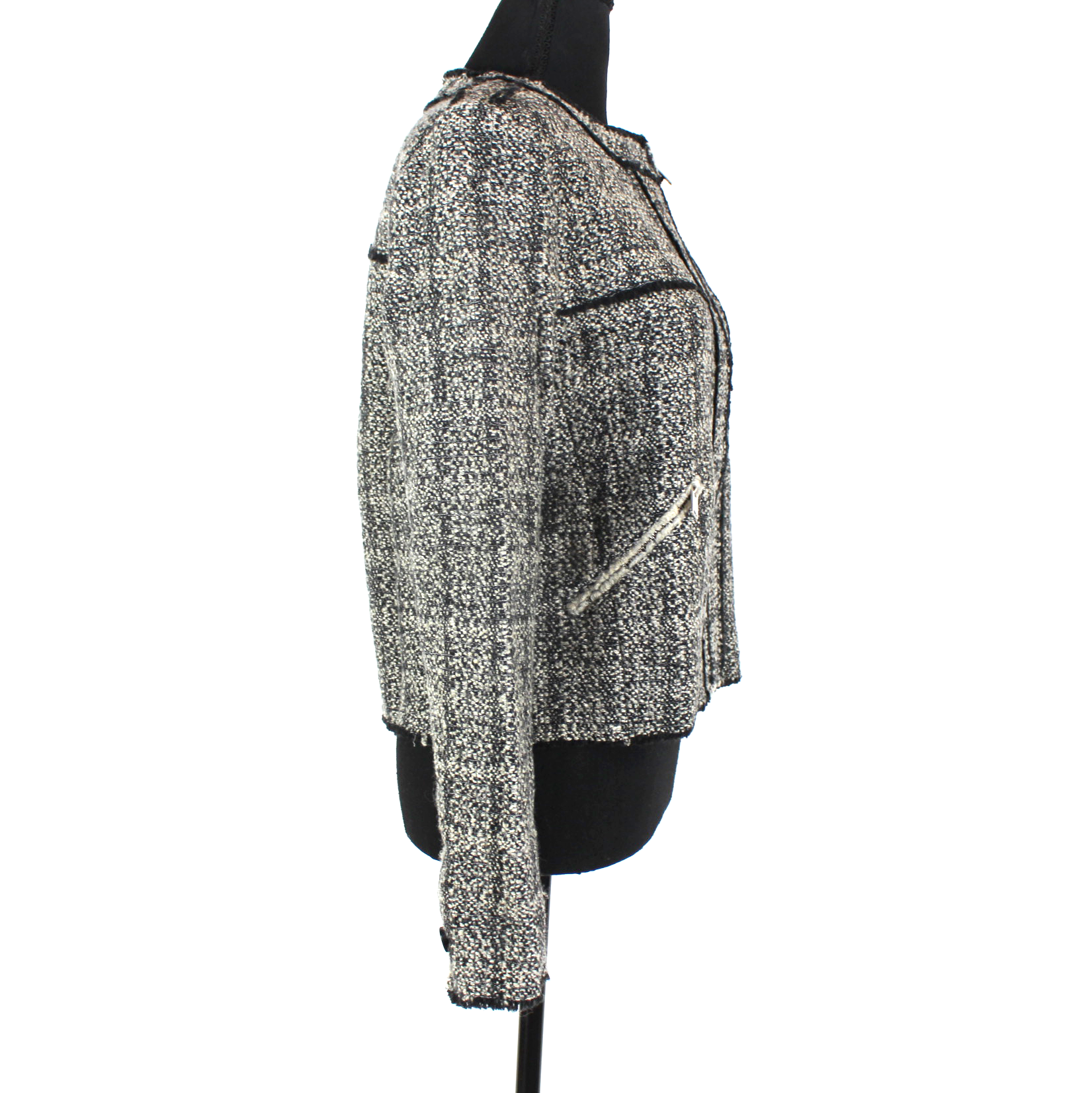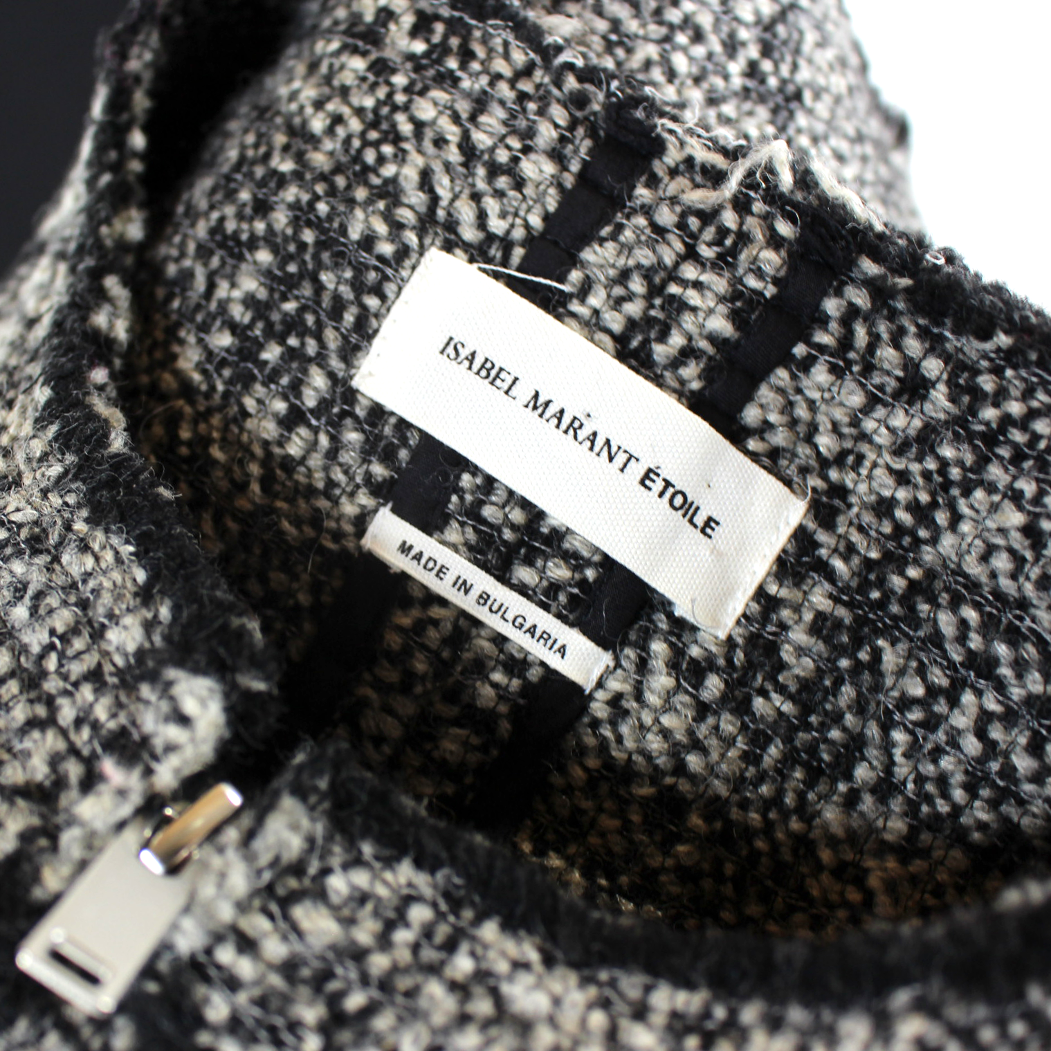 Isabel Marant Etoile Laura Black Grey Tweed Boucle Zip Up Jacket Blazer