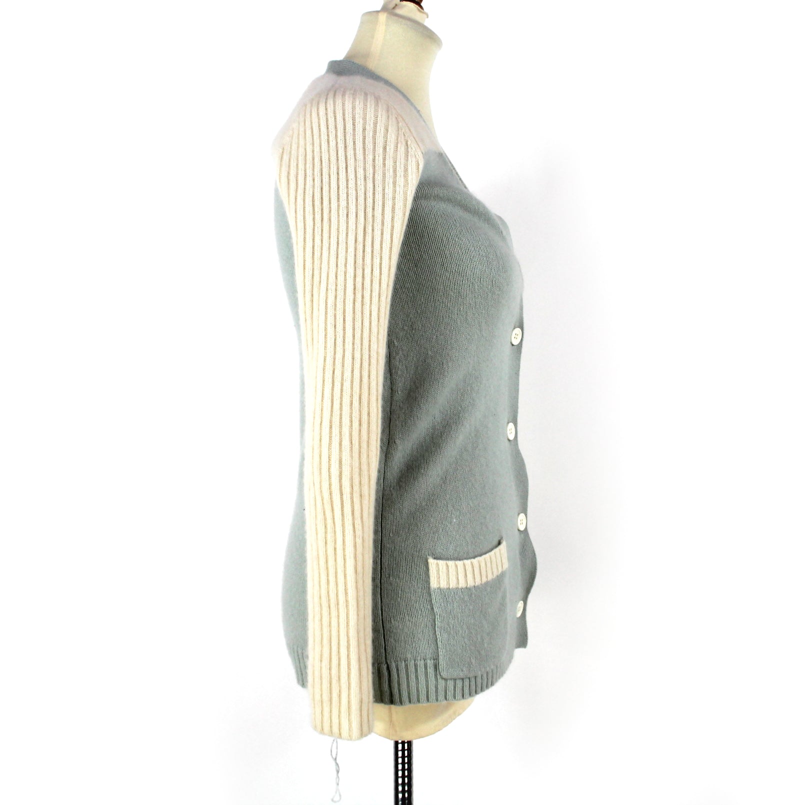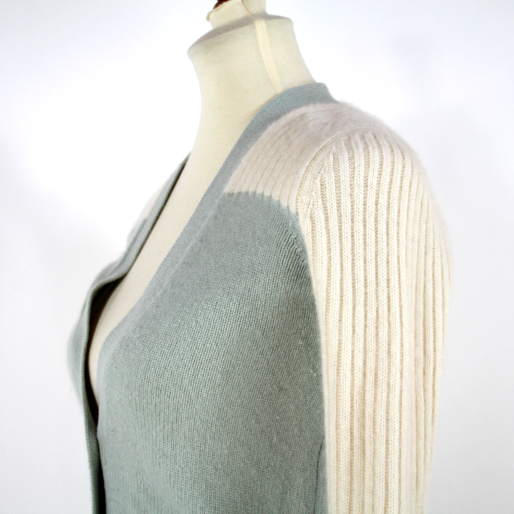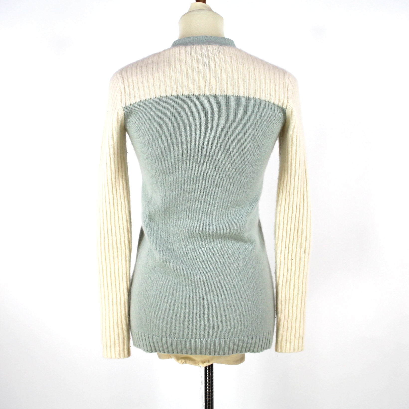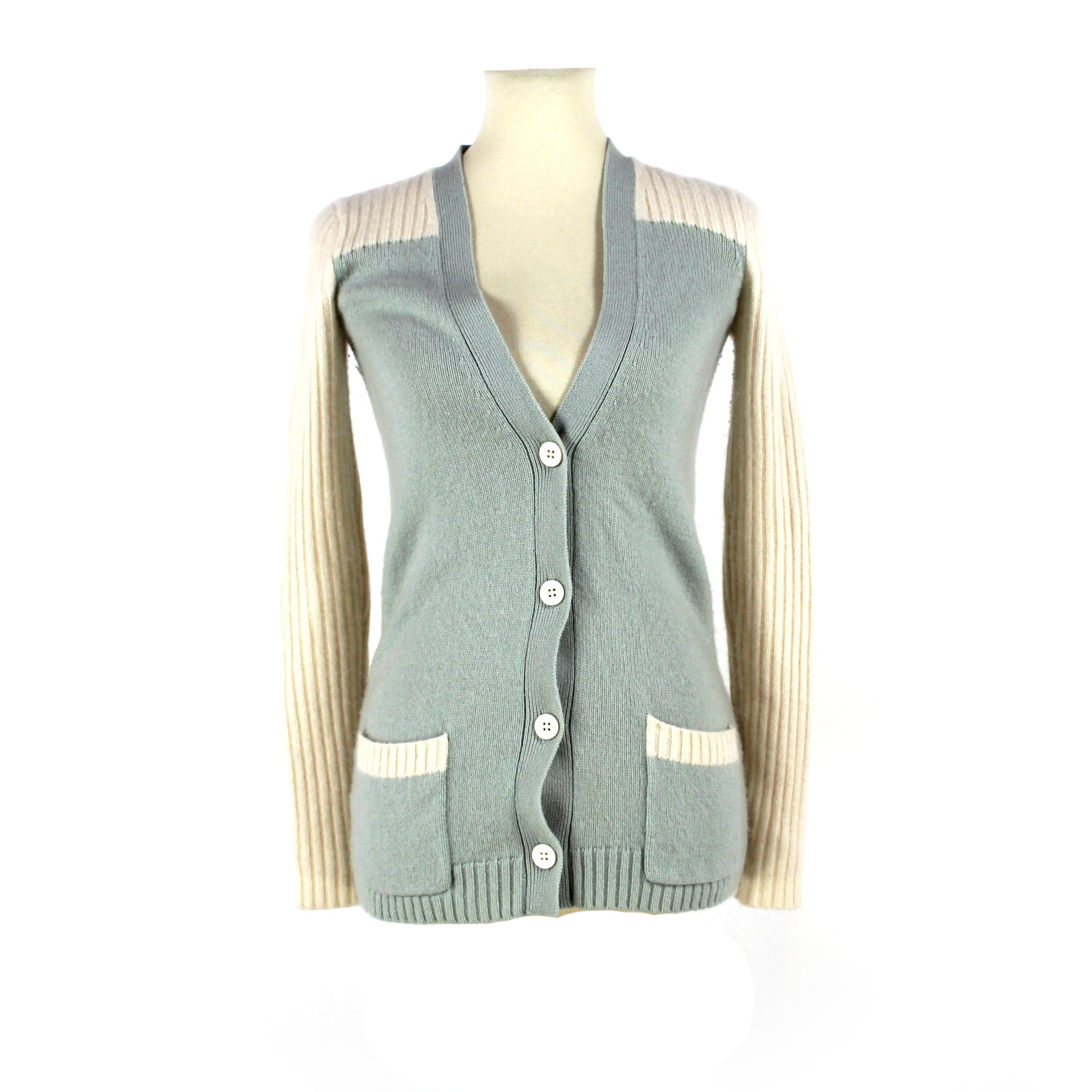 Isabel Marant Cashmere Colorblock Ivory Aqua Blue Sweater Cardigan