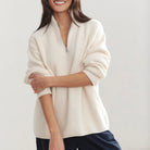 Jenni Kayne Oversized Half Zip Ivory Rib Knit Sweater