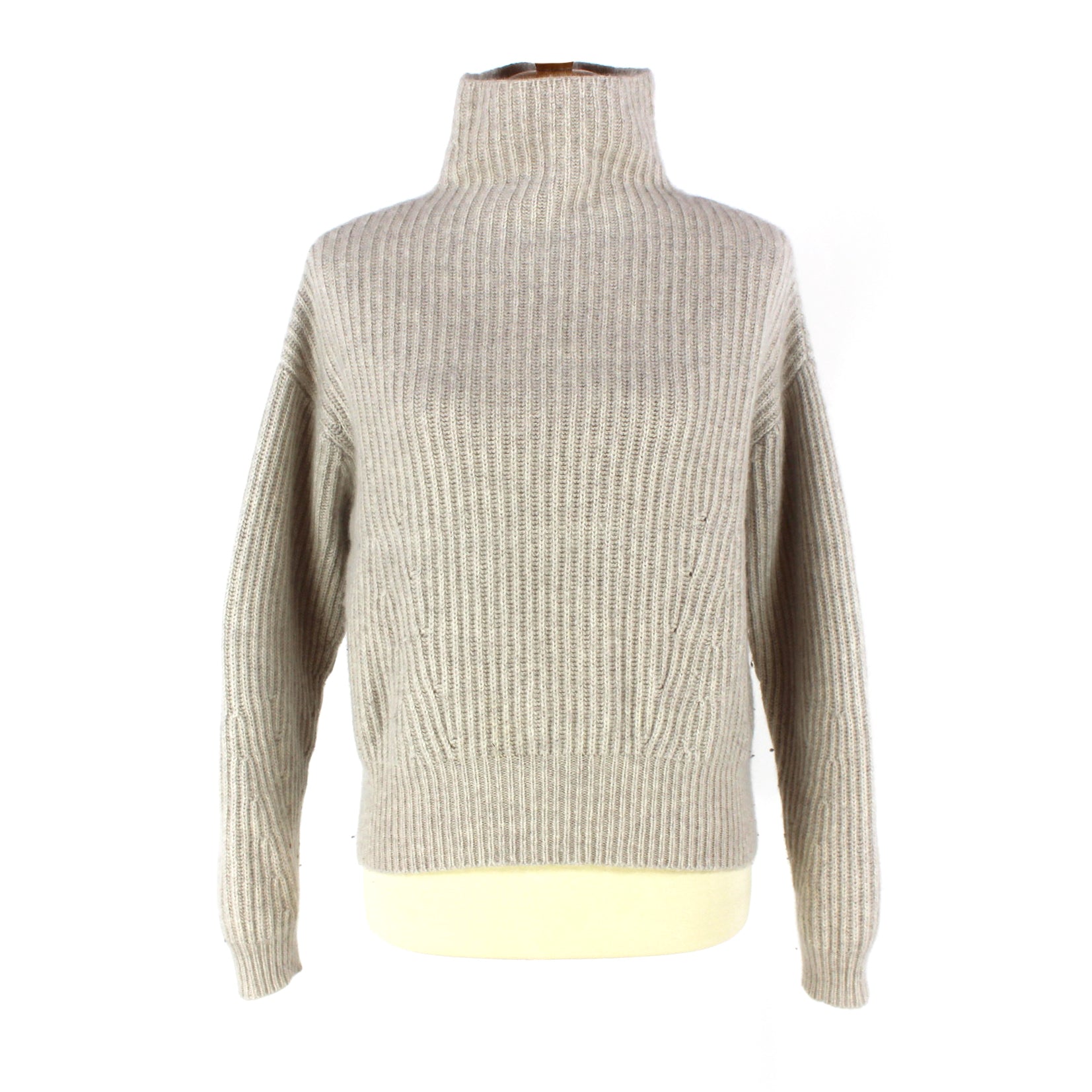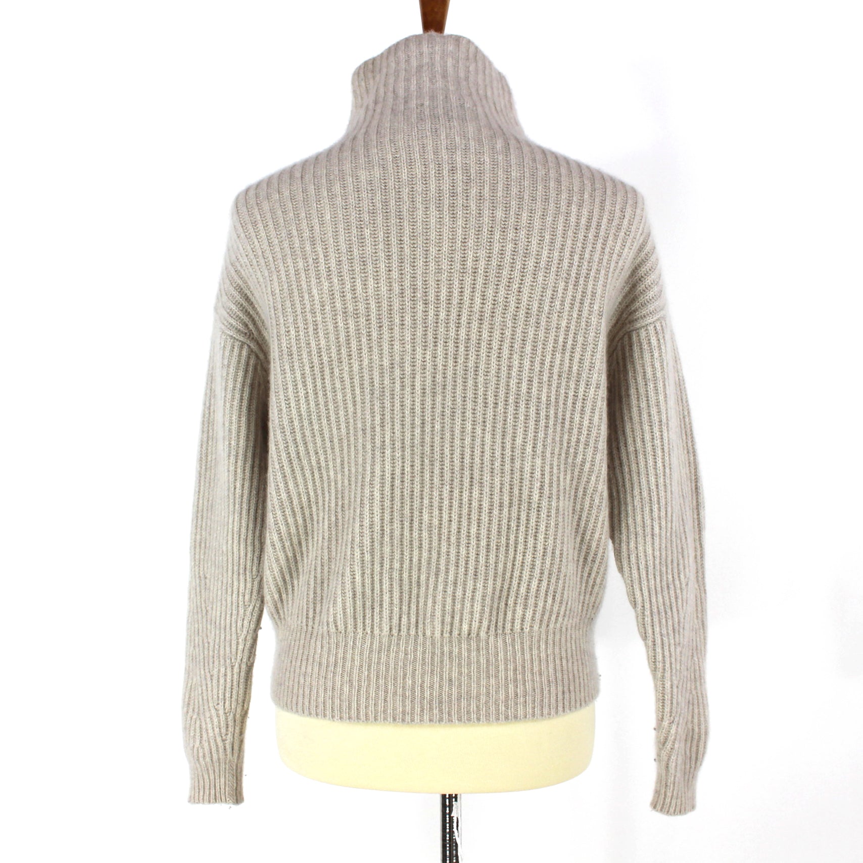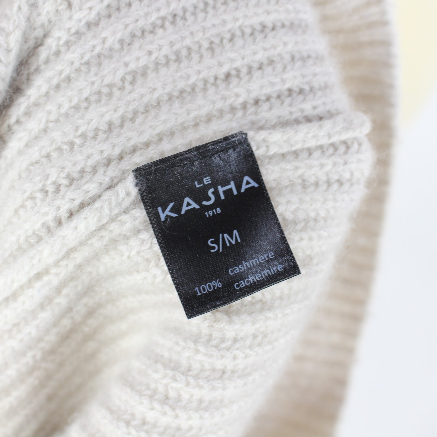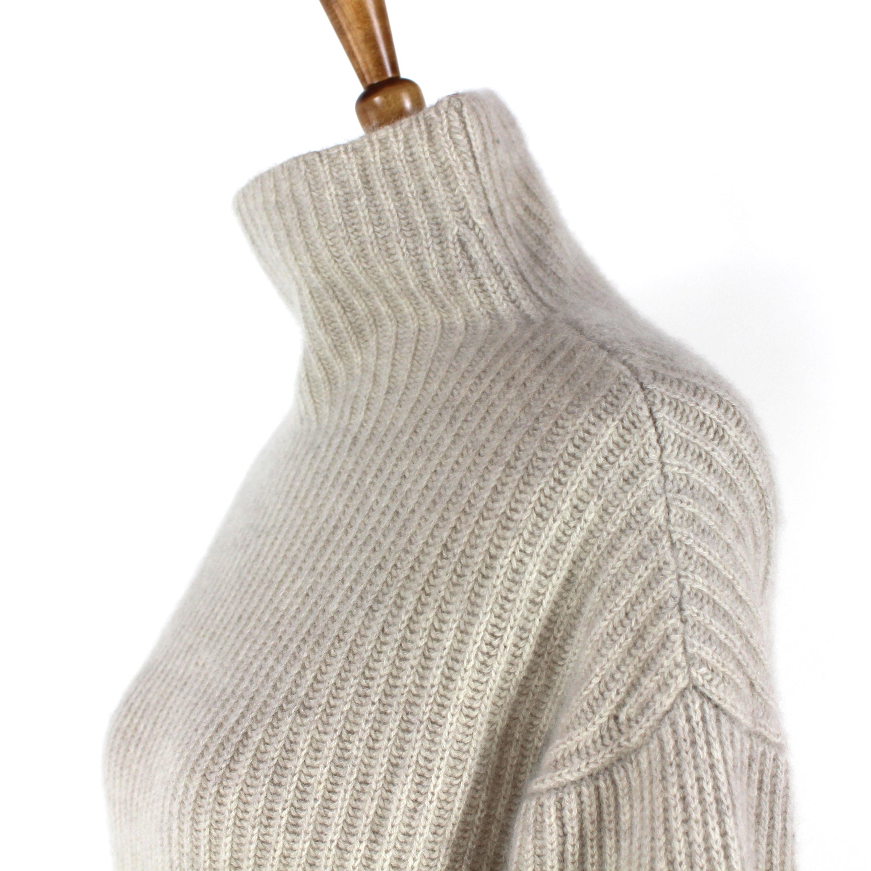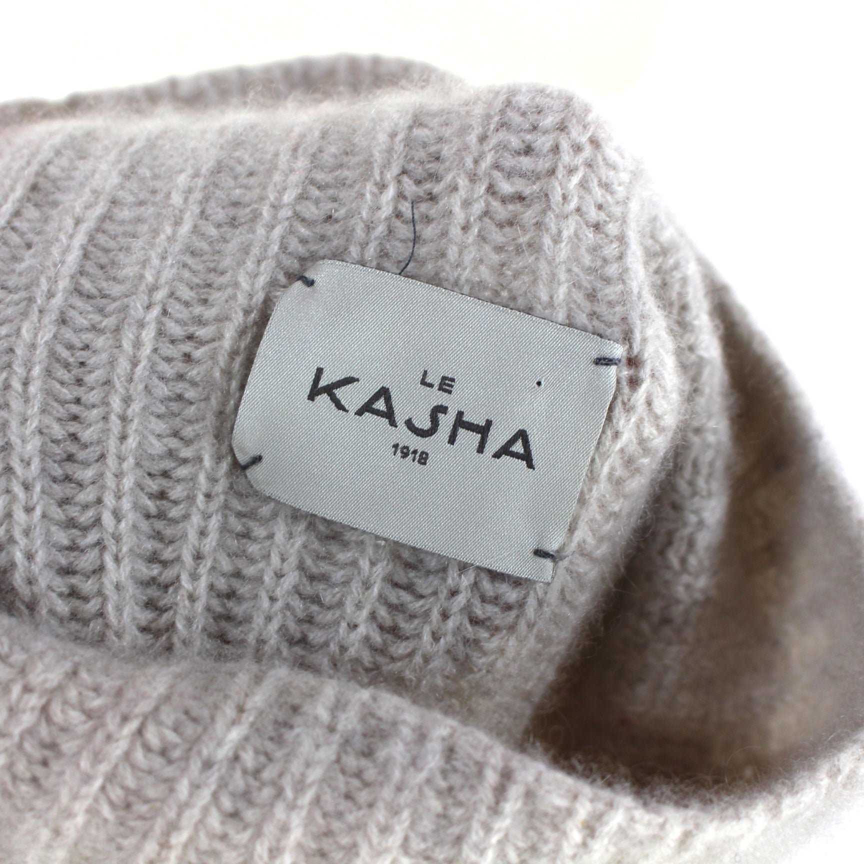 Le Kasha 1918 Heathered Beige Ribbed Cashmere Funnel Neck Sweater
