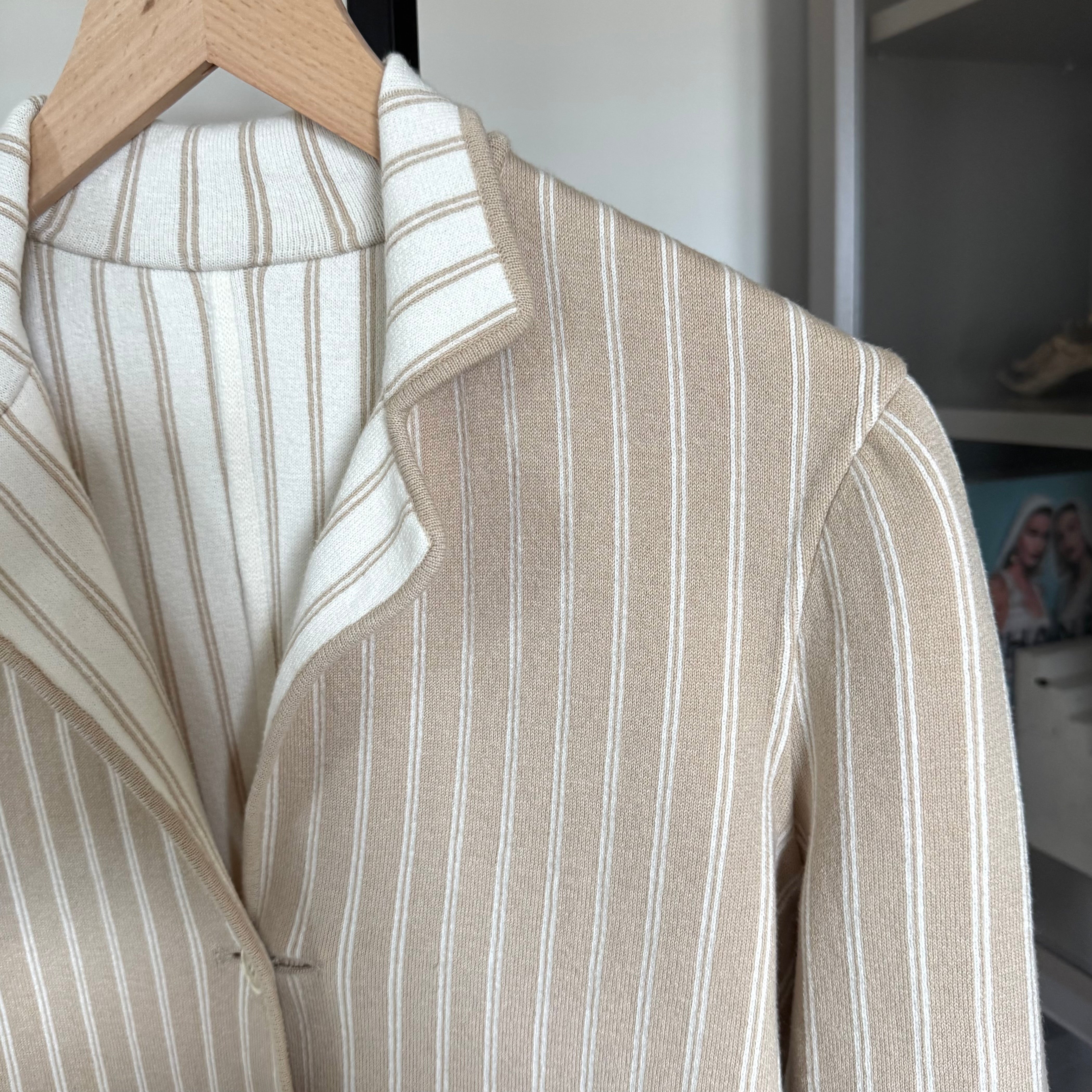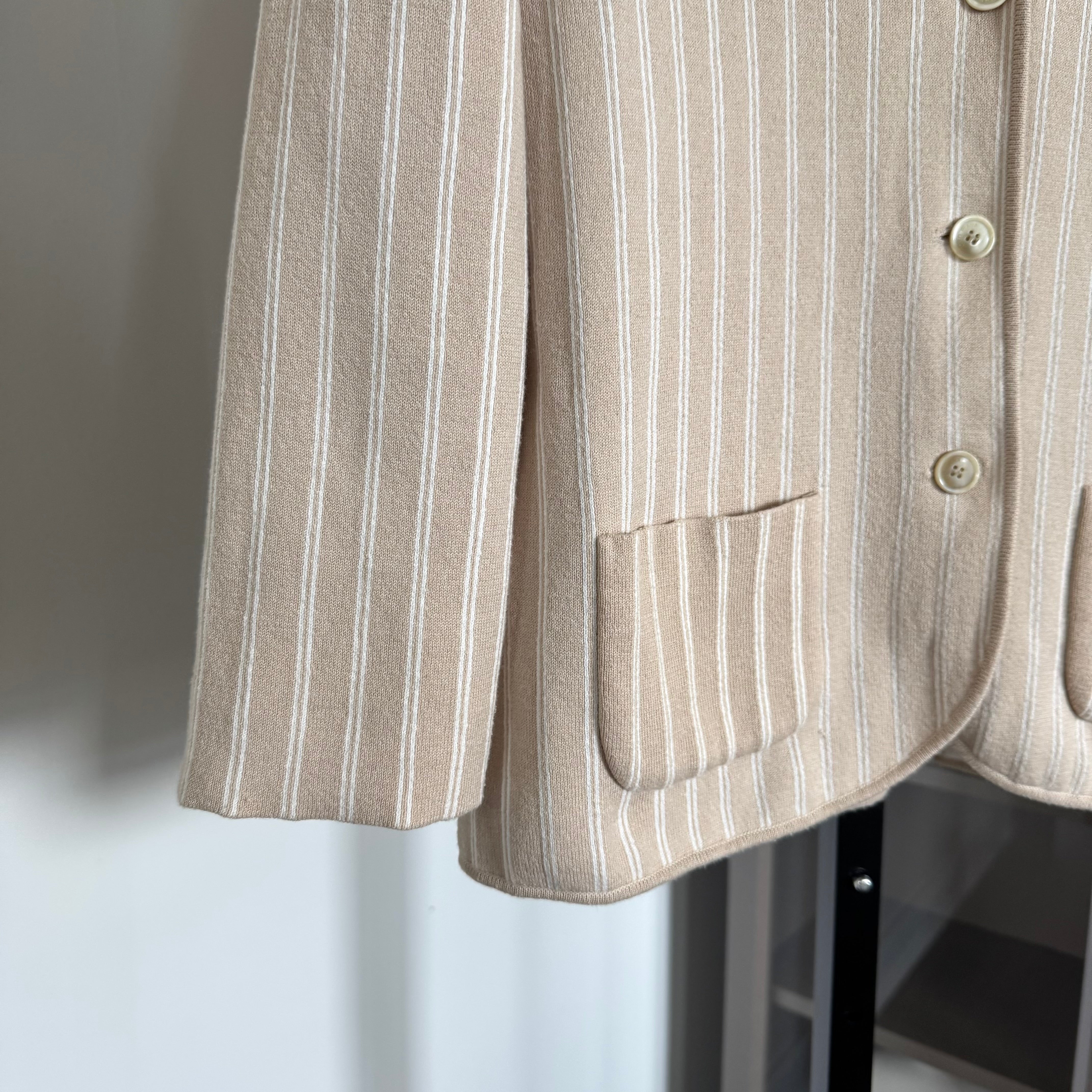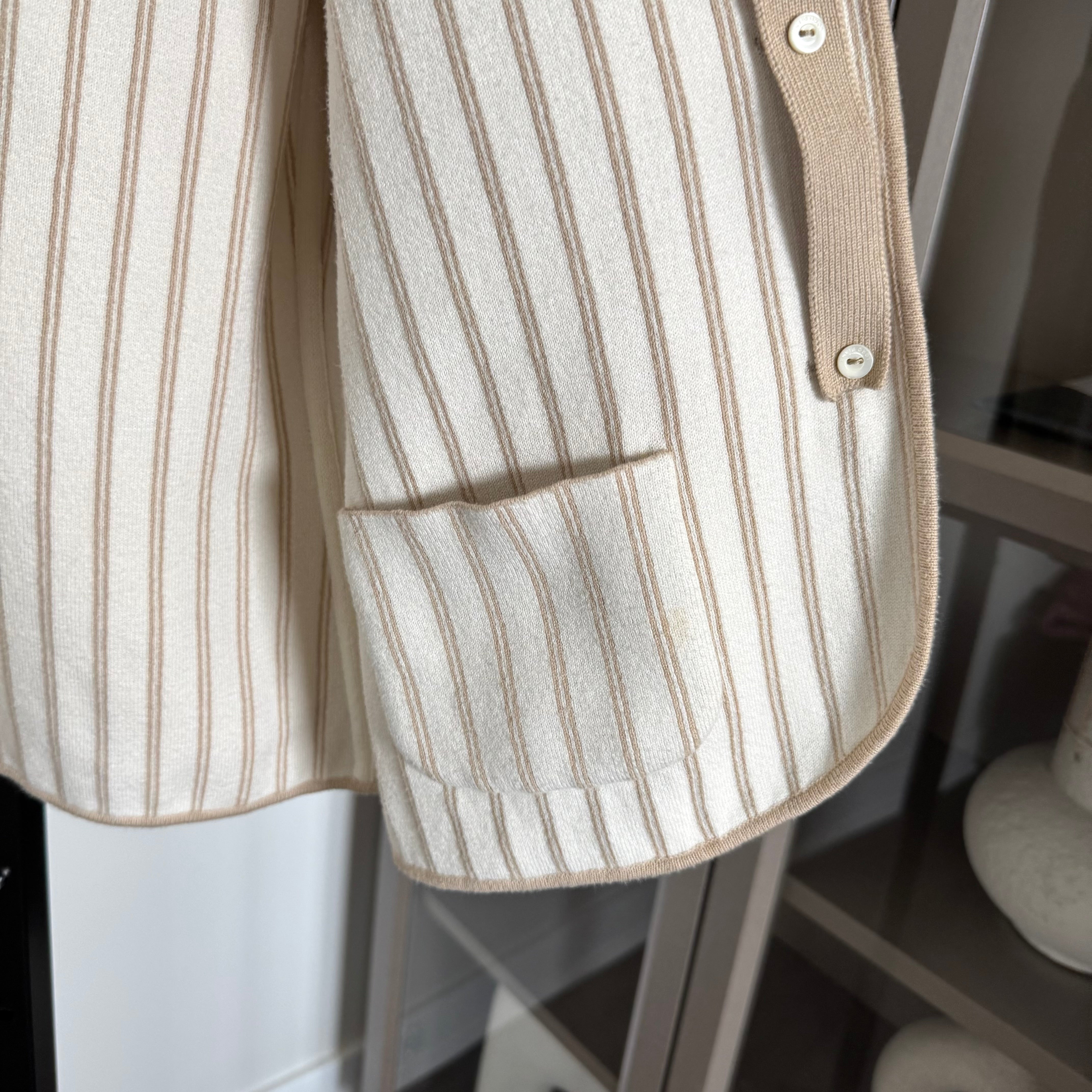 Loro Piano Reversible Tan Ivory Pinstripe Knit Button Up Jacket