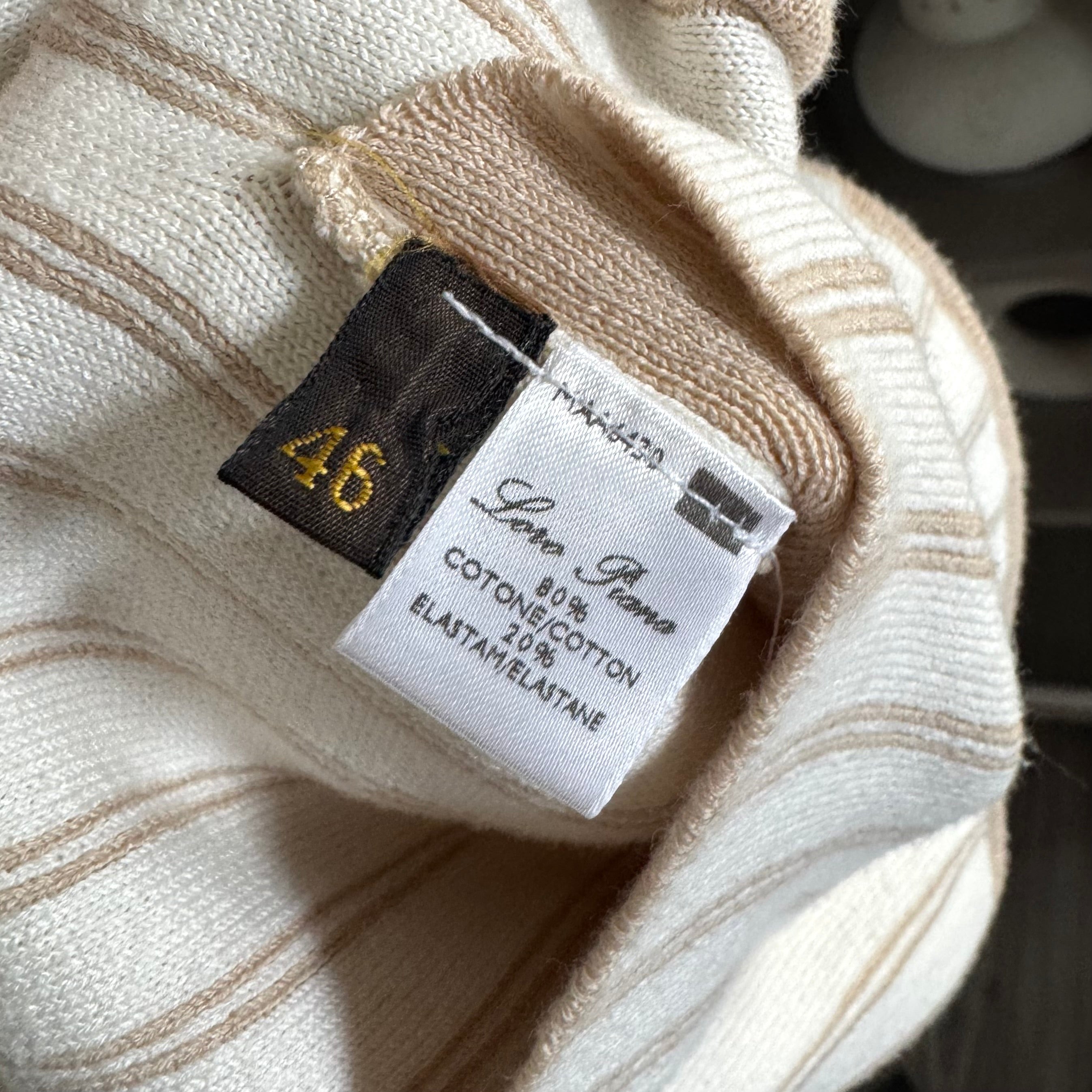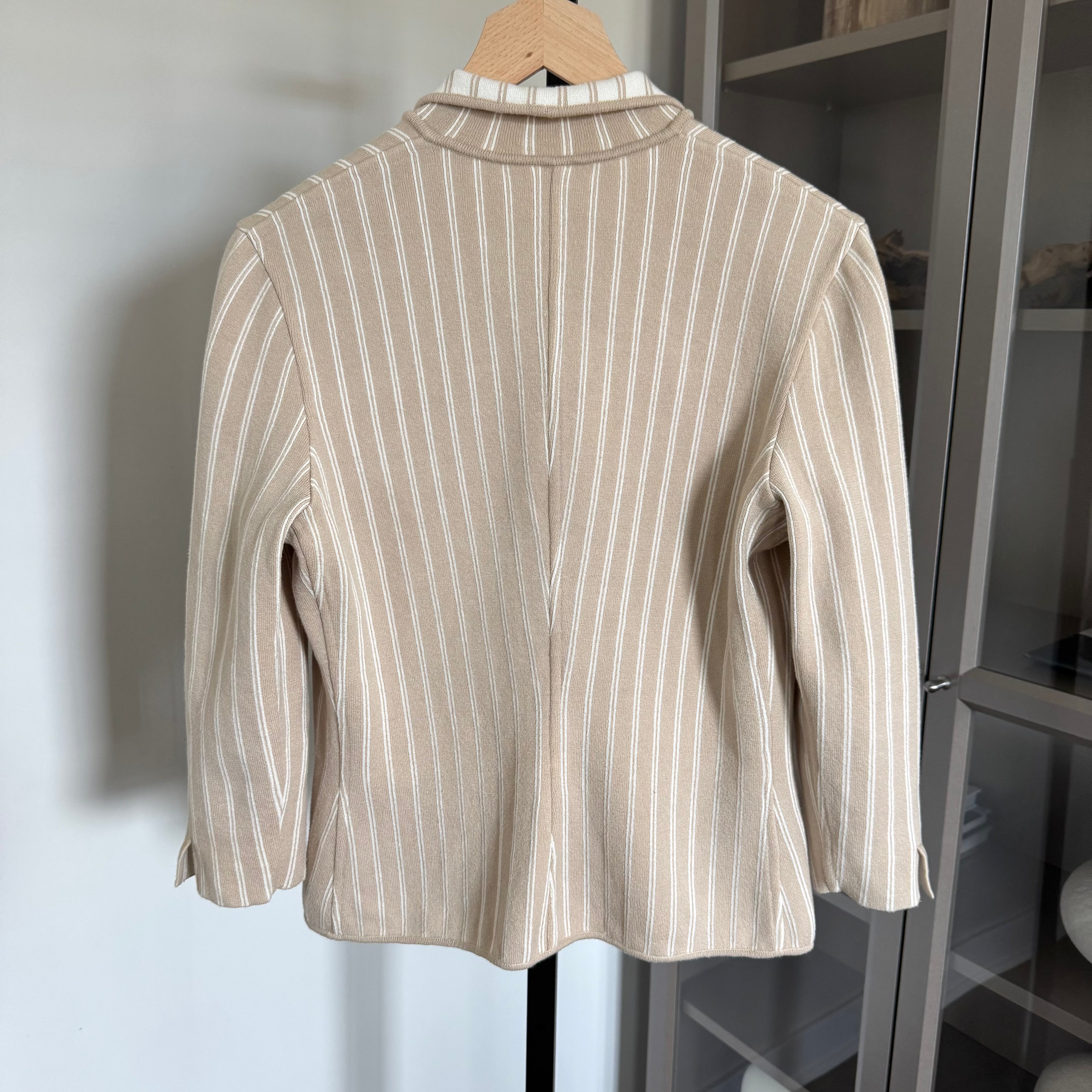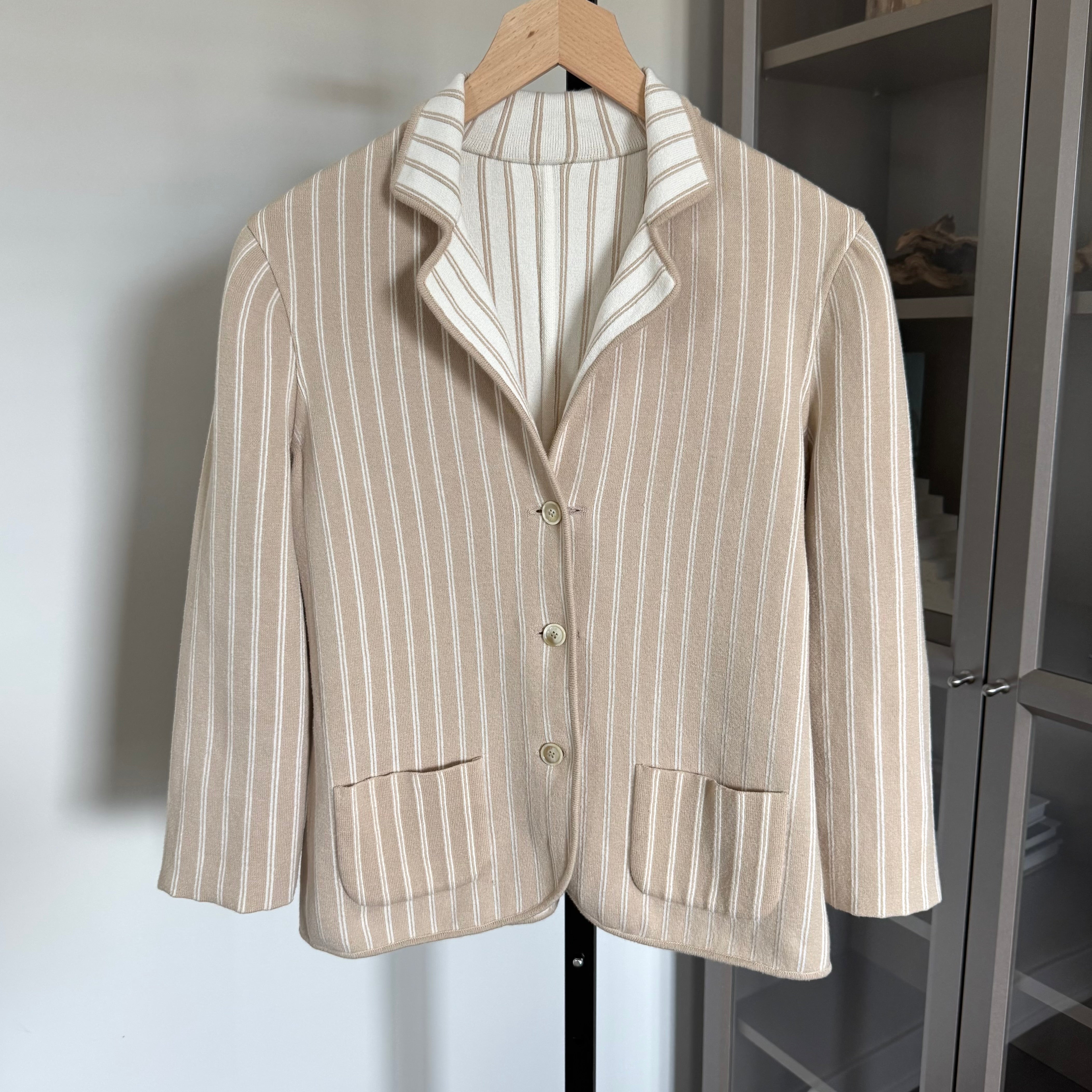 Loro Piano Reversible Tan Ivory Pinstripe Knit Button Up Jacket