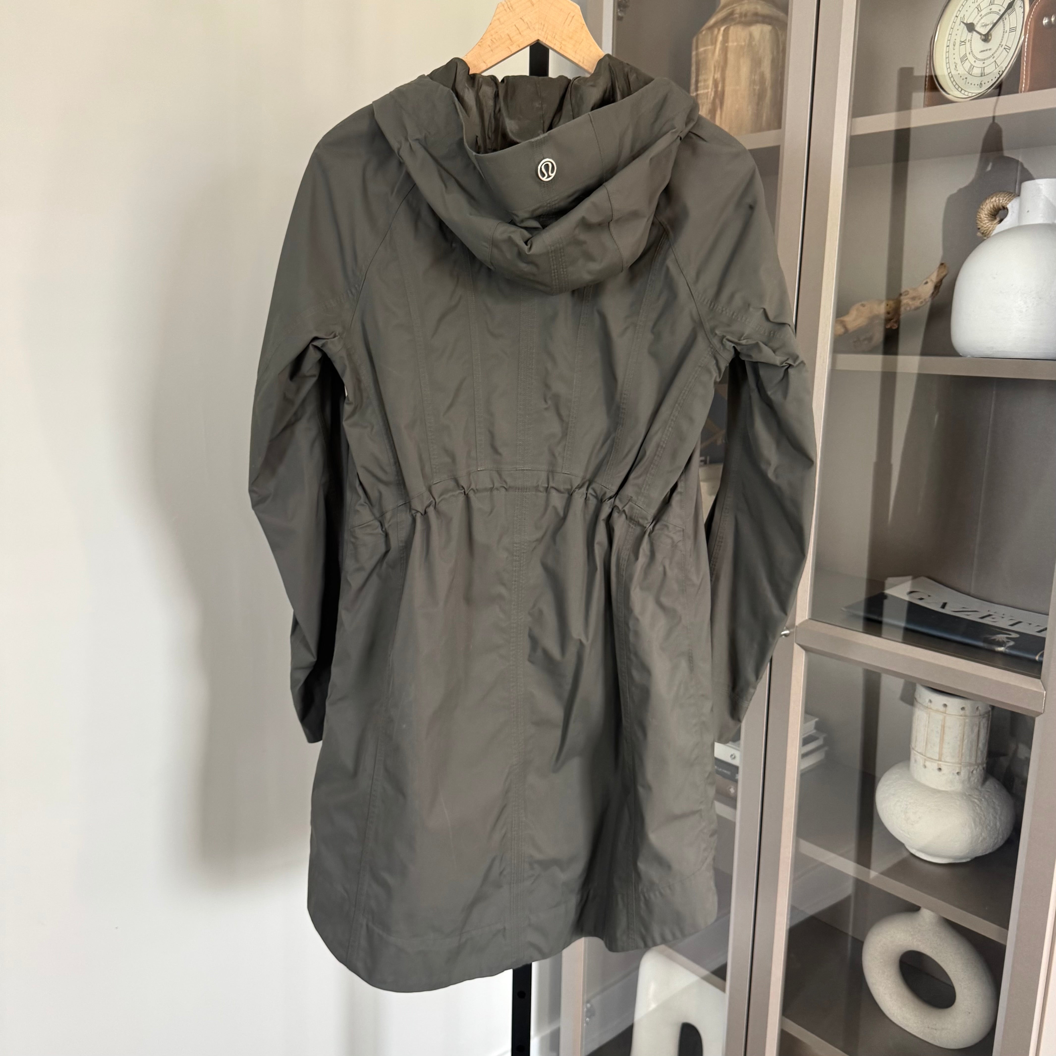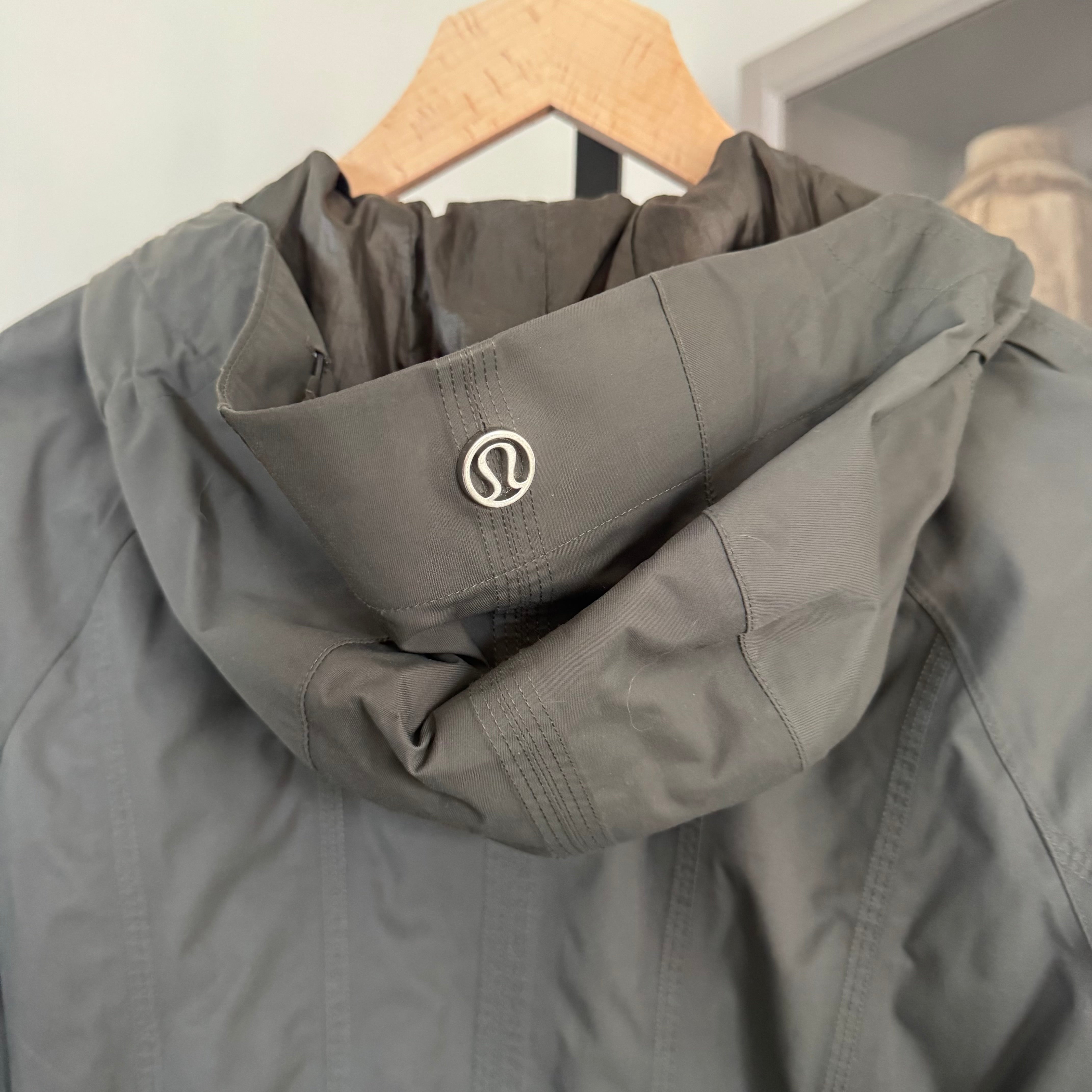 Lululemon Right As Rain Olive Green Repellent Hooded Rain Jacket