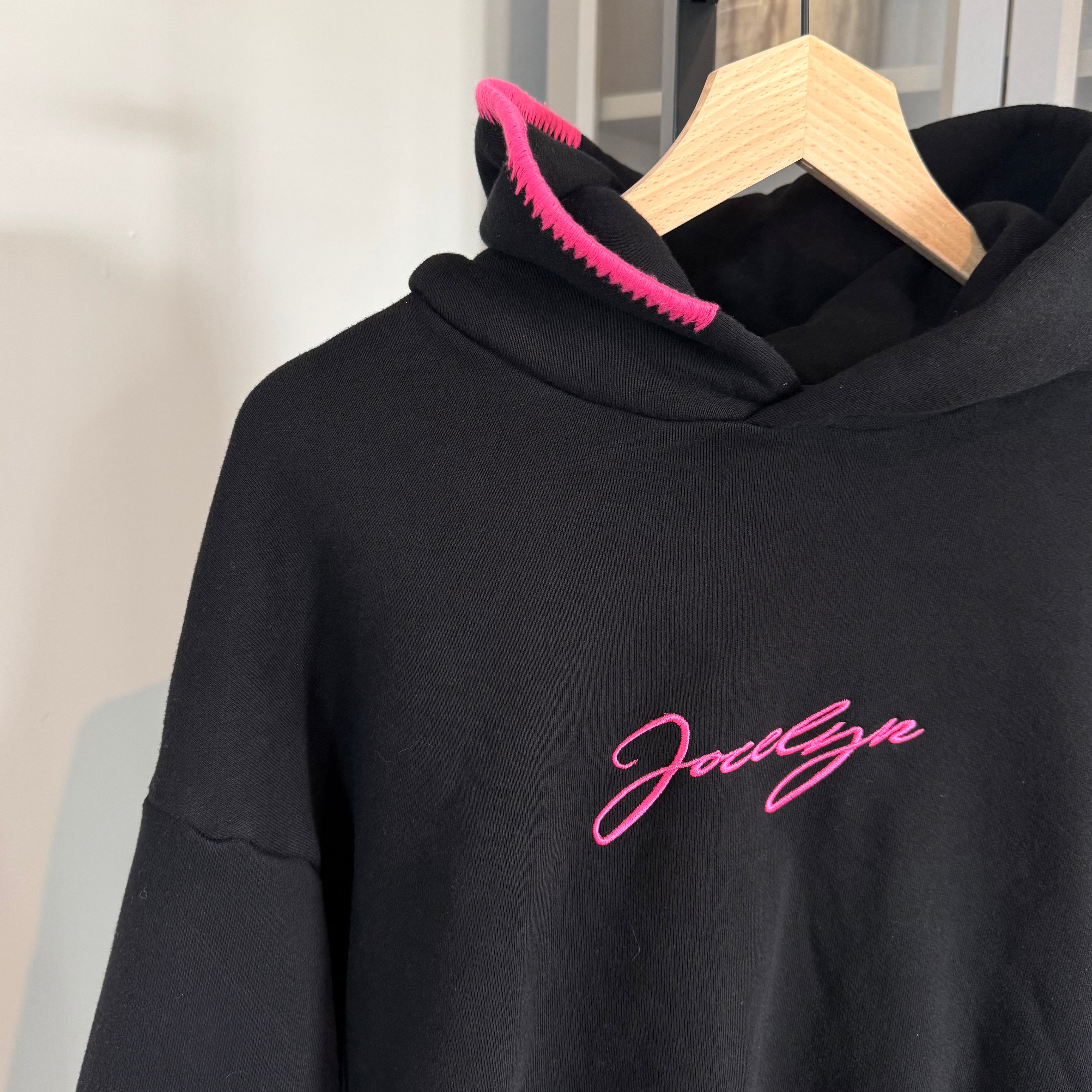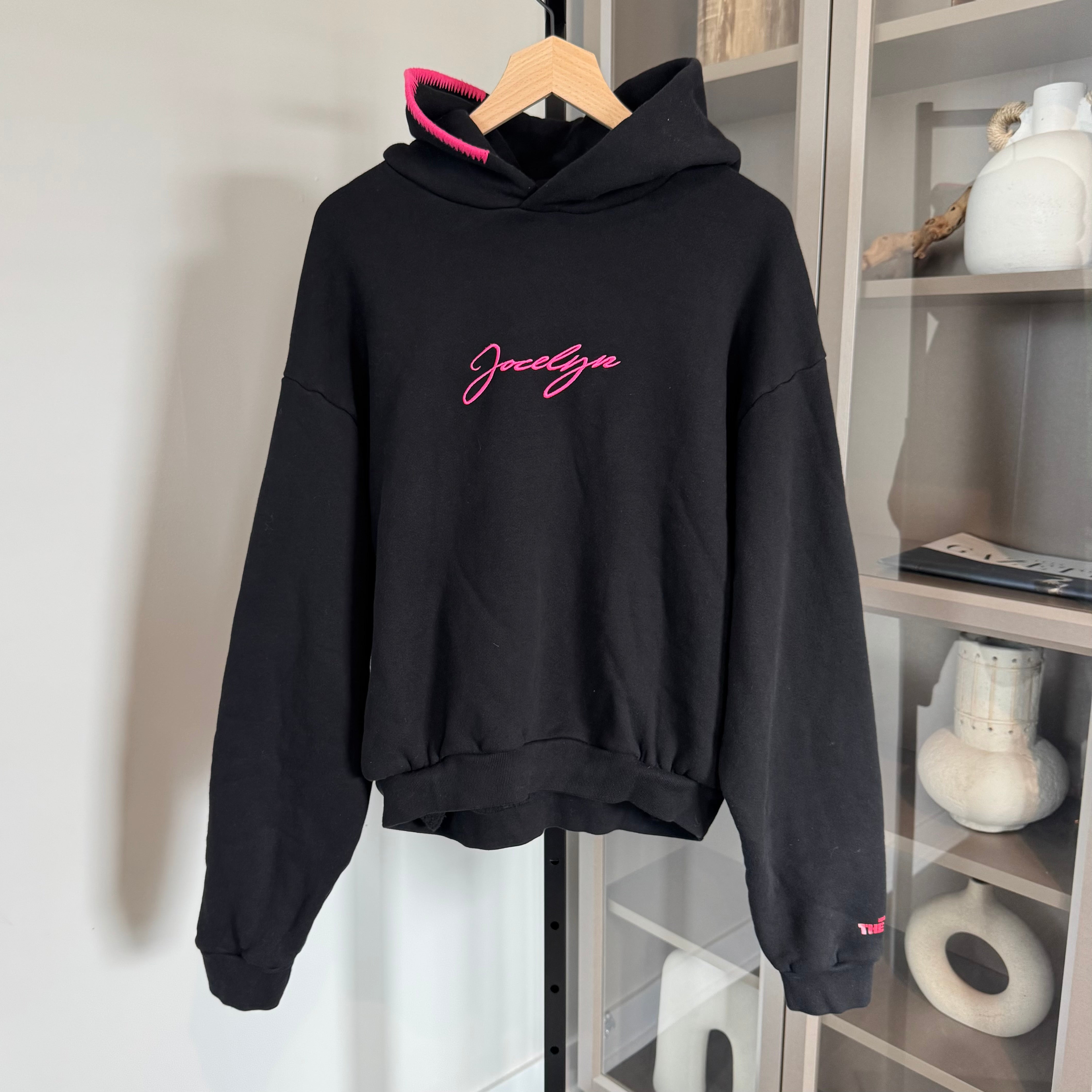 - Pink embroidered "Jocelyn" on the front