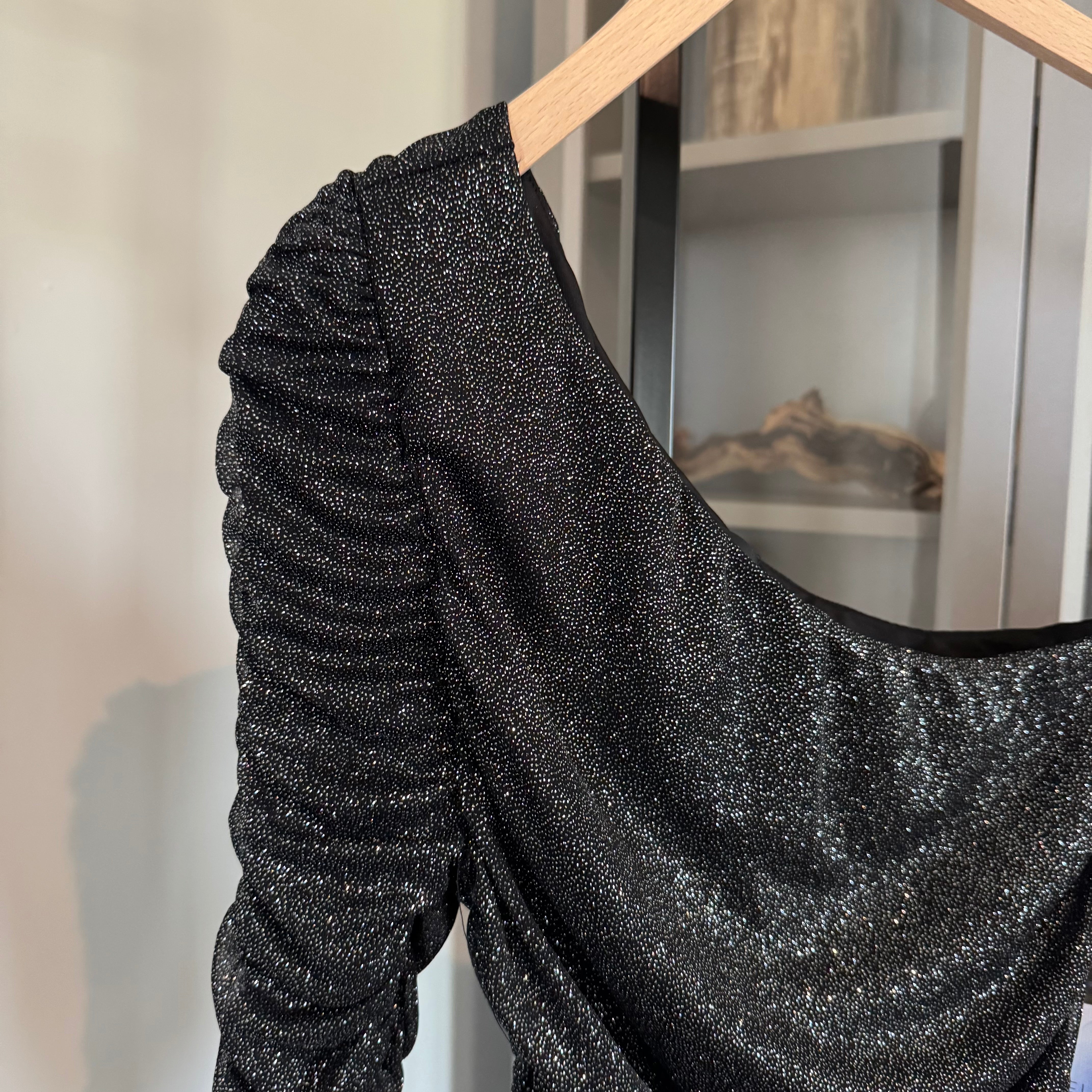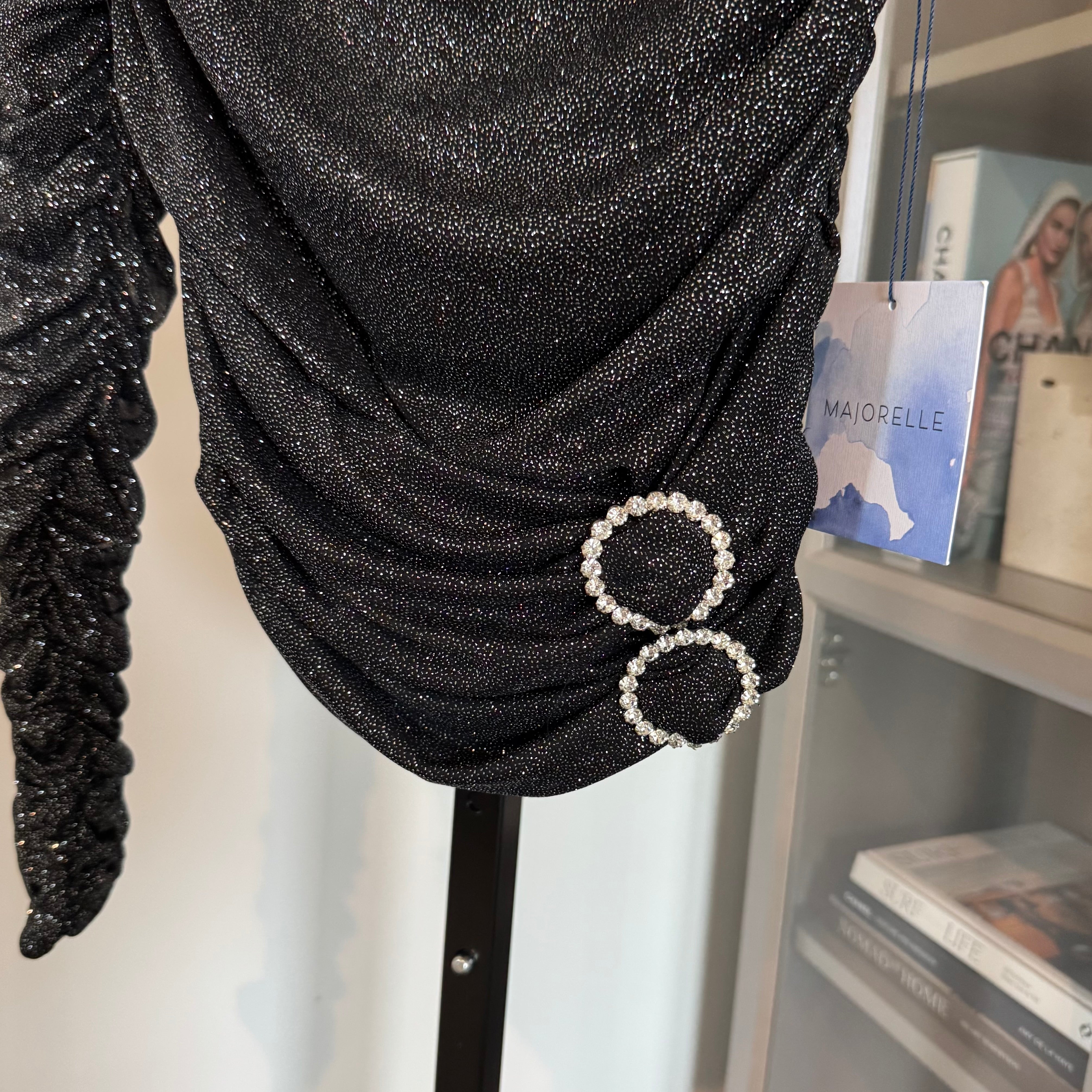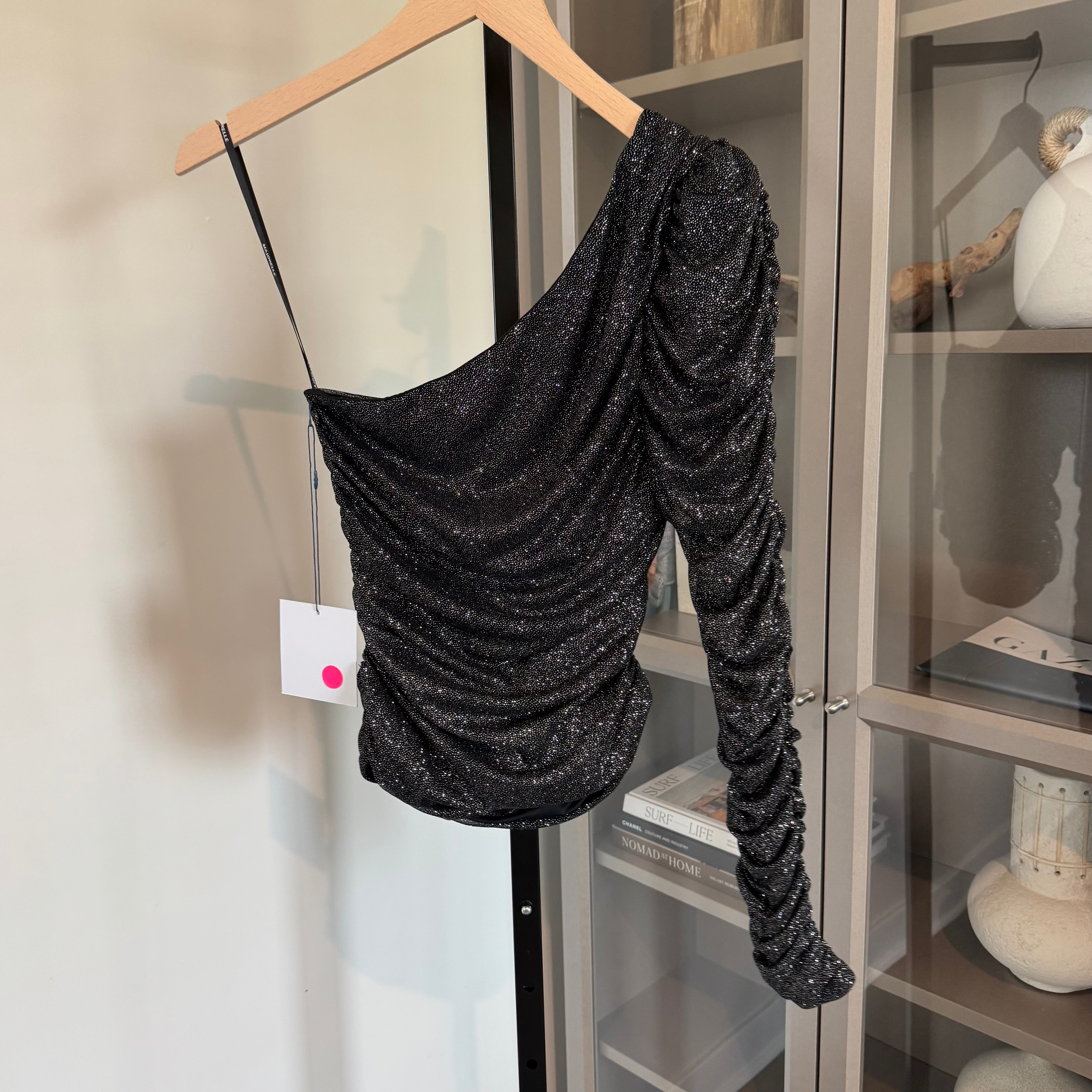 Majorette Elliana Silver Glitter Sparkle One Sleeve Rhinestone Detail Top