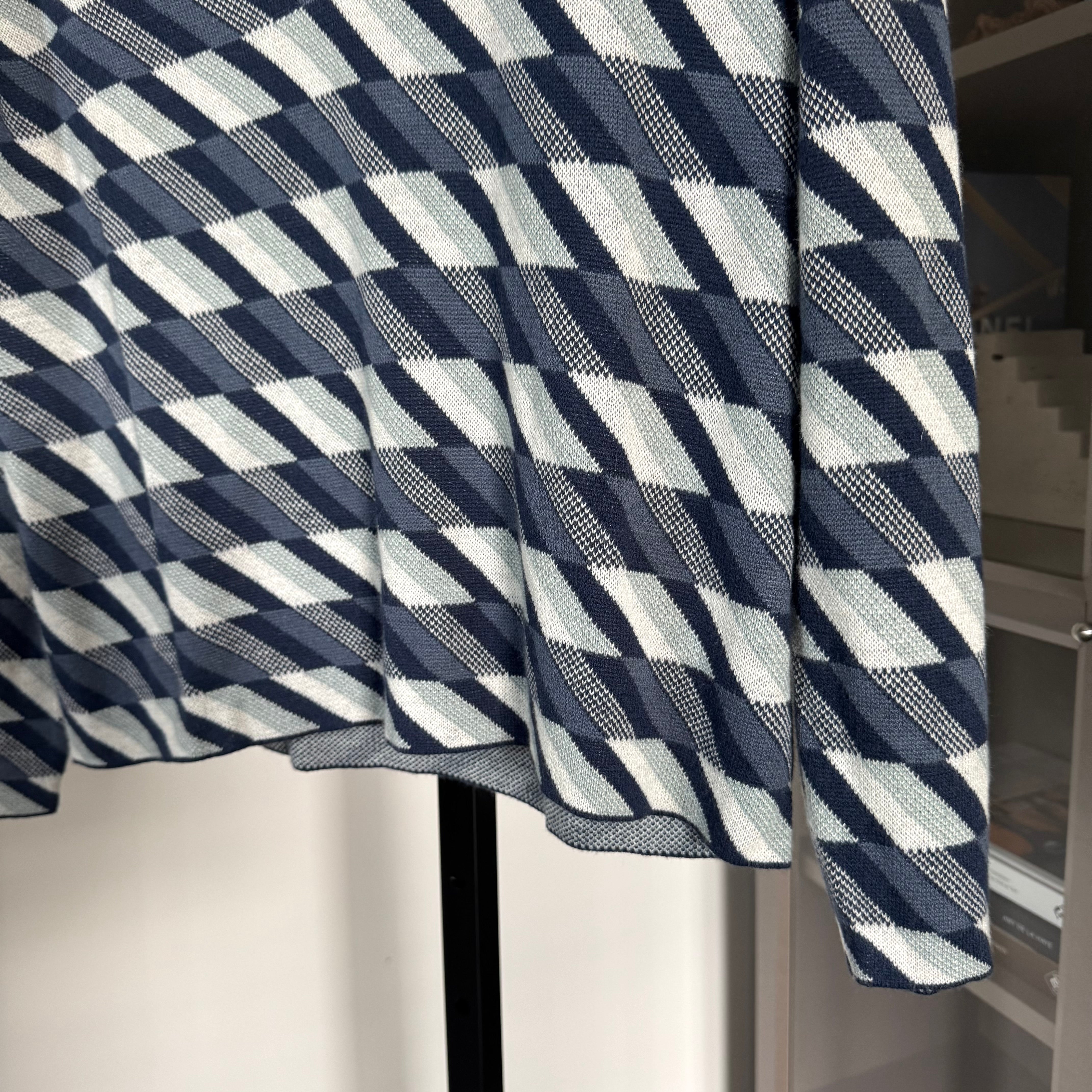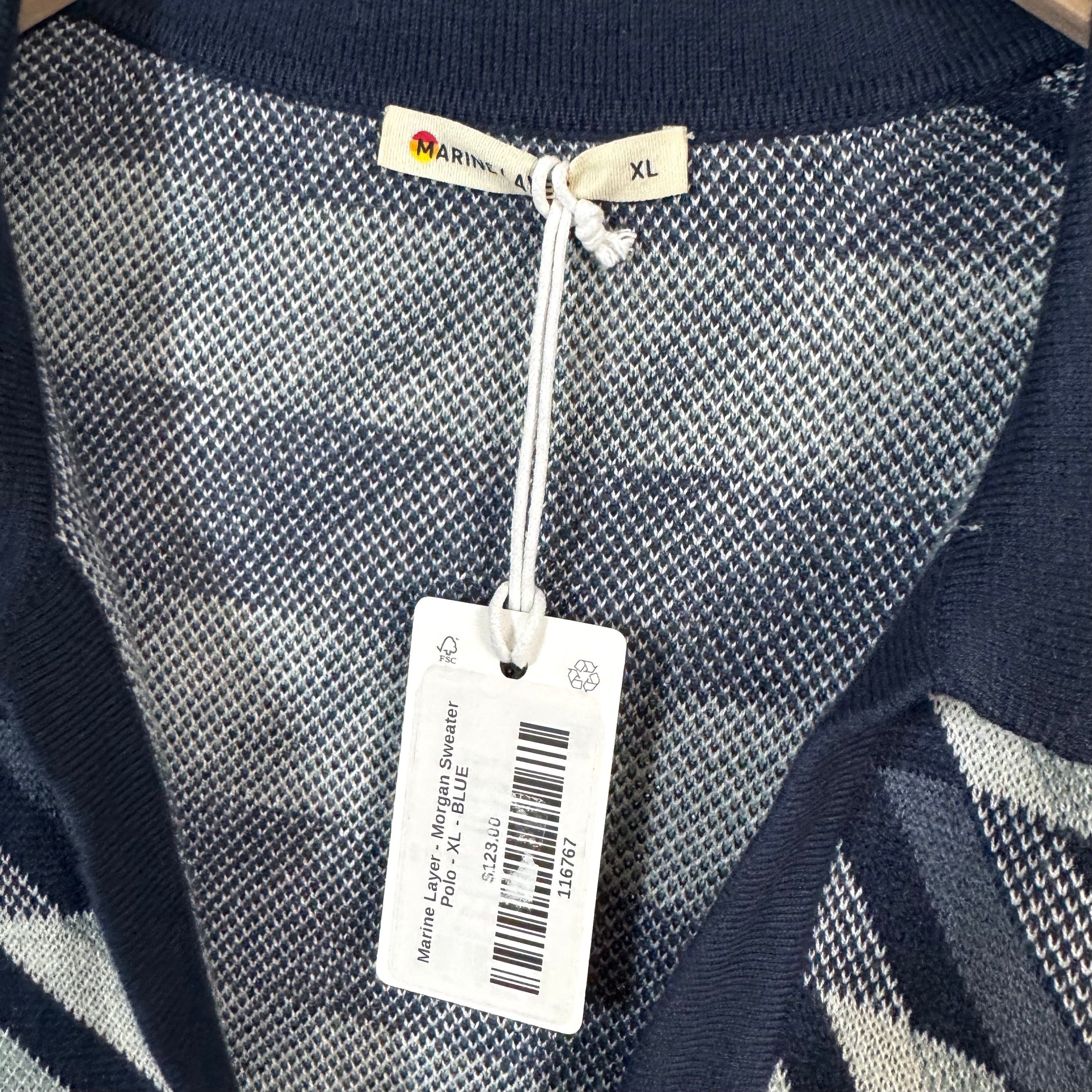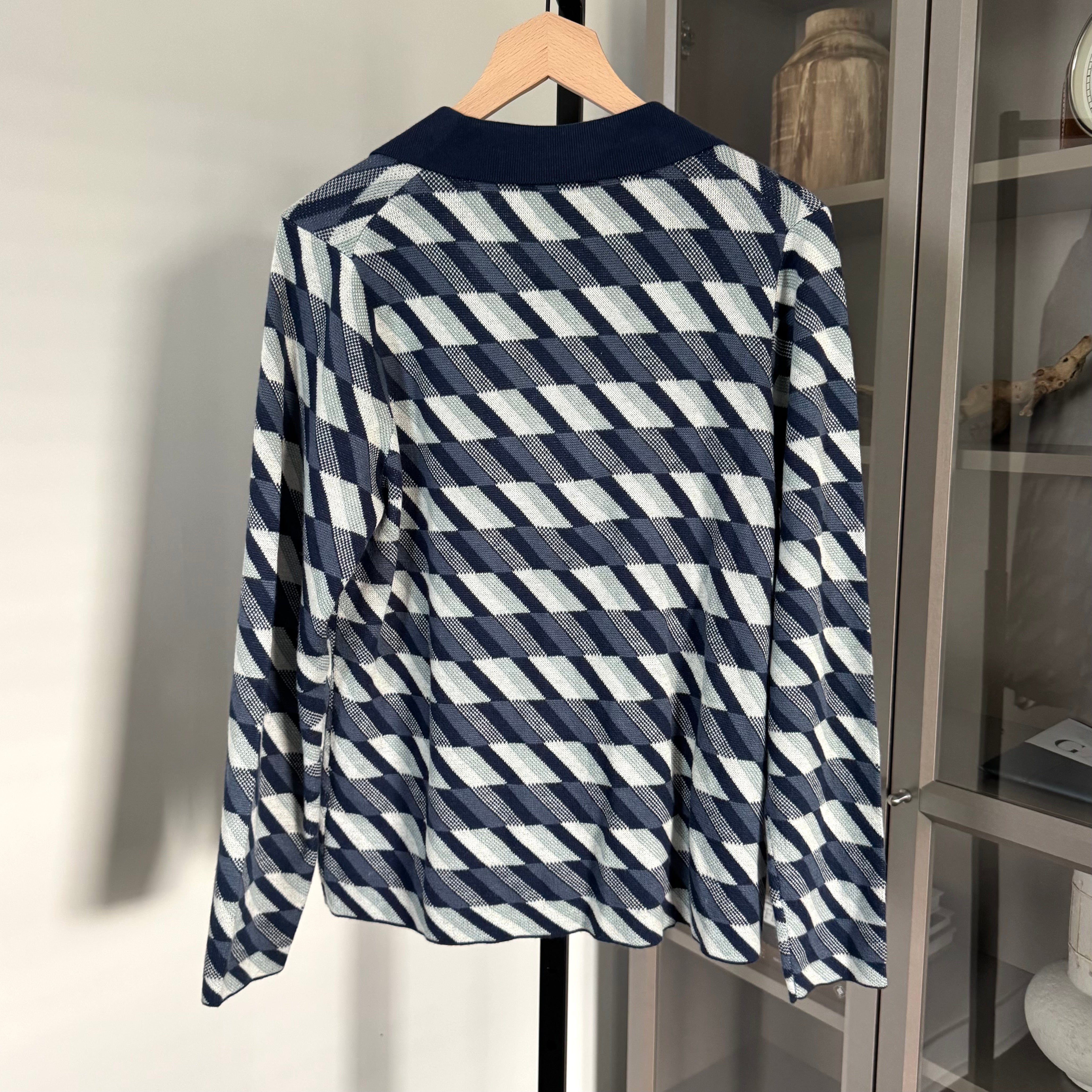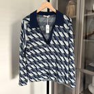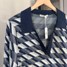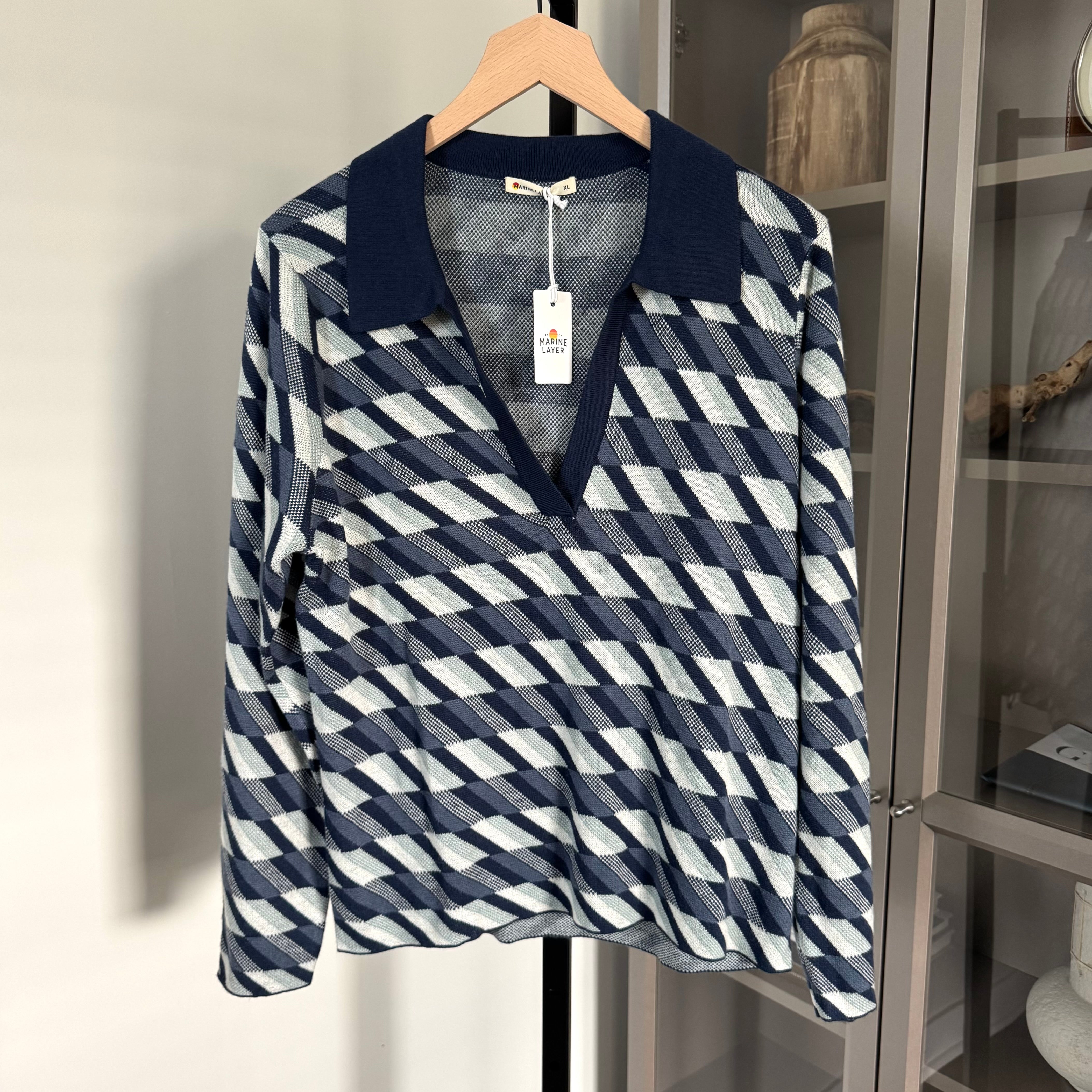 Marine Layer Morgan Blue Geometric Pattern V-Neck Polo Sweater