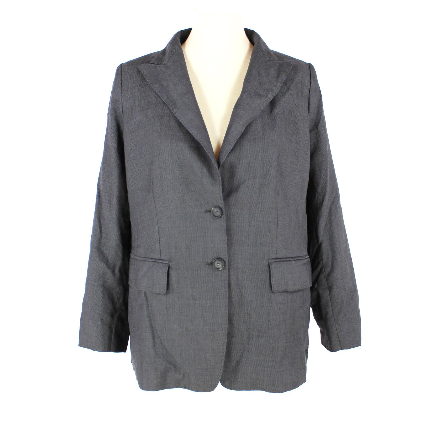 Max Mara Wool Silk Woven Black Single Breasted Blazer Jacket