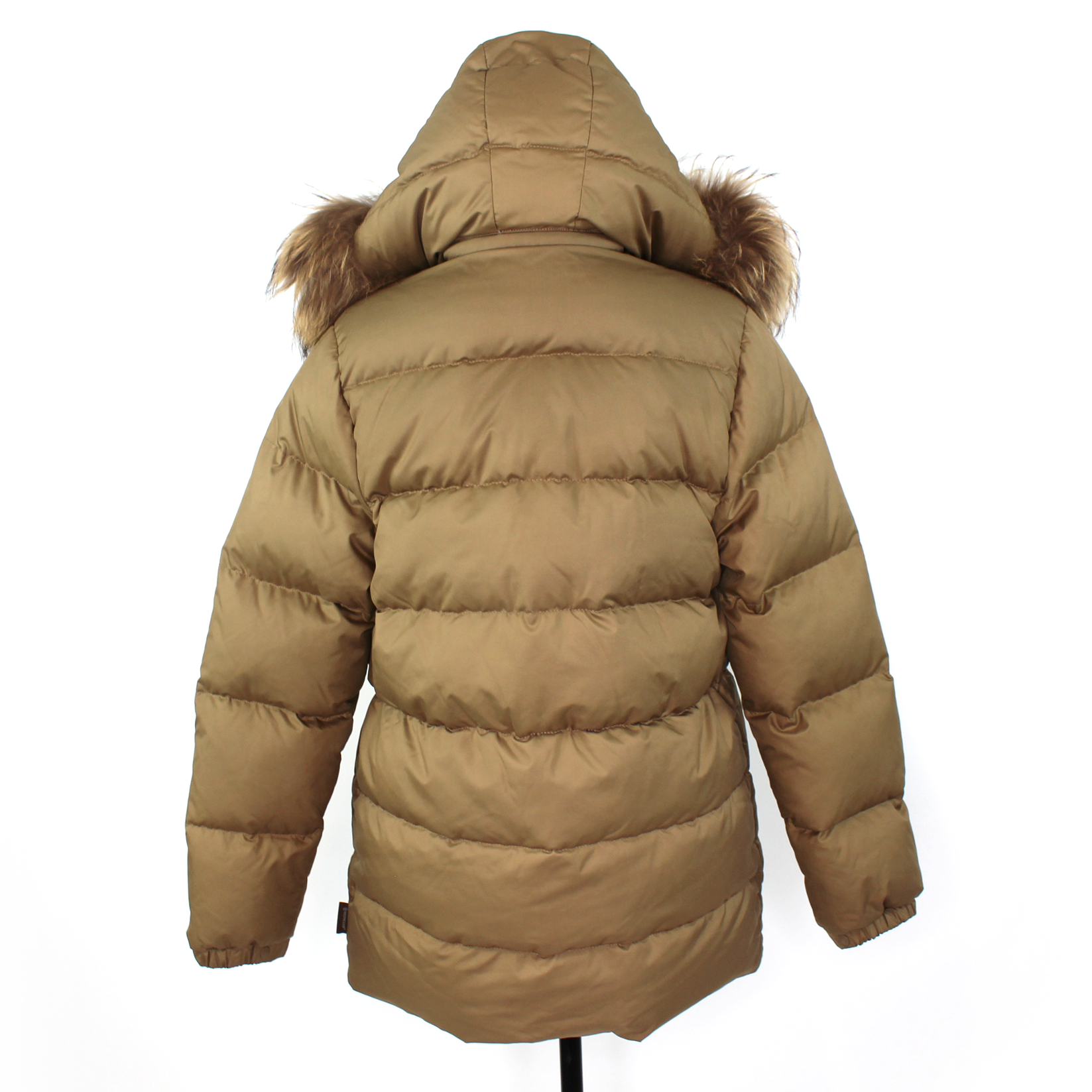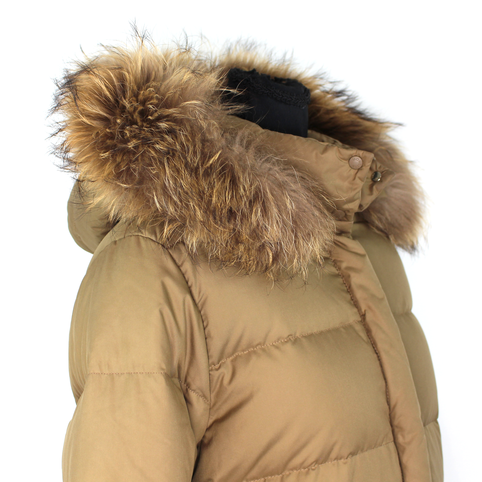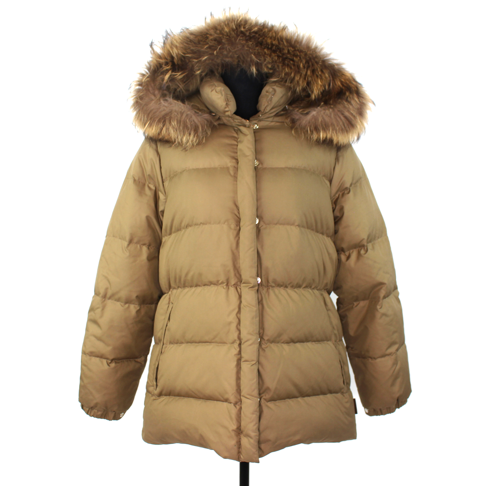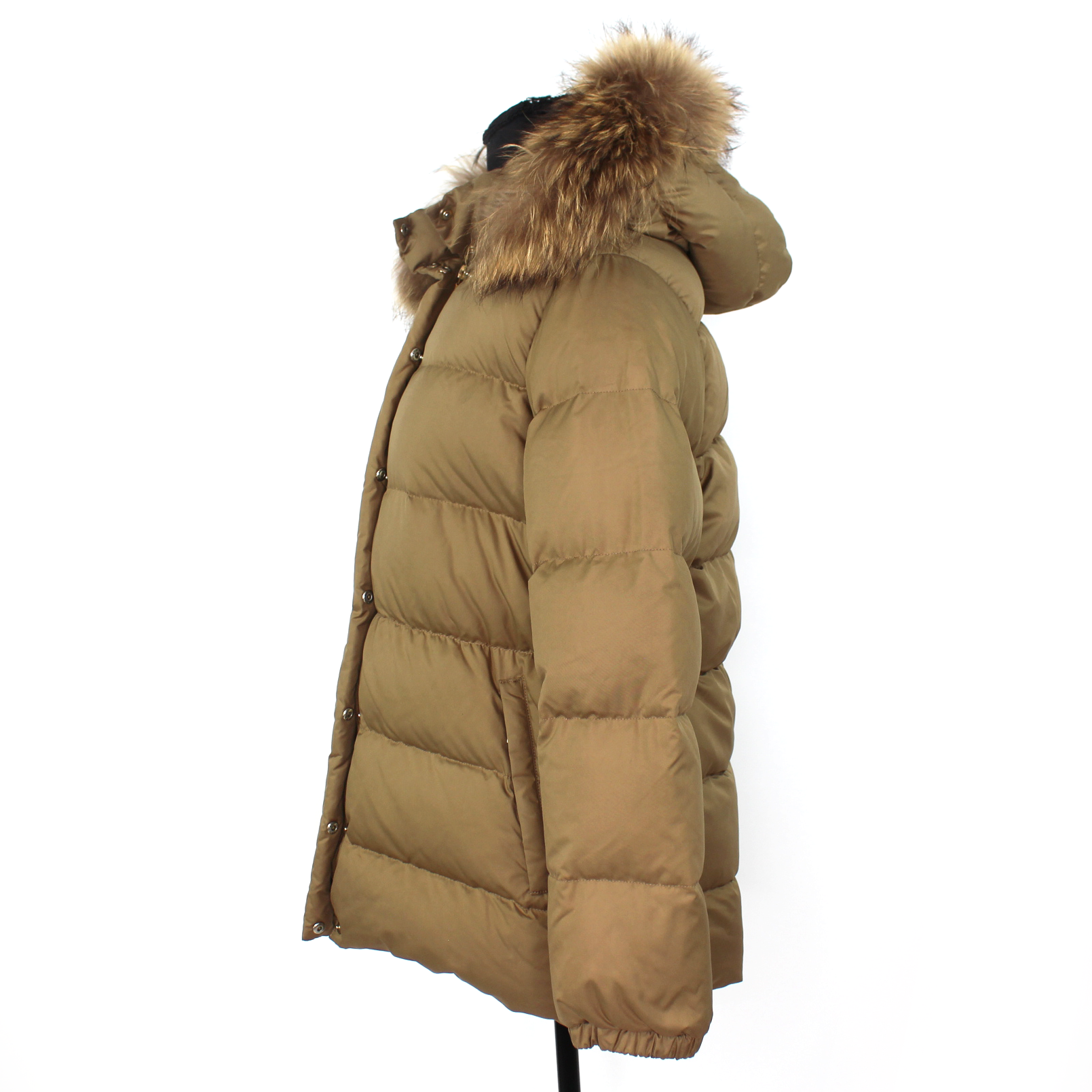 Moncler Camel Tan Down Filled Puffer Racoon Fur Trim Hooded Coat