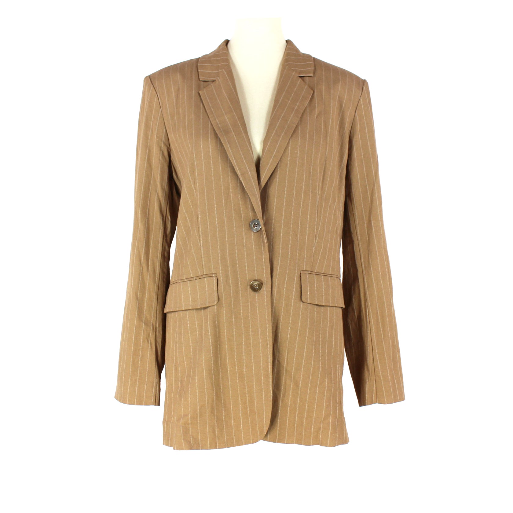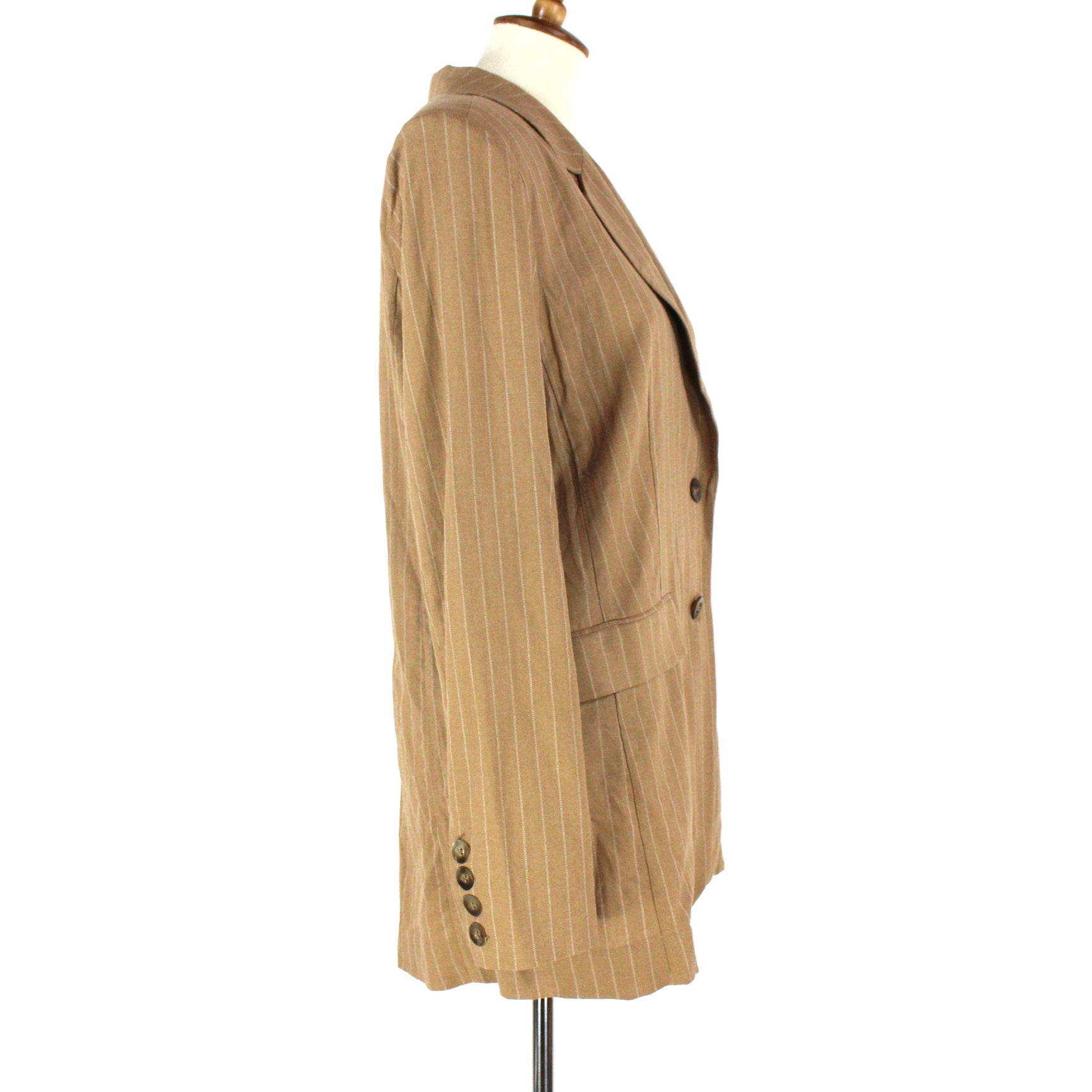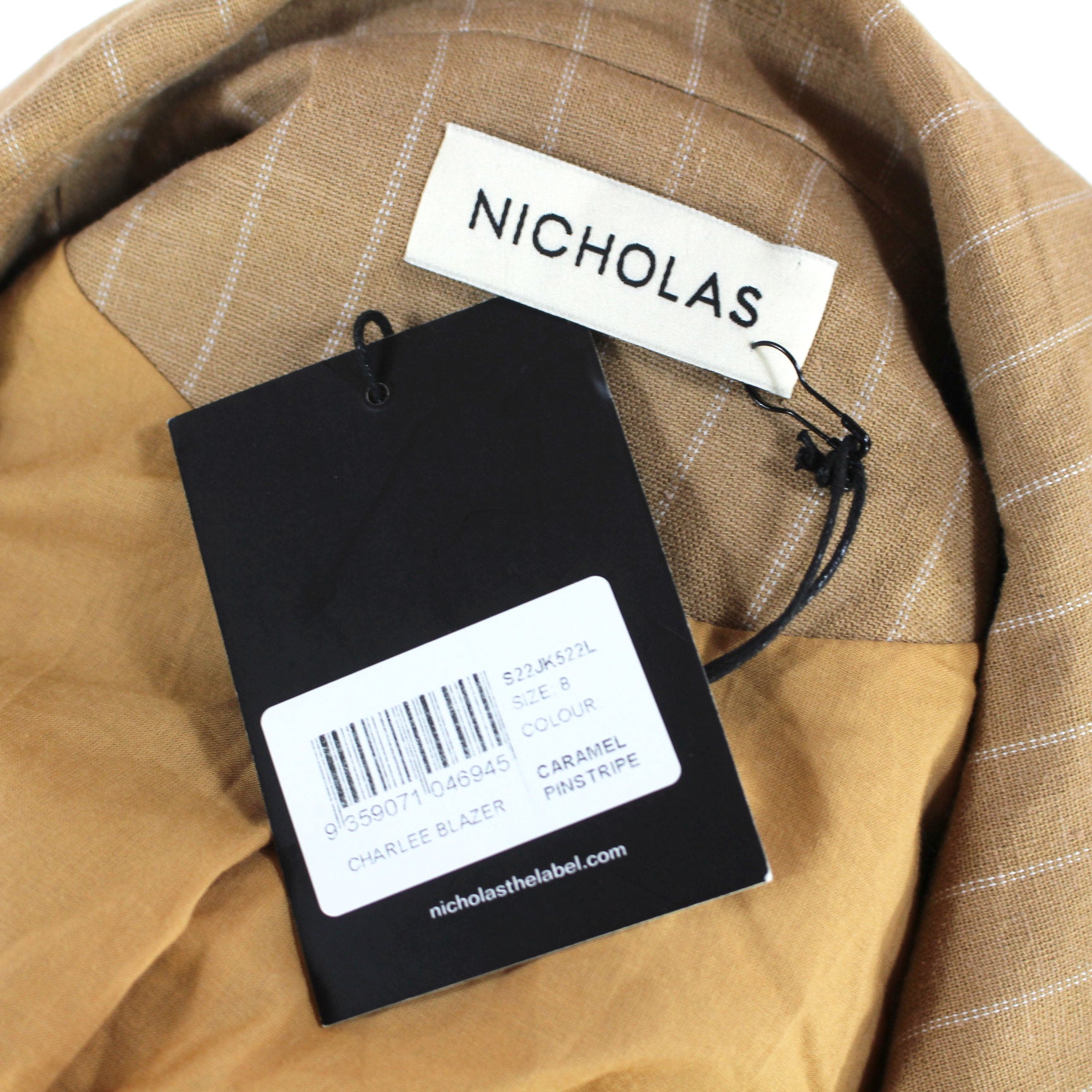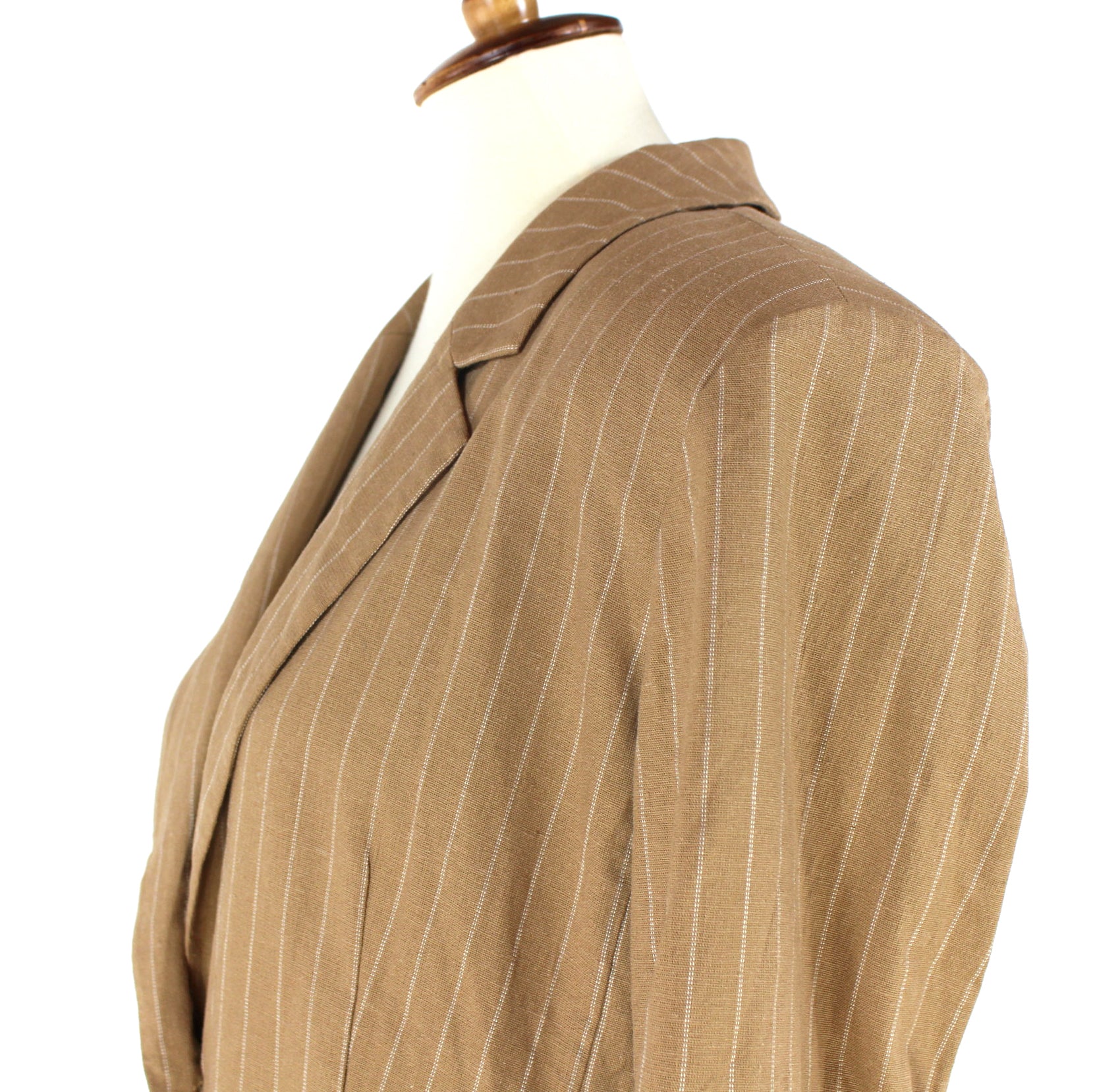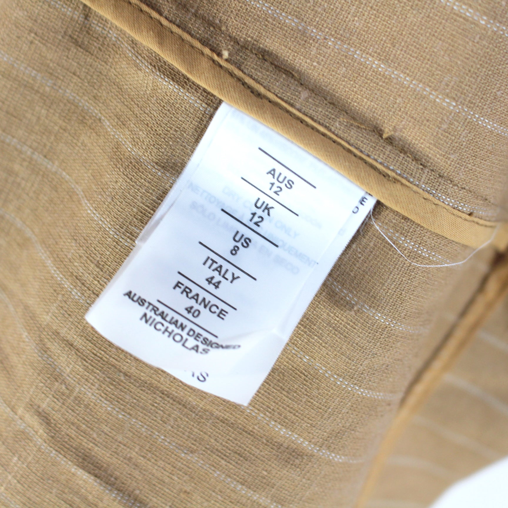 Nicholas Charlee Linen Blend Caramel Pinstripe Single Breasted Blazer