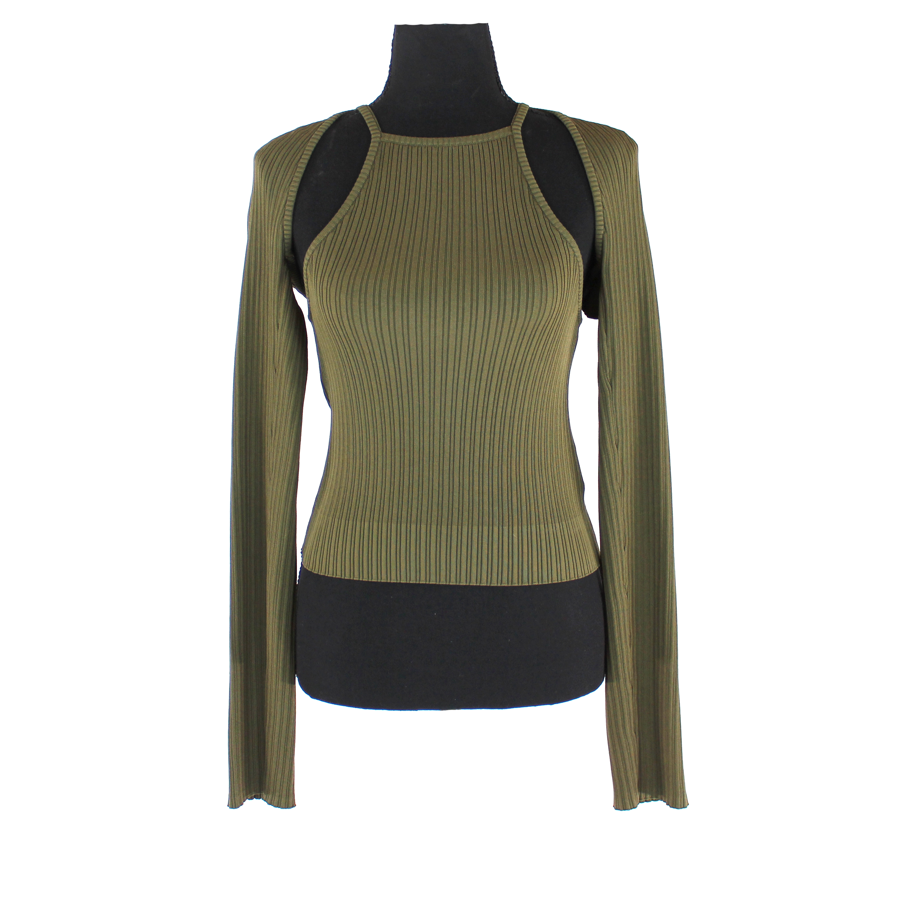 NICHOLAS Luna Khaki Green Rib Knit Racerback Tank Detachable Shrug Set