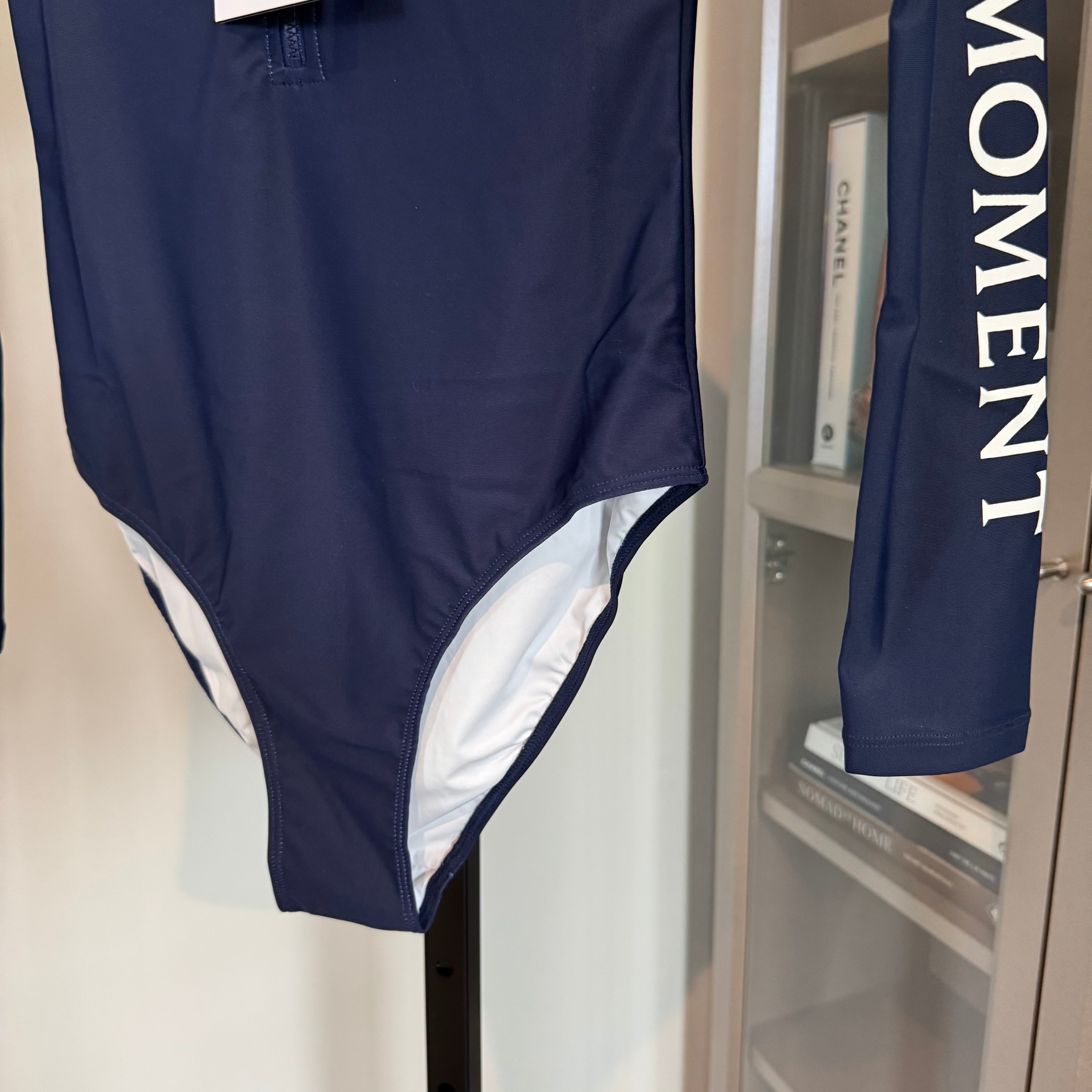 Perfect Moment 1/2 Zip Navy Chevron Long Sleeve One Piece Swimsuit