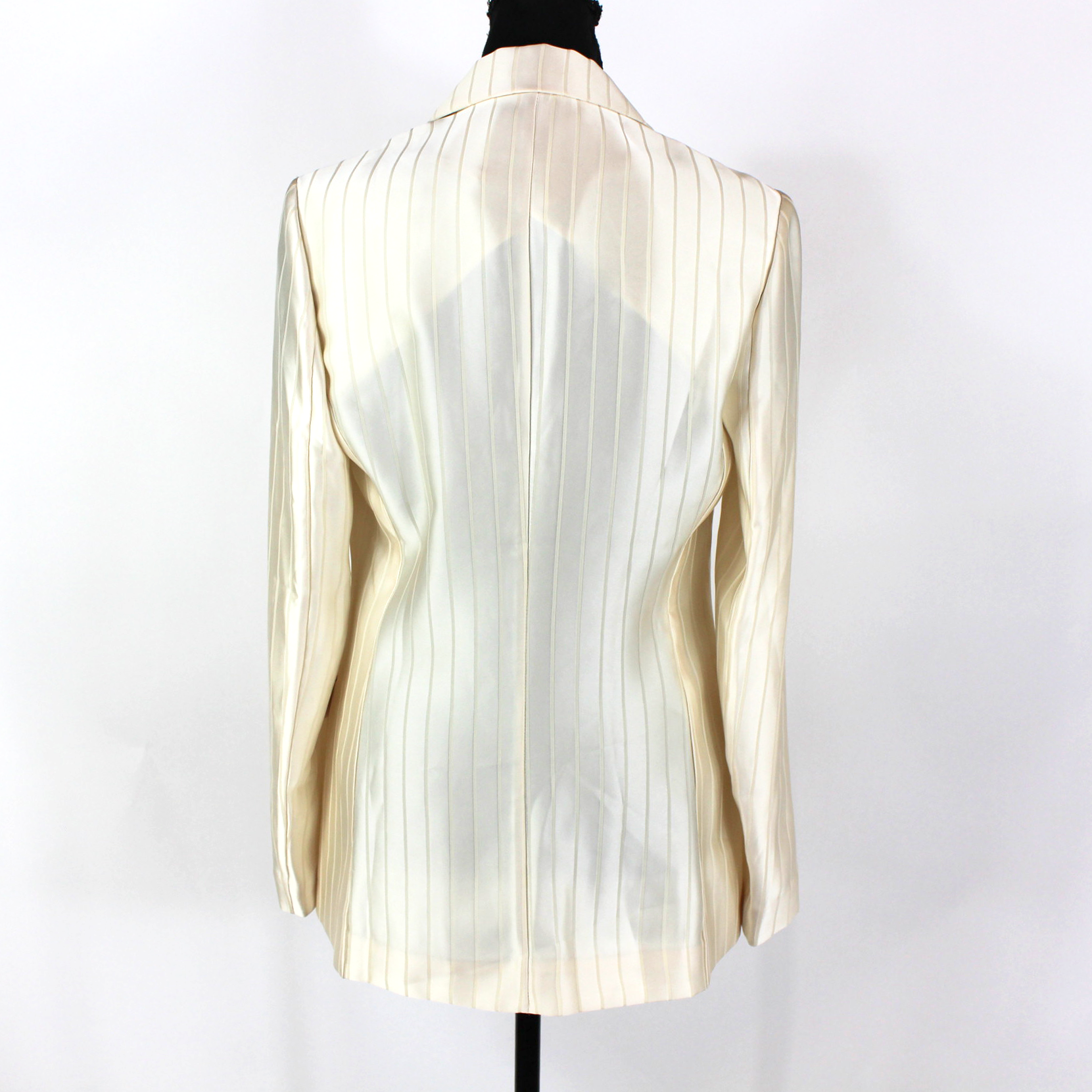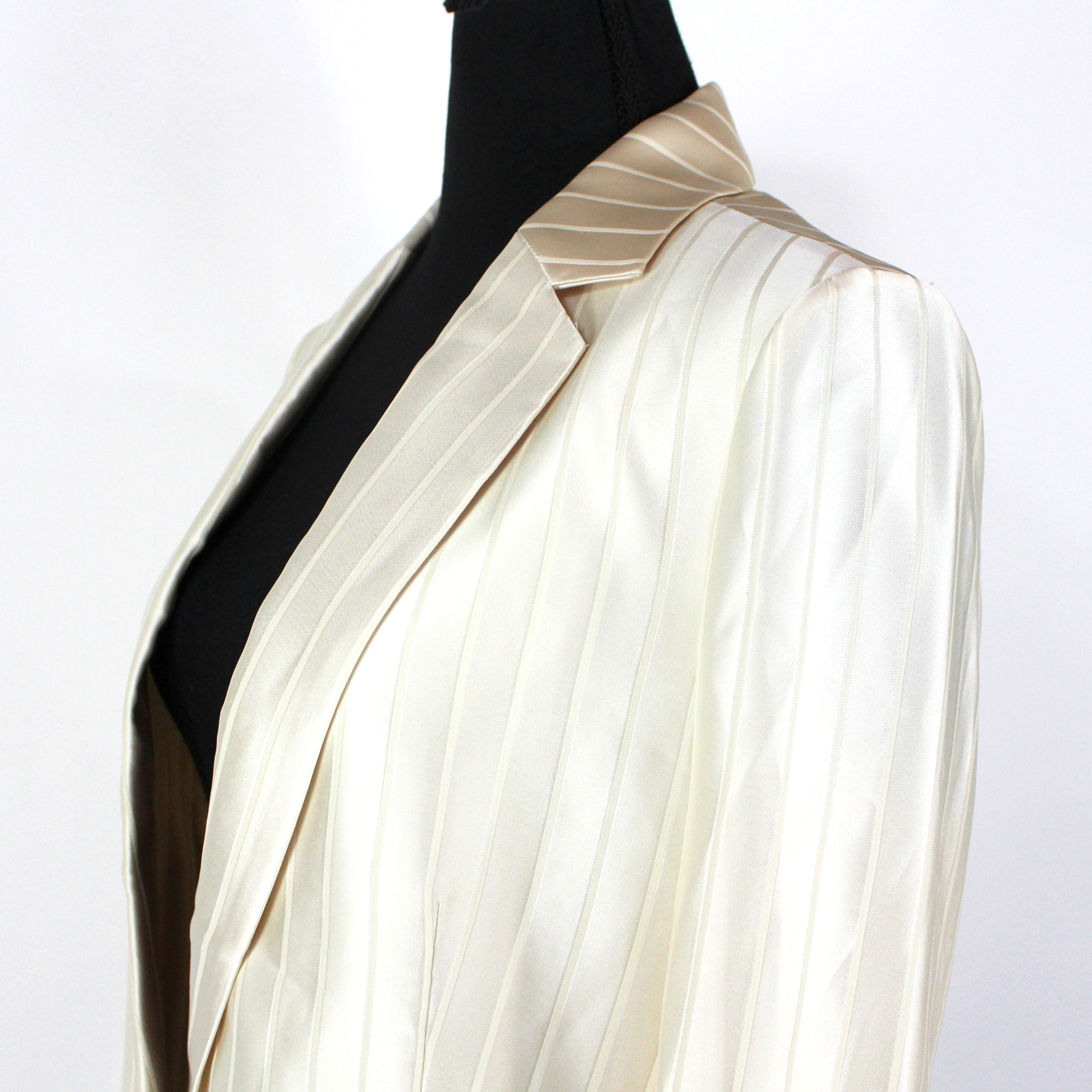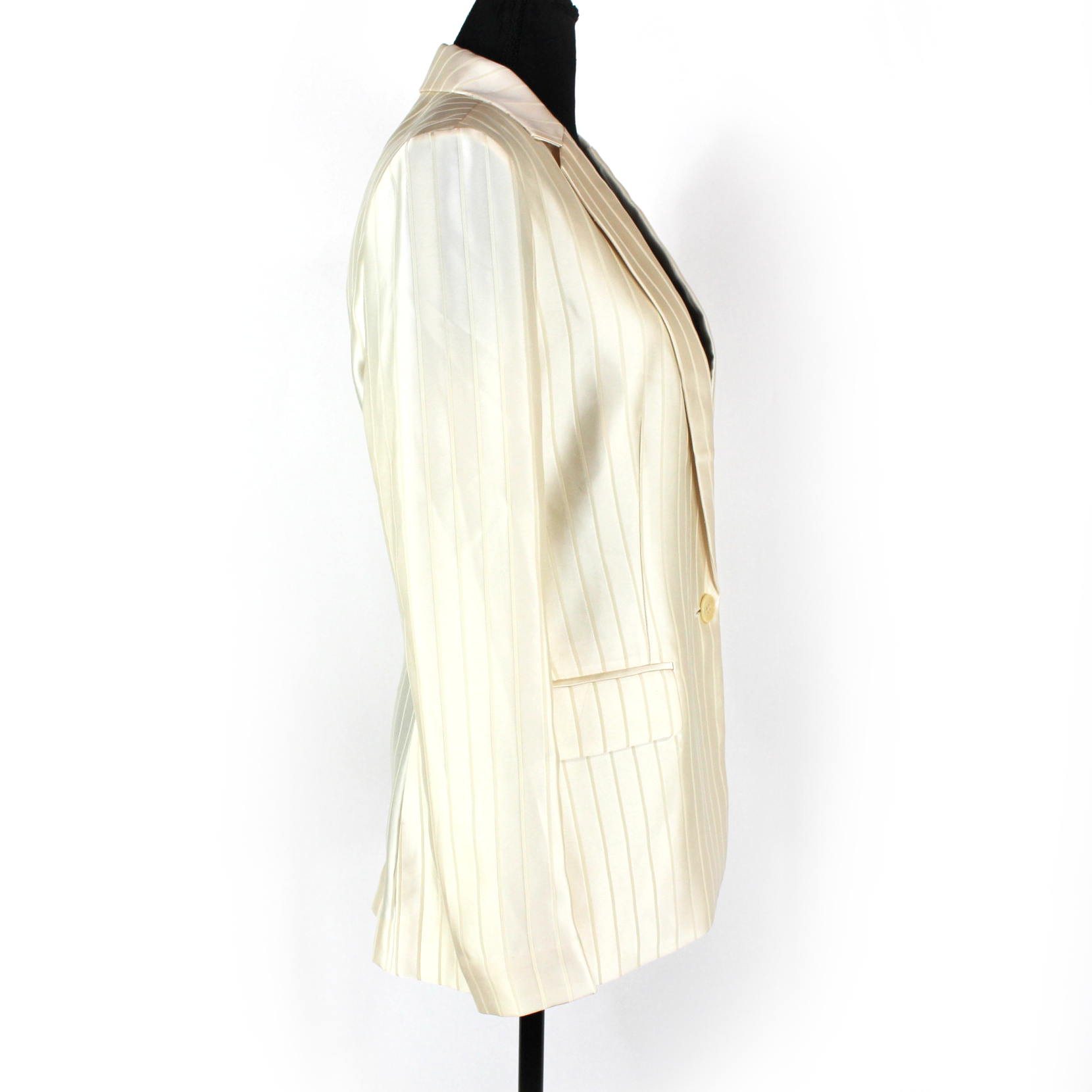 REISS Lilea Champagne Tonal Stripe Satin One Button Notch Blazer Jacket