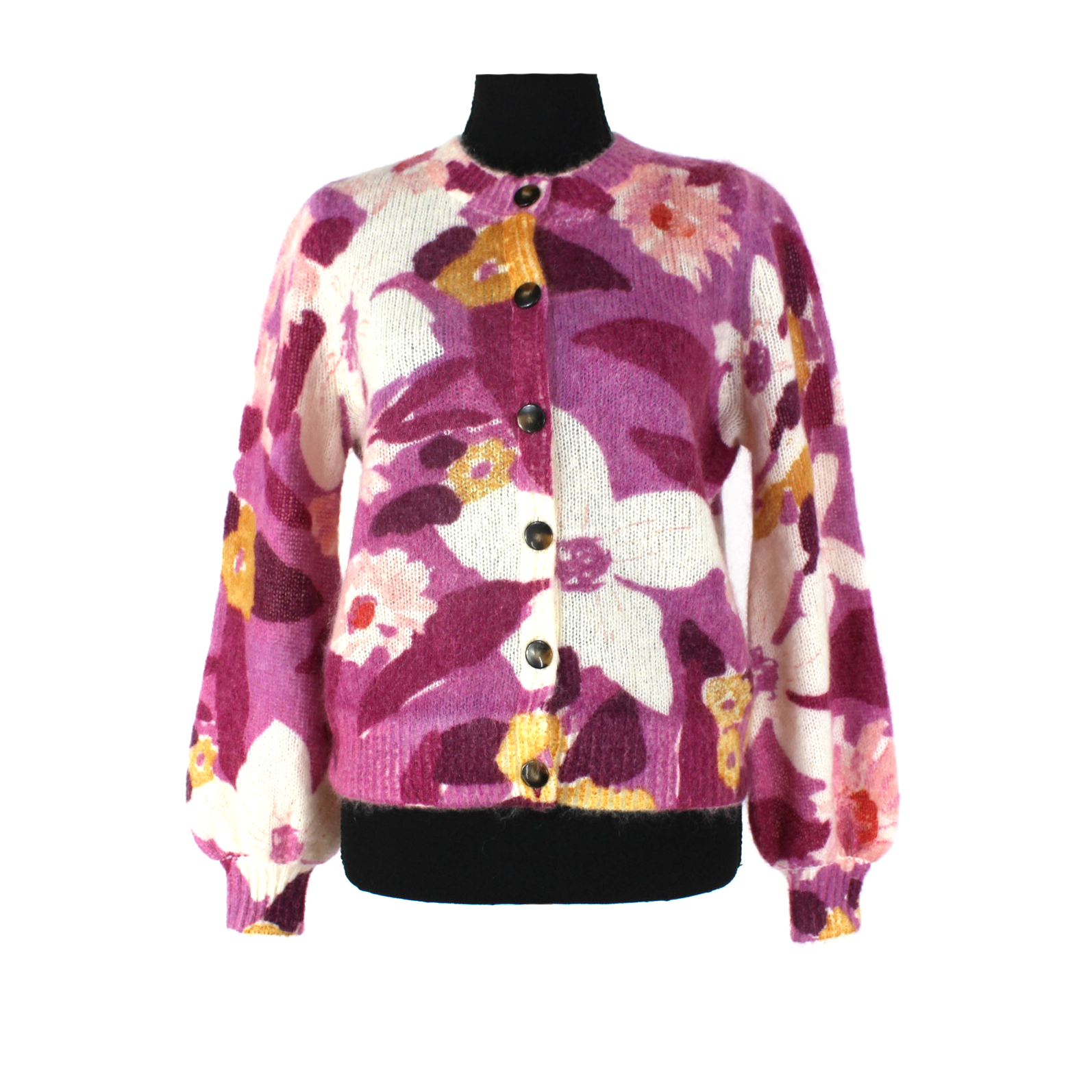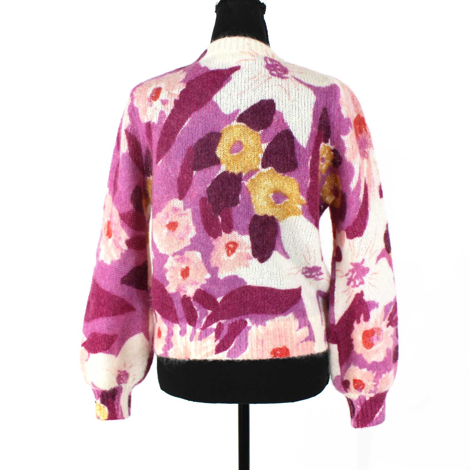 SÉZANE Aelie Pink Purple Floral Wool Mohair Blend Sweater Cardigan