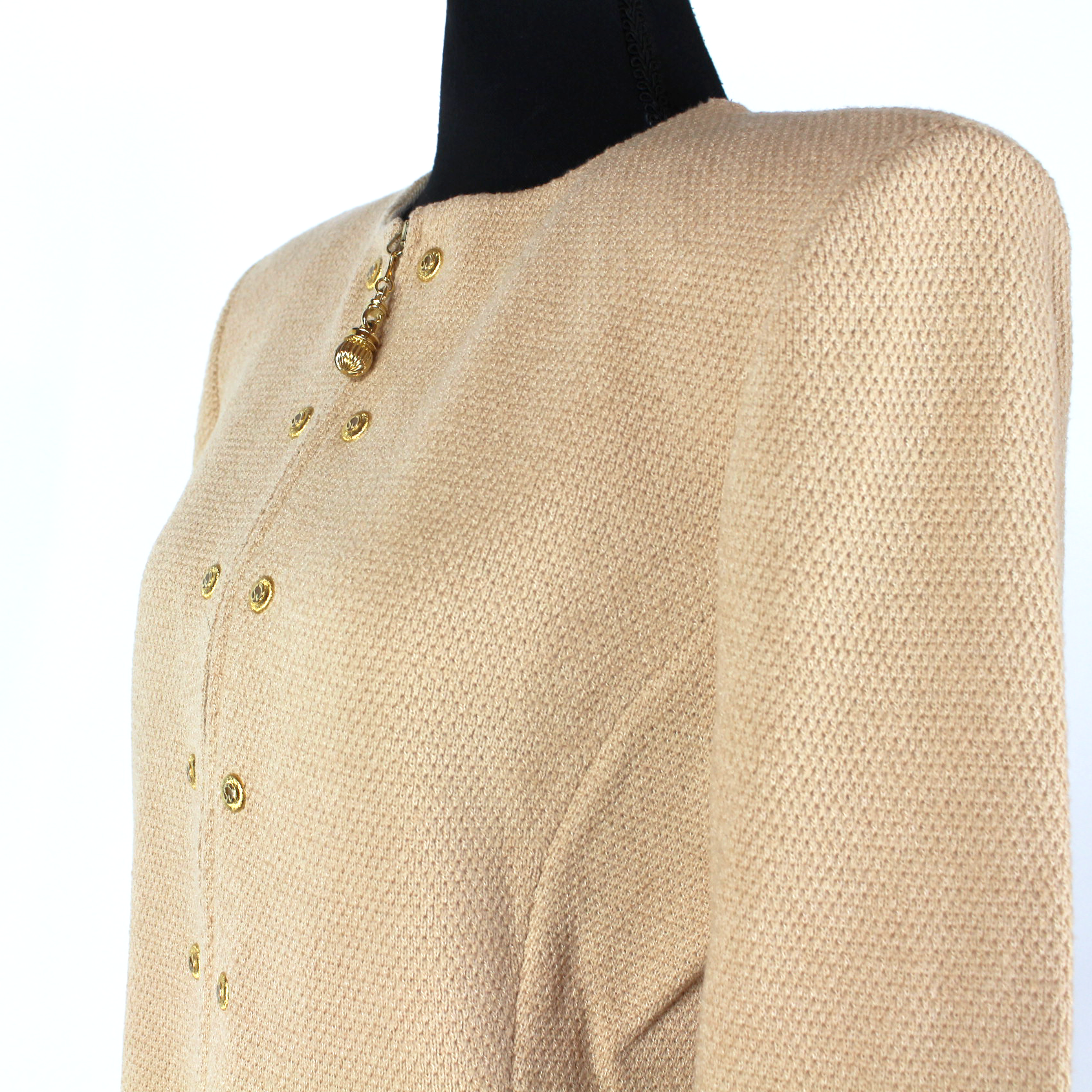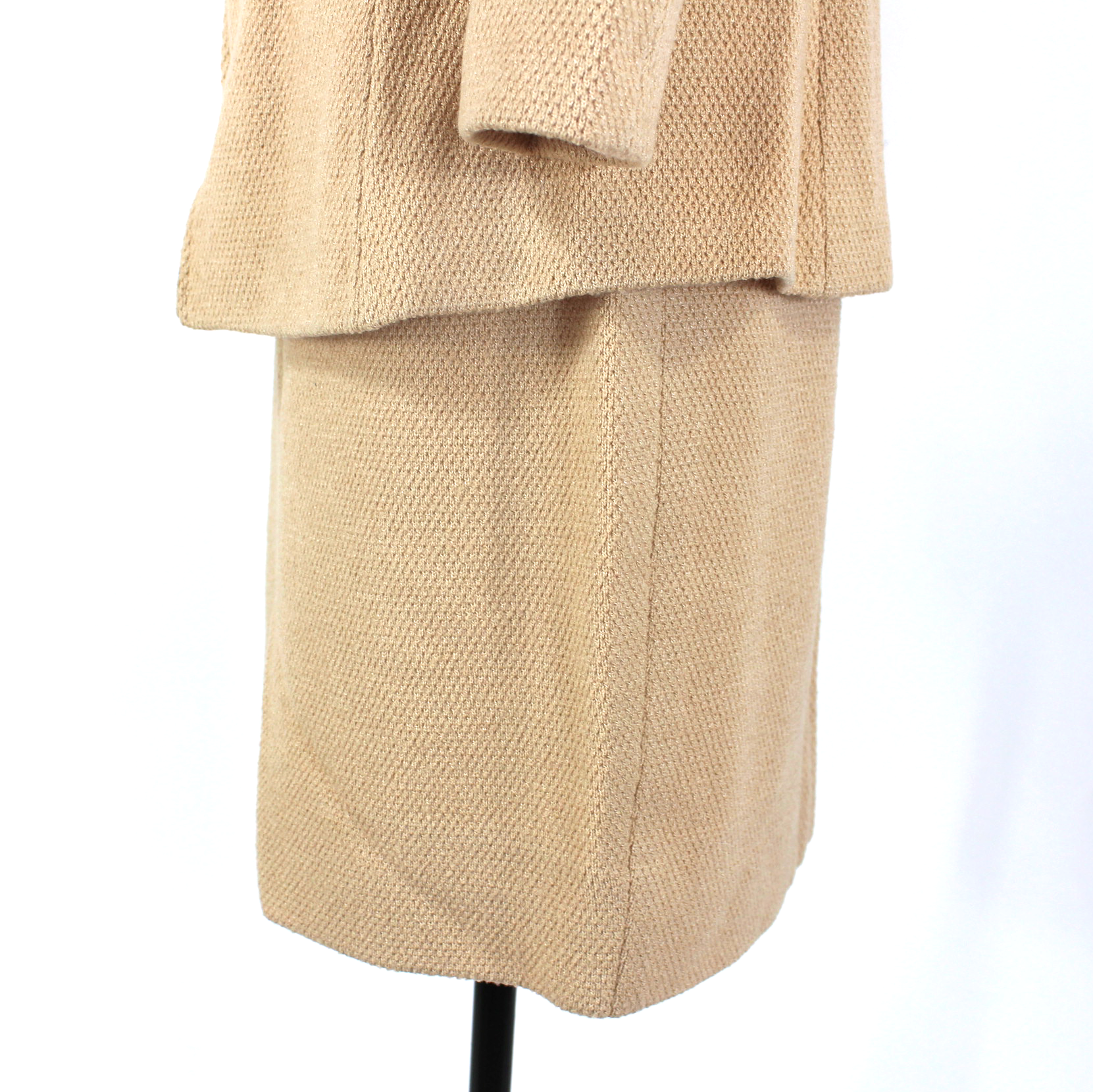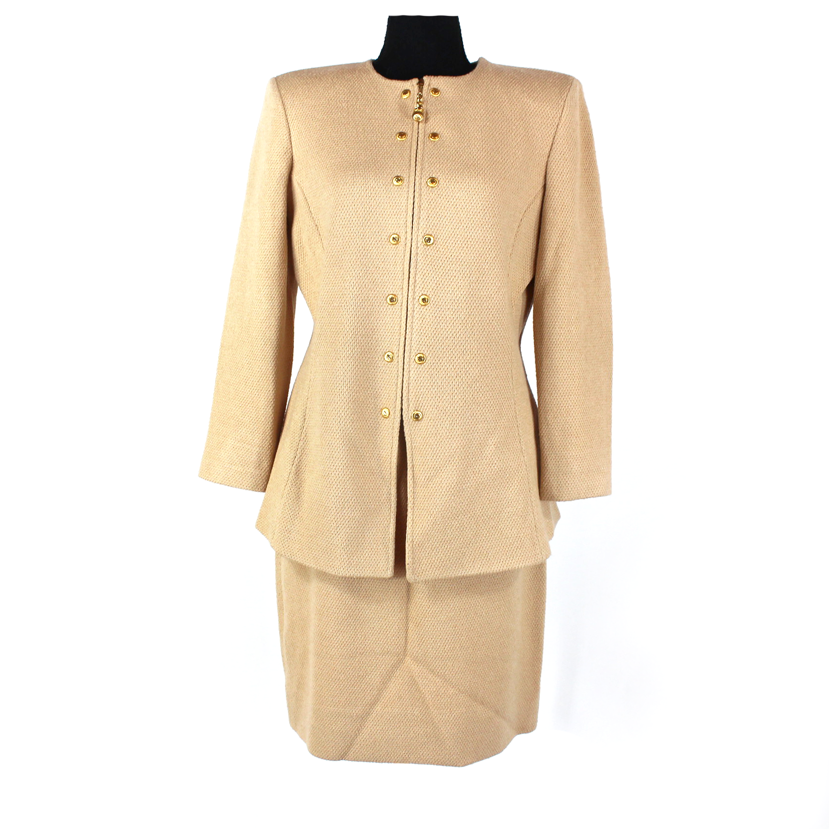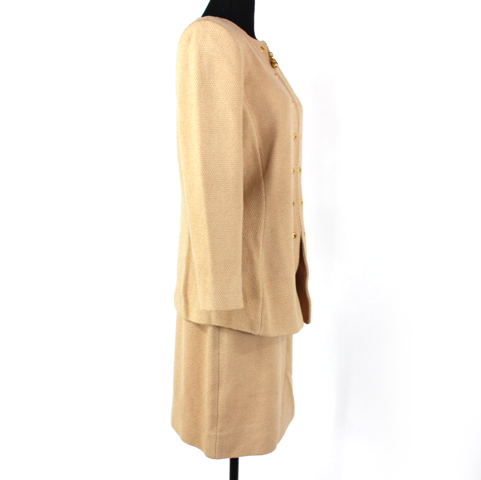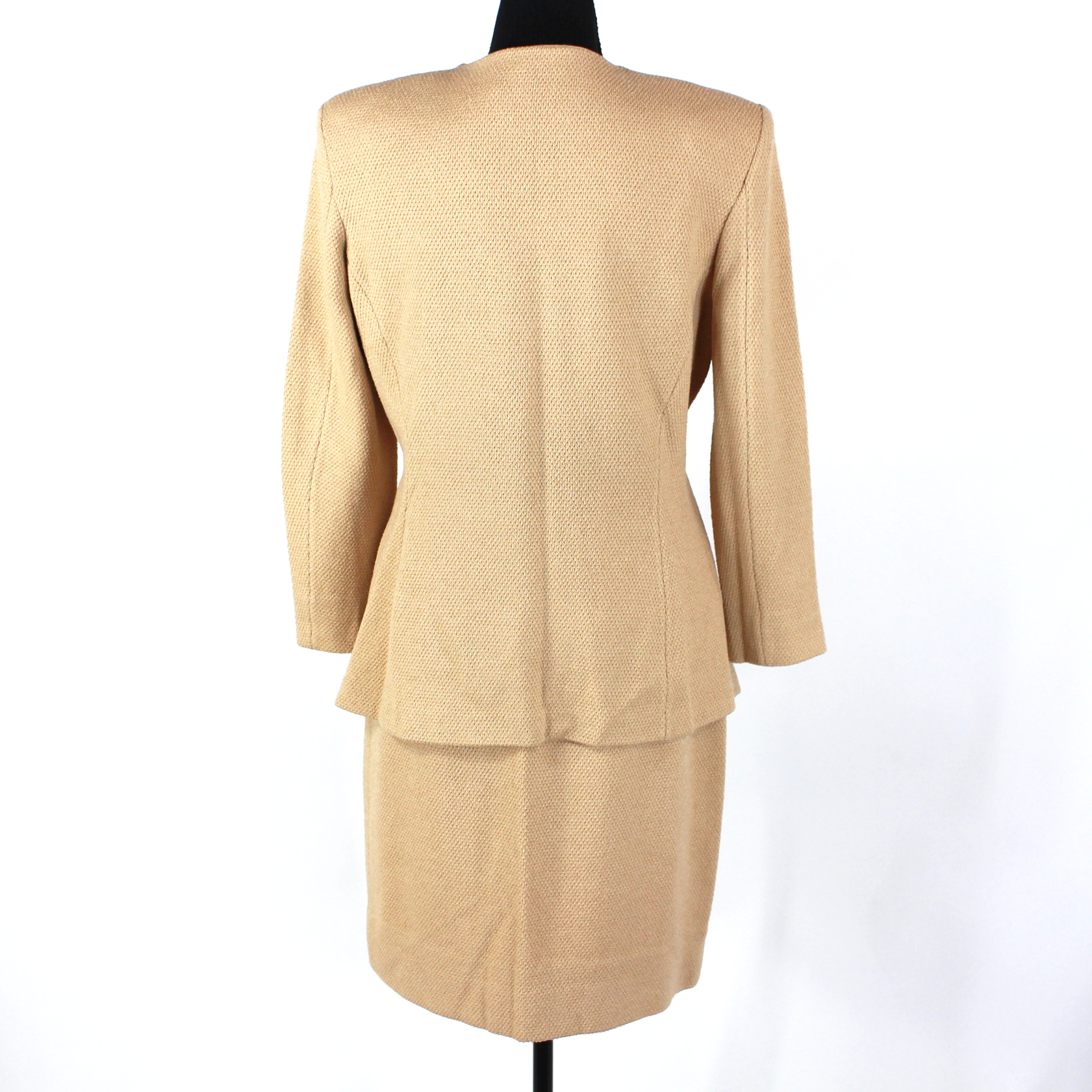 St. John Collection Tan Woven Wool Blend Blazer Straight Mini Skirt Set