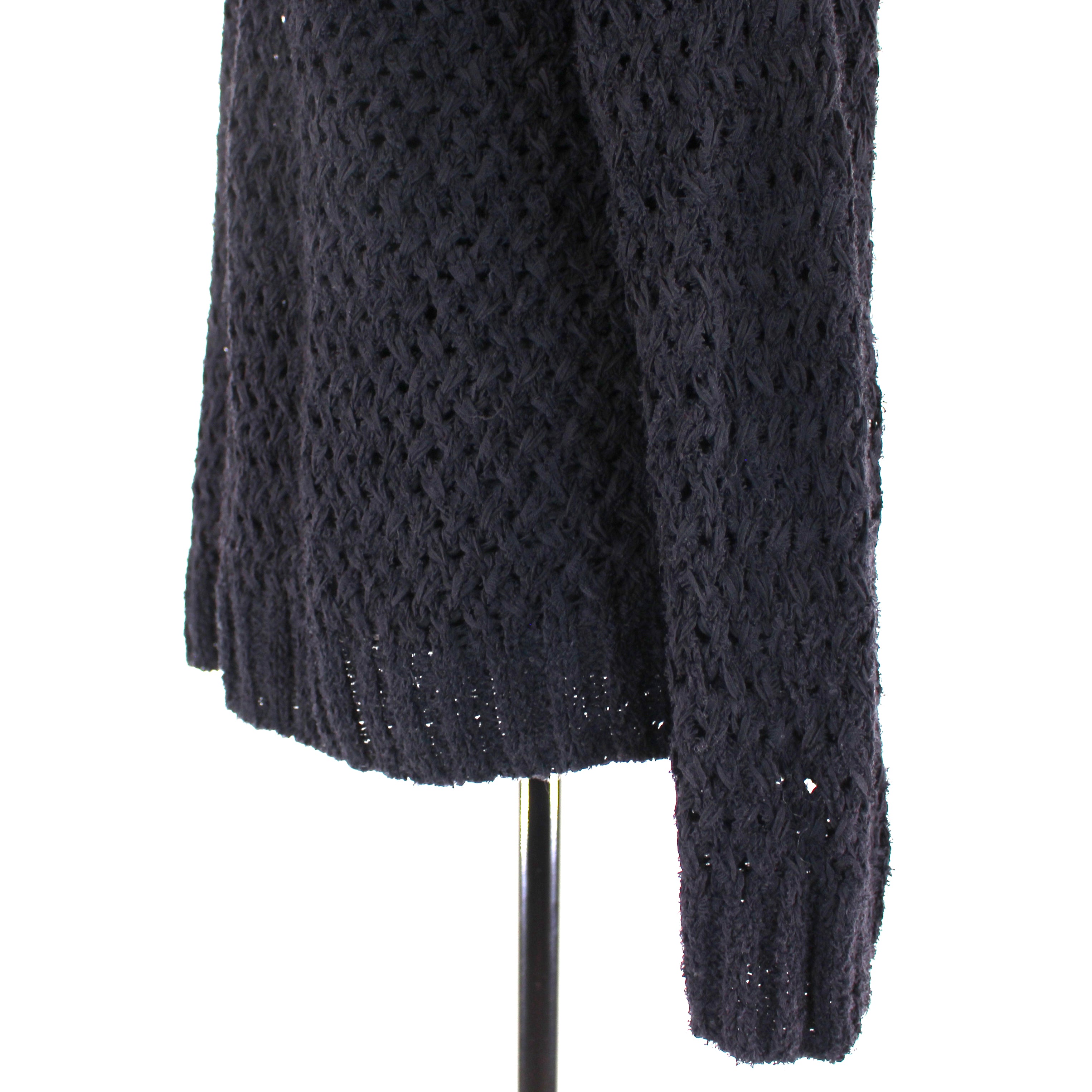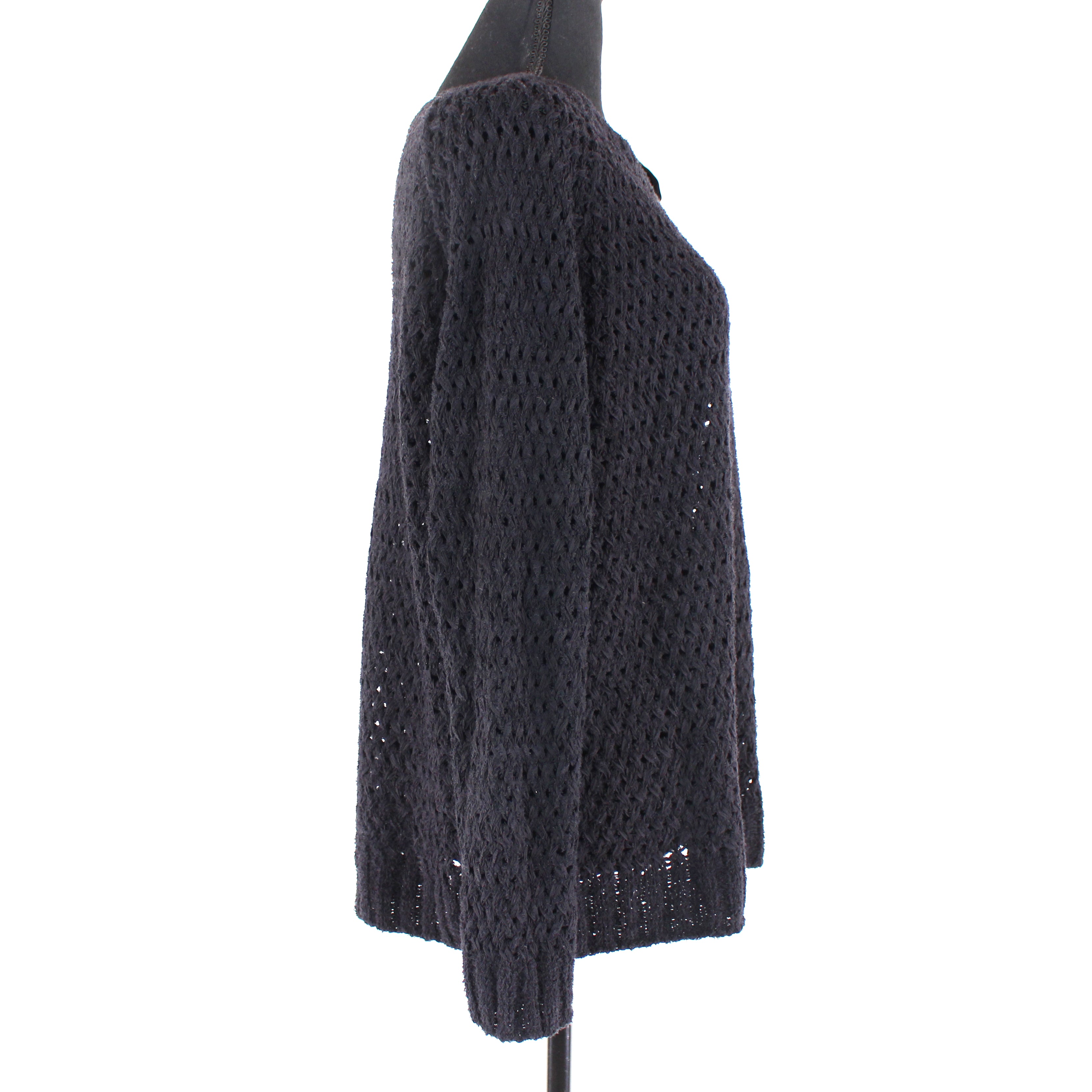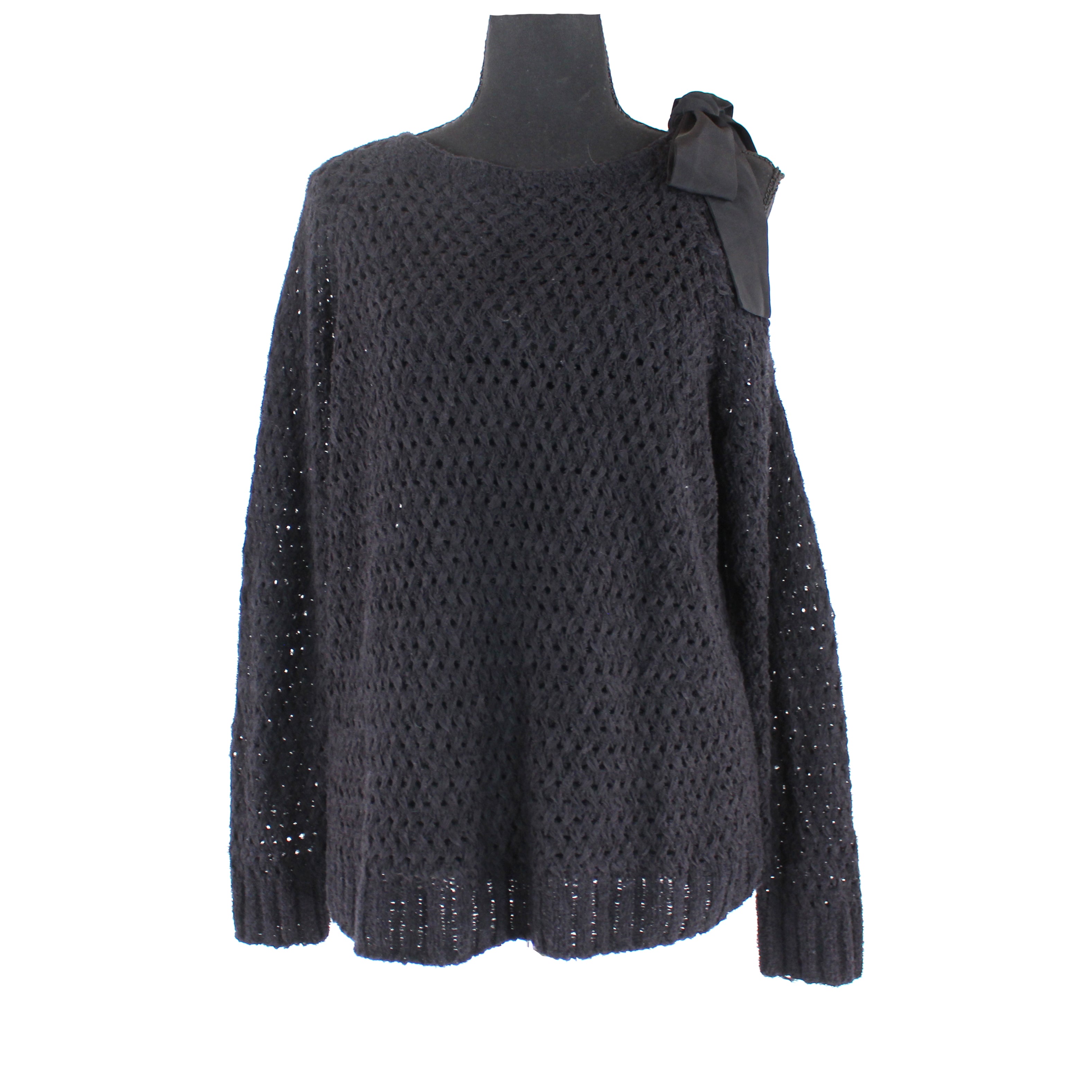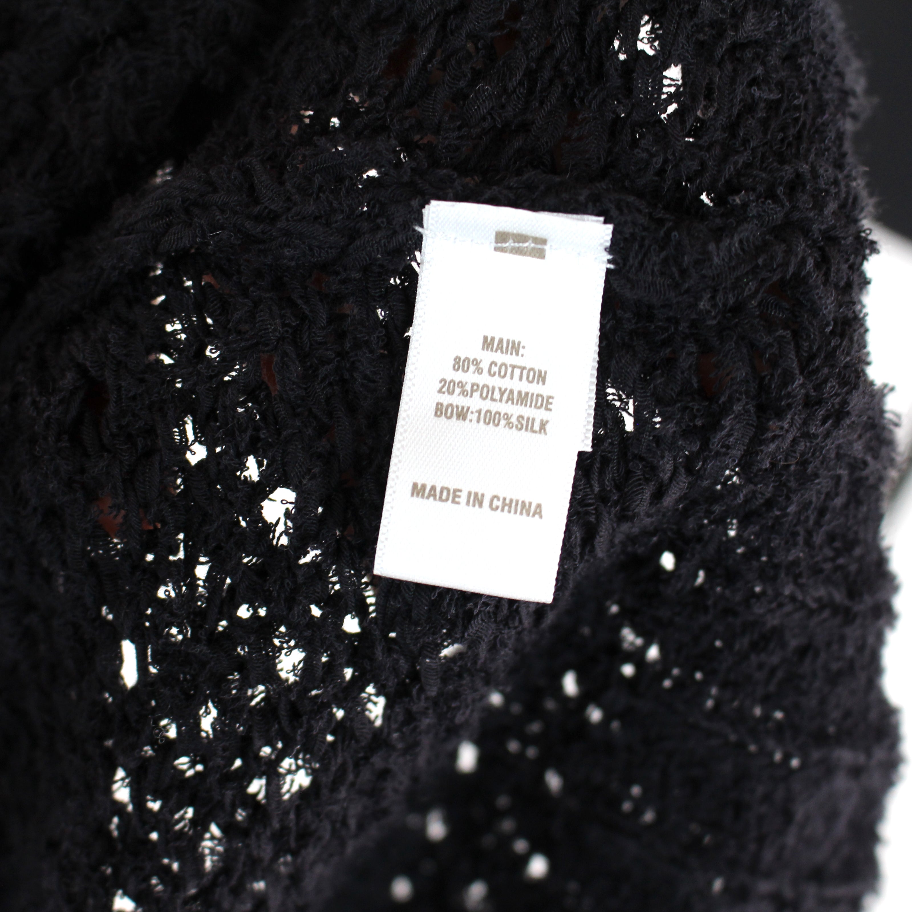 St. John Black Open Crochet Knit Silk Bow Off The Shoulder Sweater
