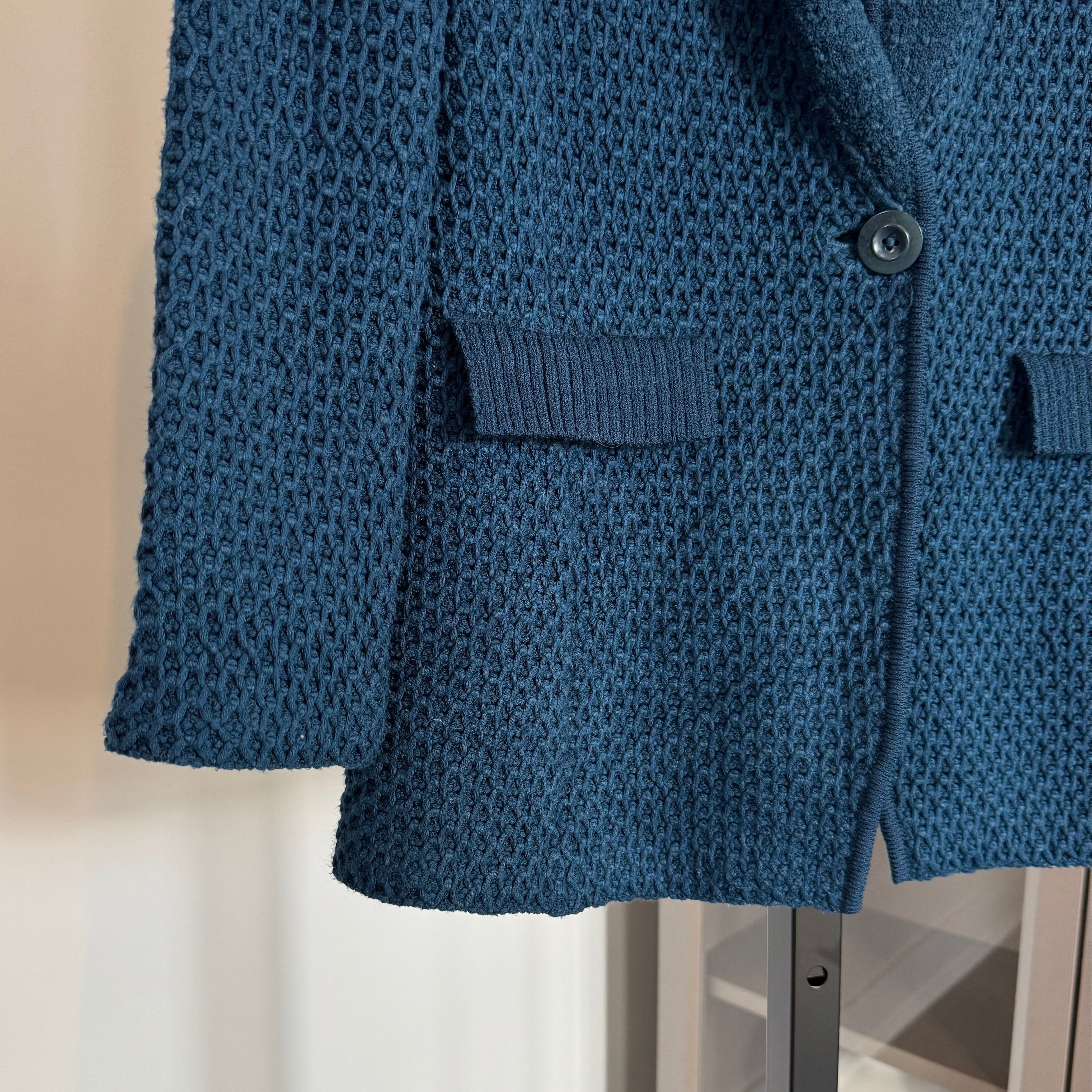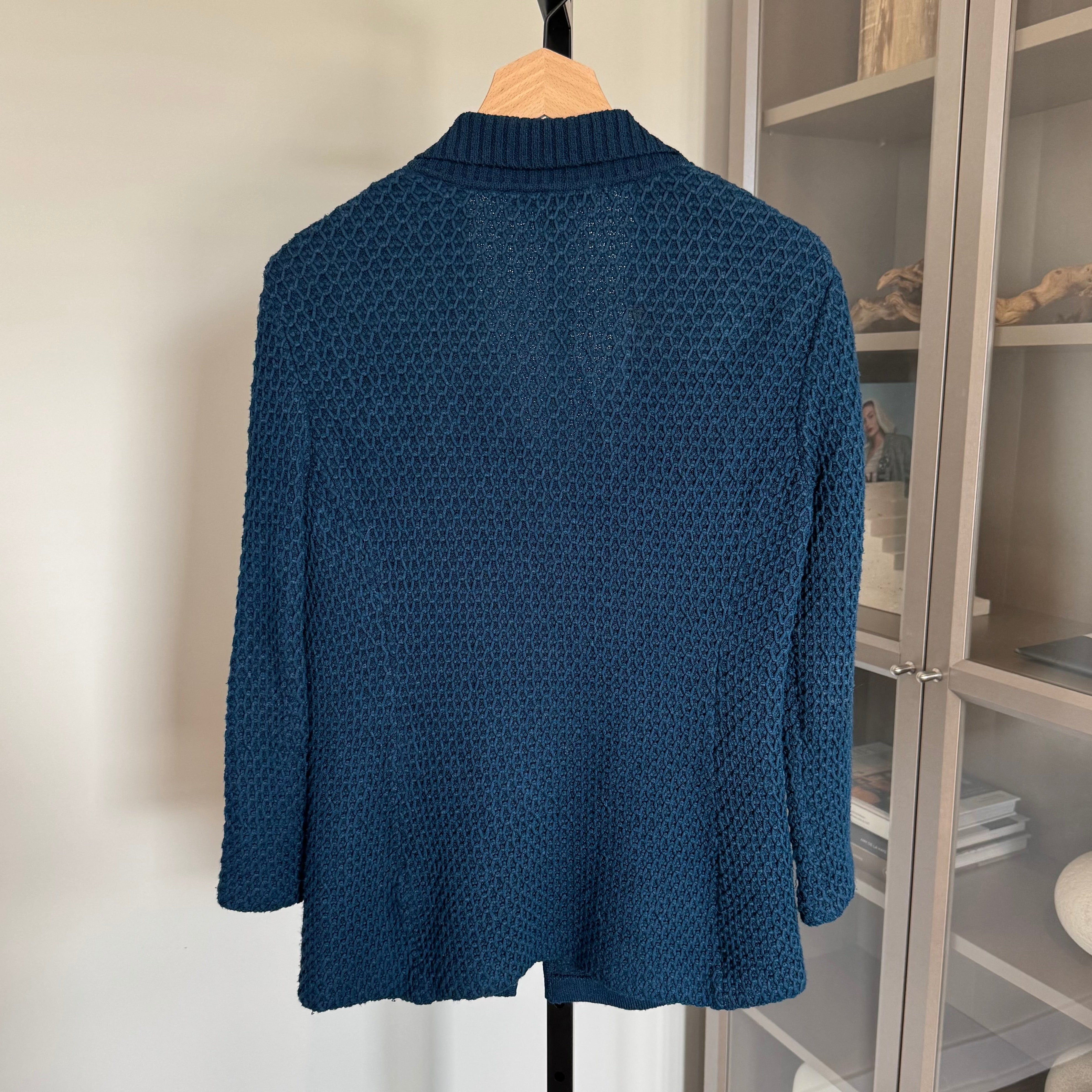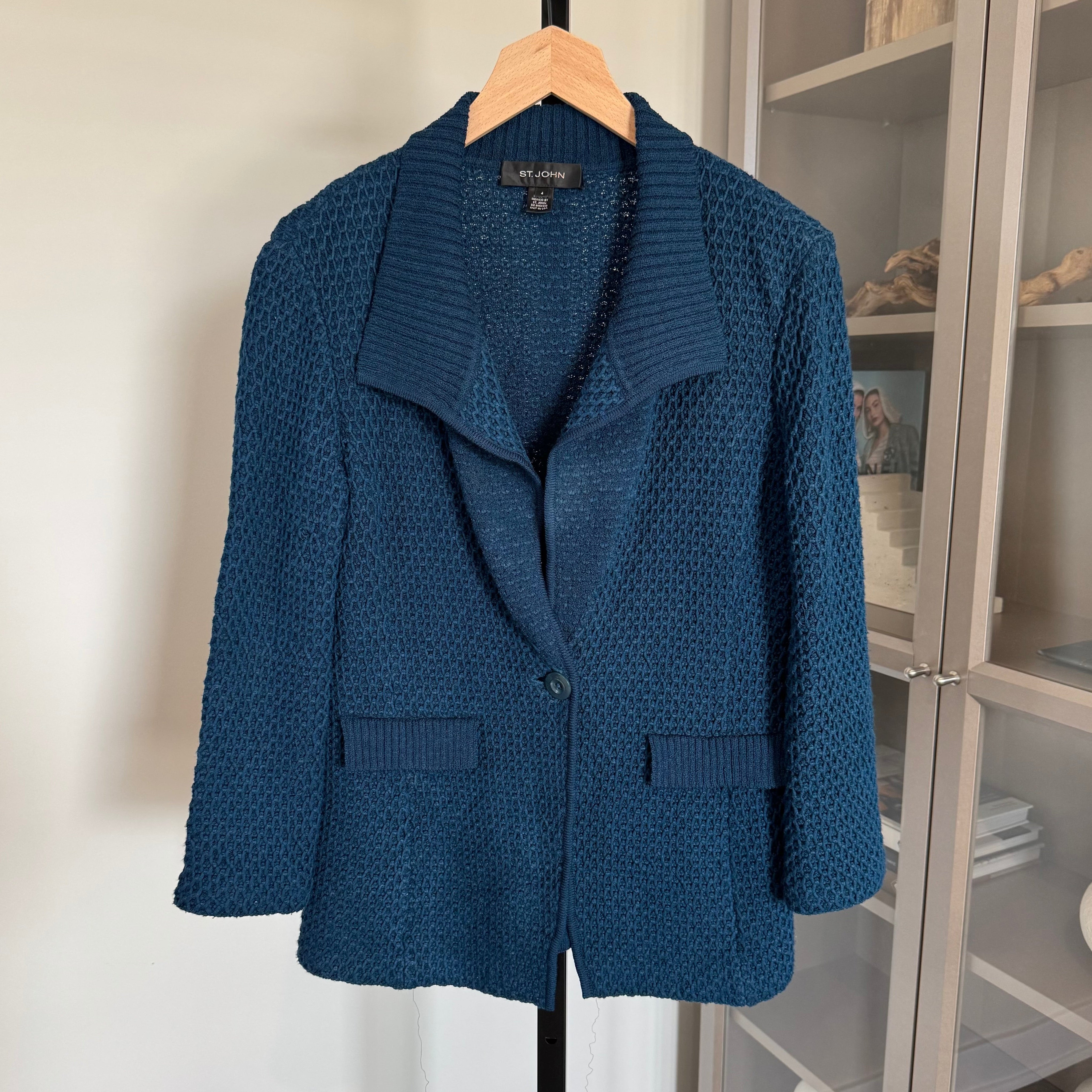 St. John Waffle Textured Knit Wool Blend Teal Sweater Blazer