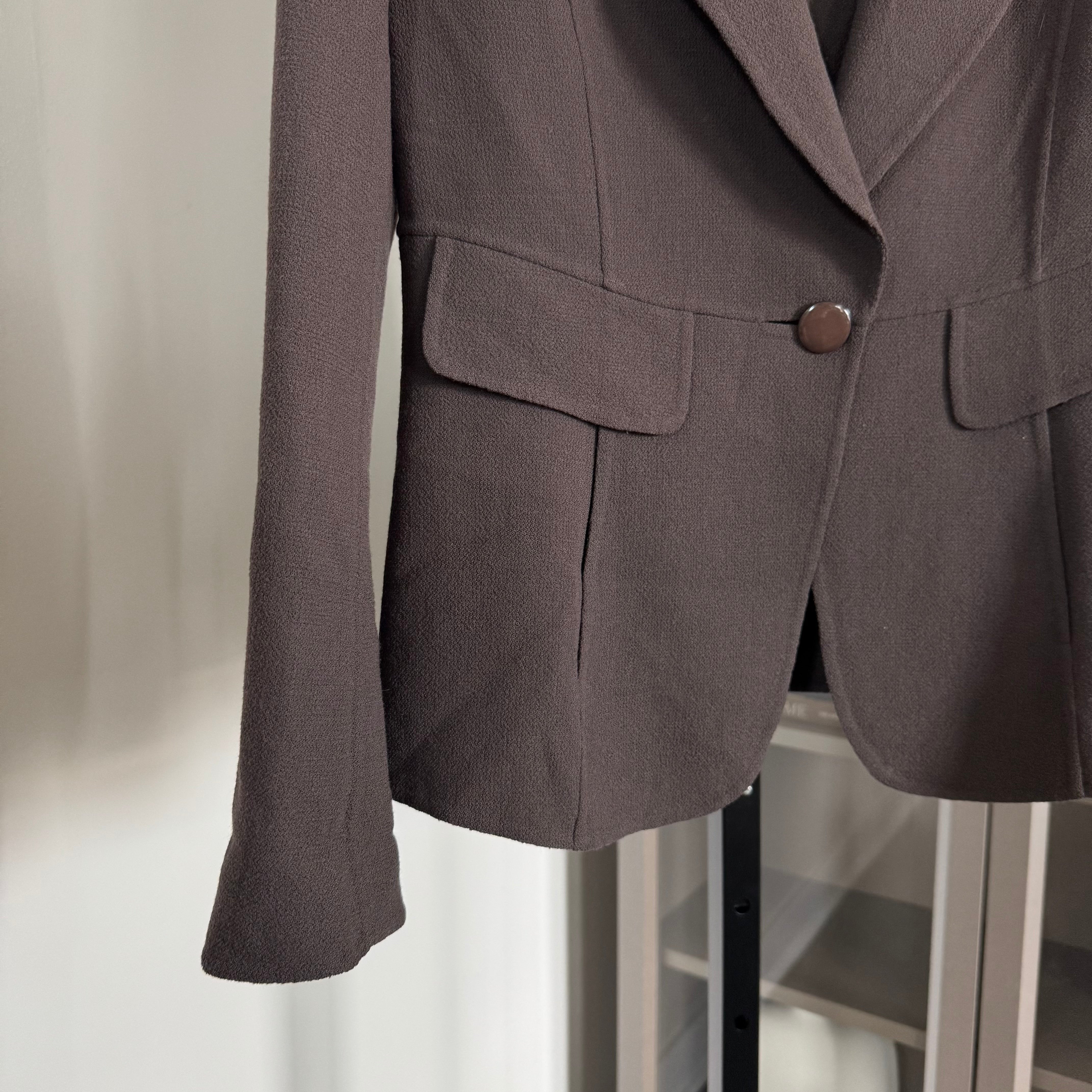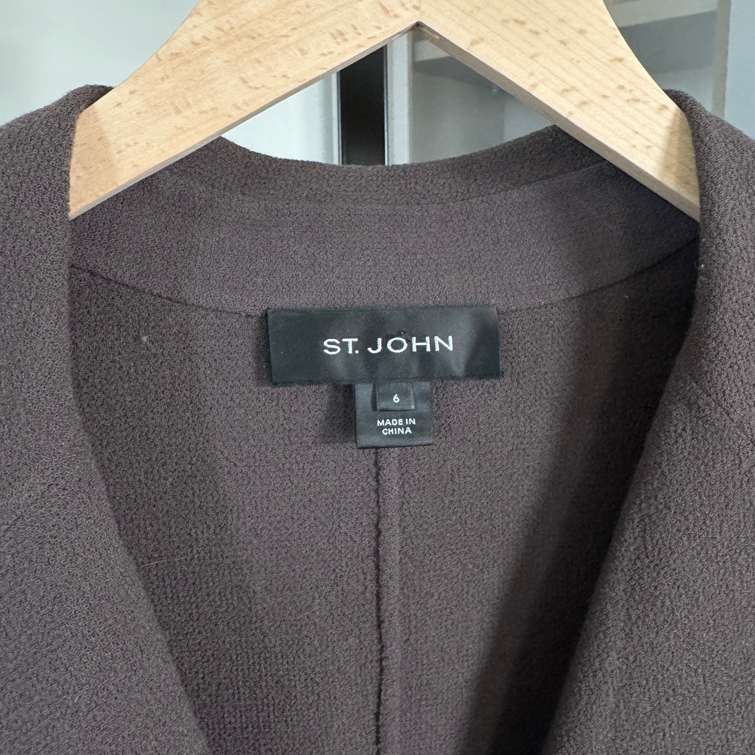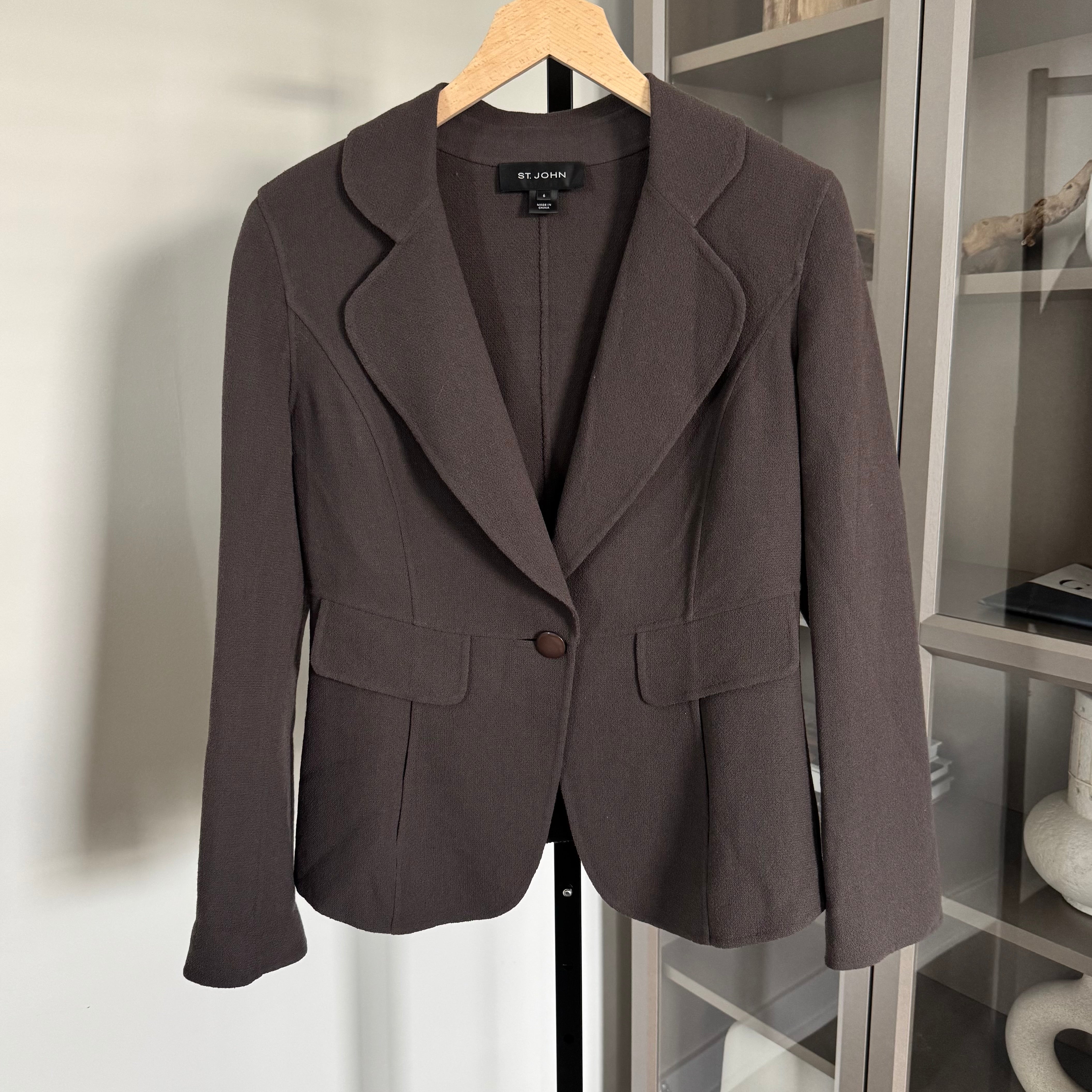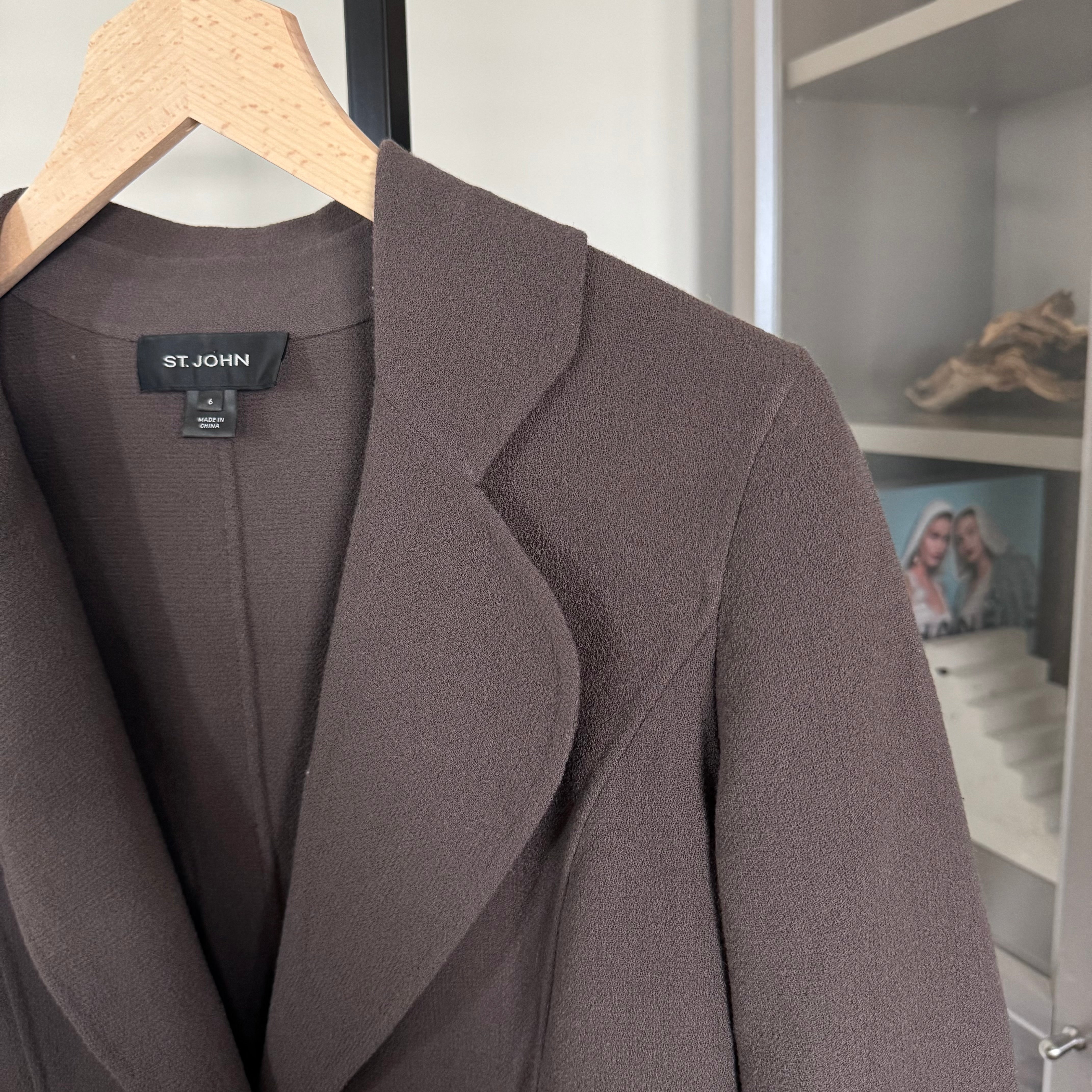 St. John Brown Textured Wool Single Breasted Suit Jacket Blazer